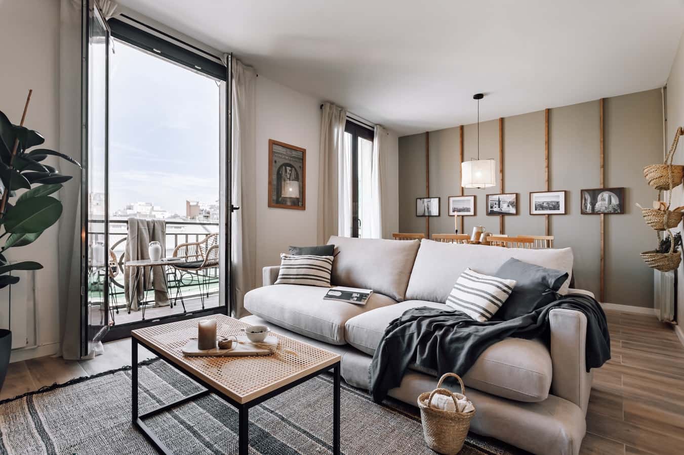Feel transported to a mountain paradise in this 3 bedroom, 2 bathroom unique property. Resting in the heart of Esquerra de Eixample, Serón encapsulates Barcelona. Stroll down the many promenades speckling the neighborhood or try some of the local flavors. After a day of exploring, come home to Serón to experience unique design. As well as 3 bedrooms, all of which are fully furnished, Serón also boasts 2 bathrooms, which have been elegantly decorated. Two bedrooms feature queen size beds. The larger of the two also has a dedicated workstation, ensuite bathroom, and access to a French balcony. The third bedroom has a single bed and plenty of storage space. The detached bathroom is chic and modern in design. For all remote working needs, Serón offers an office space with a second dedicated workstation. Light streams into the living room through the balcony doors. Guests are welcome to relax inside and enjoy the full entertainment system or sit on the balcony and take in the Barcelona sun. The rustic wooden table and the gray hues add to the mountain theme in the living room. The kitchen has been stylishly decorated and boasts ample space to prepare food in. Fully furnished, this home comes with everything you need, including bedding and linens. *We welcome pets, fees are subject to apply. Guests will be informed of any additional charges in the final contract. *We cannot be held liable for any noises (construction, or street noise) done outside the apartment. We also cannot be liable for any rooms without air conditioning (all the rooms with air conditioner will be explicitly explained in our description). We will not accept any reservation cancellations or refund requests related to these two issues. *Our in-house design team expertly selects all apartment furniture and decor to ensure the highest level of quality and comfort. As part of consistent home upkeep, design improvements, and photo staging, there may be minor differences in furnishings seen in the photos and what you find in the apartment. Inquire with a sales agent for any questions or doubts. *This accommodation may only be used for stays longer than 31 nights for personal purposes such as holiday, recreational, or leisure. The information provided may be submitted to the relevant registry and/or administrative authority in accordance with Catalan regulations.