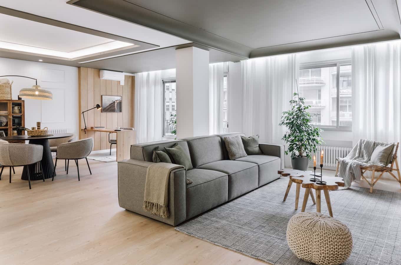 Welcome to Aran, an exquisite 3-bedroom mountain themed apartment located in the heart of L'Antiga Esquerra de l'Eixample, Barcelona. This spacious and stunning apartment offers 150 square meters of living space, perfect for guests looking for a comfortable and stylish stay in one of the most vibrant areas of Barcelona. The apartment boasts 2 double bedrooms with comfortable queen size beds, and 1 single bedroom. The master bedroom features an ensuite bathroom with a walk-in shower and an office space with a dedicated workstation. The other bedrooms have ample storage space and cozy mountain design touches. The second bathroom has a relaxing bathtub, and the third half bathroom ensures that guests will never have to wait for their turn. The large living room is the perfect place to relax and unwind after a long day of exploring the city. It features a comfortable sofa, a full entertainment system, and a dining table for family meals or entertaining guests. The tranquil mountain design bring an air of peace to the living space. Additionally, there's a dedicated workstation for those who need to get some work done while enjoying their stay. The fully furnished kitchen is equipped with all the modern amenities you need to prepare delicious meals during your stay. Air conditioning in the living room ensures a comfortable stay for guests even during the hottest months of the year. There's also a doorman on duty to ensure your safety and security during your stay. Fully furnished, this apartment comes with everything you need, including bedding and linens. *We welcome pets, fees are subject to apply. Guests will be informed of any additional charges in the final contract. *We cannot be held liable for any noises (construction, or street noise) done outside the apartment. We also cannot be liable for any rooms without air conditioning (all the rooms with air conditioner will be explicitly explained in our description). We will not accept any reservation cancellations or refund requests related to these two issues. *Our in-house design team expertly selects all apartment furniture and decor to ensure the highest level of quality and comfort. As part of consistent home upkeep, design improvements, and photo staging, there may be minor differences in furnishings seen in the photos and what you find in the apartment. Inquire with a sales agent for any questions or doubts. *This accommodation may only be used for stays longer than 31 nights for personal purposes such as holiday, recreational, or leisure. The information provided may be submitted to the relevant registry and/or administrative authority in accordance with Catalan regulations.