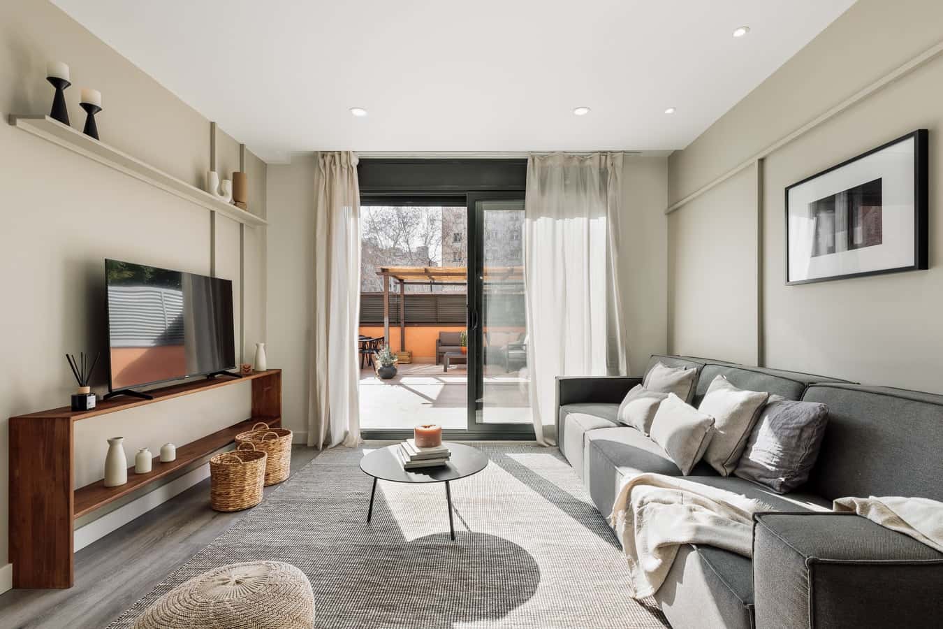 Spectacular apartment in Carrer Morales, with 3 bedrooms, a private terrace, 1 office and a shared swimming pool. The kitchen is equipped with state-of-the-art appliances and kitchenware. The beds are equipped with soft bedding, ideal for a good night's rest. The apartment has 3 bathrooms equipped with a full shower and towels. The apartment has a private terrace of 51 m2. In addition, the apartment is equipped with high-speed WiFi and SmartTV. The apartment has a washing machine, dishwasher and air conditioning for your maximum comfort. *This apartment comes equipped with a ducted air system for absolute comfort. *Please note that the building amenities such as the pool and gym may have specific hours of operation and might not be available year-round. *We welcome pets, fees are subject to apply. Guests will be informed of any additional charges in the final contract. *We cannot be held liable for any noises (construction, or street noise) done outside the apartment. We also cannot be liable for any rooms without air conditioning (all the rooms with air conditioner will be explicitly explained in our description). We will not accept any reservation cancellations or refund requests related to these two issues. *Our in-house design team expertly selects all apartment furniture and decor to ensure the highest level of quality and comfort. As part of consistent home upkeep, design improvements, and photo staging, there may be minor differences in furnishings seen in the photos and what you find in the apartment. Inquire with a sales agent for any questions or doubts. *This accommodation may only be used for stays longer than 31 nights for personal purposes such as holiday, recreational, or leisure. The information provided may be submitted to the relevant registry and/or administrative authority in accordance with Catalan regulations.