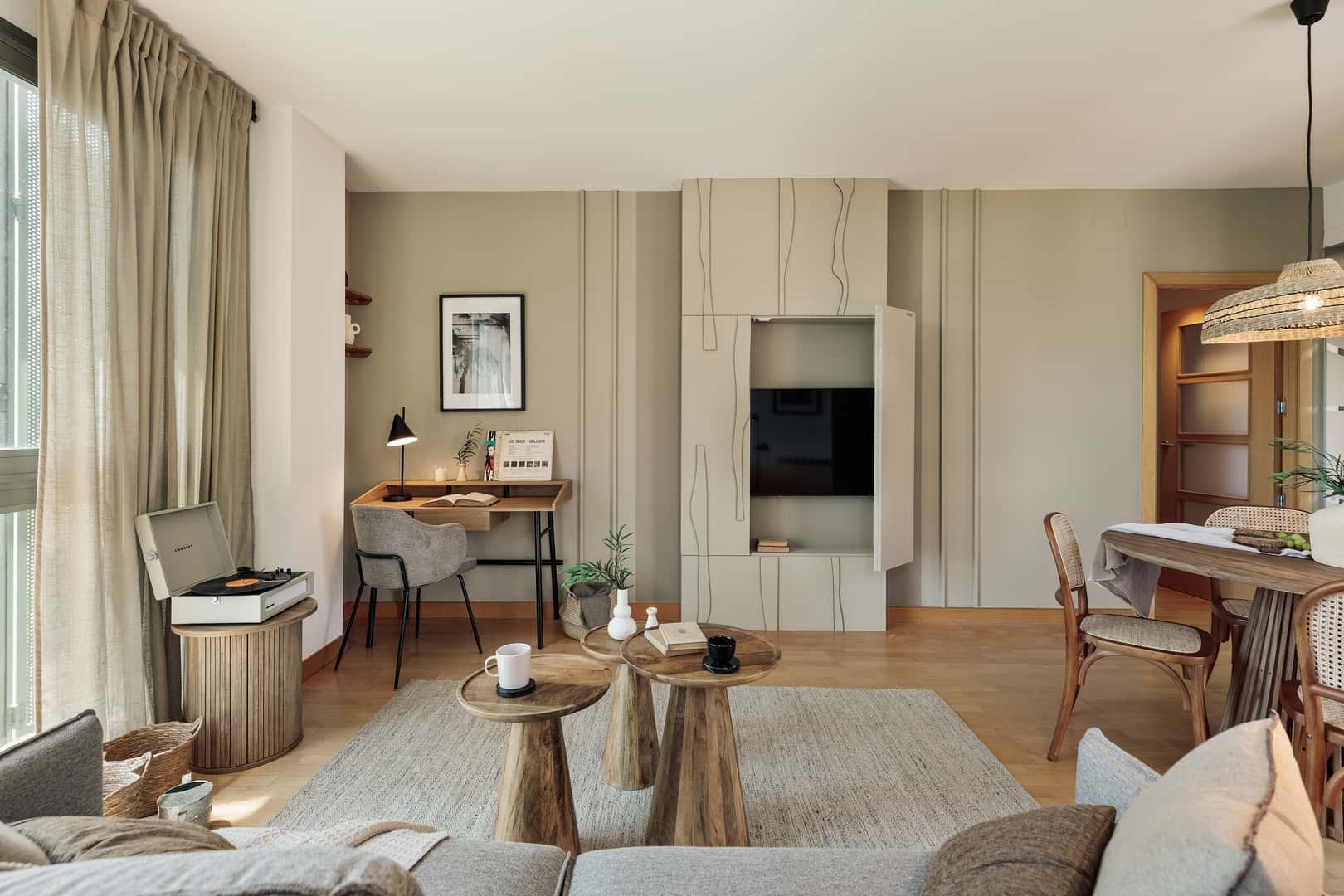 Spectacular apartment in Diagonal street, with 2 bedrooms and 2 bathrooms. The kitchen is equipped with appliances and kitchenware. The beds are equipped with soft bedding, ideal for a good night's rest. The apartment has 2 bathrooms equipped with a full shower and towels. In addition, the apartment is equipped with high-speed WiFi and SmartTV. The apartment has a washing machine, dishwasher and air conditioning for your maximum comfort. *This apartment comes equipped with a ducted air system in all rooms for absolute comfort. *We welcome pets, fees are subject to apply. Guests will be informed of any additional charges in the final contract. *We cannot be held liable for any noises (construction, or street noise) done outside the apartment. We also cannot be liable for any rooms without air conditioning (all the rooms with air conditioner will be explicitly explained in our description). We will not accept any reservation cancellations or refund requests related to these two issues. *Our in-house design team expertly selects all apartment furniture and decor to ensure the highest level of quality and comfort. As part of consistent home upkeep, design improvements, and photo staging, there may be minor differences in furnishings seen in the photos and what you find in the apartment. Inquire with a sales agent for any questions or doubts. *This accommodation may only be used for stays longer than 31 nights for personal purposes such as holiday, recreational, or leisure. The information provided may be submitted to the relevant registry and/or administrative authority in accordance with Catalan regulations. Poblenou, nestled in the Sant Martí district of Barcelona, is a vibrant, eclectic neighborhood known for its blend of modernist and contemporary architecture. The area combines residential charm with a growing commercial presence, offering a lively yet relaxed atmosphere. Poblenou is home to notable landmarks such as the expansive Parc del Poblenou and the striking Design Museum of Barcelona. The bustling Rambla del Poblenou provides a lively pedestrian experience, while Can Recasens, a traditional Catalan restaurant, serves up authentic local flavors. For public transportation, Poblenou is well-served by the L4 metro line and the nearby bus services. Visitors can enjoy a coffee break at Café del Mar, a popular spot in the heart of the neighborhood. Whether you’re exploring or looking for llacuna rent flats Poblenou, this area has a lot to offer.