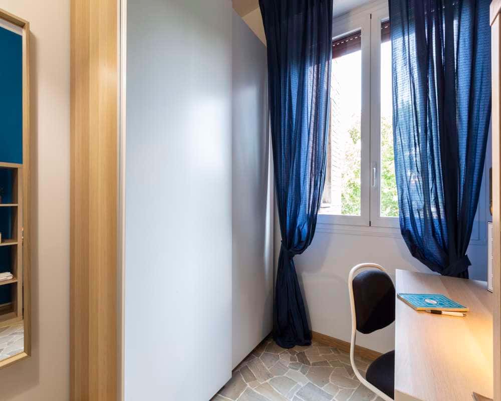 Inquilini all'interno della struttura / Tenants inside the building: 1) Female, Worker, 34 3) Male, Worker, 25 4) Male, Worker, 31 5) Male, Worker, 31 EN Single room in a shared apartment, composed by 6 bedrooms and 2 bathrooms. Of about 12 sqm with a one and a half bed and a work station. With wifi, dishwasher, washing machine. Energy class: G, IPE 187.36 Kwh/Sqm year. IT Stanza singola in un appartamento condiviso, composto da 6 camere e 2 bagni. Stanza di circa 12 mq con un letto a una piazza e mezza e una scrivania. Con wifi, lavastoviglie, lavatrice. Classe energetica: G, IPE 187.36 Kwh/mq anno. ES Habitación individual en un piso compartido, compuesto por 6 habitaciones y 2 baños. De unos 12 m2 con una cama y media y un puesto de trabajo. Con wi-fi, lavavajillas, lavadora. Clase energética: G, IPE 187.36 Kwh/m2 año. FR Chambre individuelle dans un appartement partagé, composé de 6 chambres et 2 salles de bain. D'une superficie d'environ 12 avec un lit et demi et un poste de travail.. Avec wifi, lave-vaisselle, machine à laver. Classe d'énergie : G, IPE 187.36 Kwh/Sqm année. [ITA]: Non sarà possibile effettuare il check-in di Sabato, Domenica e festivi Sarà necessario un preavviso di 48 ore dalla ricezione del contratto per prenotare il check-in [ENG]: It will not be possible to check in on Saturdays, Sundays and holidays A 48-hour notice from receipt of contract will be required to book check-in [ITA]: - NON E' POSSIBILE EFFETTUARE VISITE. - La biancheria non è inclusa nella camera. - Inquilini: la casa é composta da studenti o giovani lavoratori 20-28 anni. Si tende a mantenere un'occupazione divisa equamente tra inquilini di genere maschile e femminile. - Accetta: Qualsiasi genere - La permanenza minima contrattuale corrisponderà al periodo di prenotazione su Roomless. Qualora si desiderasse uscire prima del check-out selezionato in fase di prenotazione, si potrà esercitare l'opzione di uscita anticipata versando 1,5 mensilità. Nel caso in cui si volesse fare subentrare un inquilino (sia che lo trovi il proprietario sia che lo trovi l'inquilino attuale) si potrà uscire dall'appartamento pagando una spesa di servizio pari a 200€.In questo caso il contratto si chiuderà il giorno precedente all'ingresso del sostituto. Sarà comunque dovuta anche la spesa per la chiusura del contratto pari a 225€.. In ogni caso, 3 mesi rispetto alla data di check-out, va comunicata la disdetta regolare per interrompere il contratto alla data stabilita; se non avverrà tale comunicazione, il contratto rimarrà attivo. - L'appuntamento per l'ingresso in casa dovrà essere prenotato con almeno 3 giorni lavorativi di preavviso rispetto la data d'ingresso di tuo interesse. [ENG]: - VIEWING IS NOT POSSIBLE. - Bed linen is not included in the room. - Tenants: The house is composed of students or young workers 20-28 years old. There is a tendency to maintain an equal split between male and female tenants. - Accepted: Any gender - The minimum contractual stay will correspond to the booking period on Roomless. If you wish to leave before the check-out date selected at the time of booking, you may exercise the option of early departure by paying 1.5 month's rent. In the event that you wish to have a tenant take over (whether the owner or the current tenant finds him/her), you may leave the flat by paying a service charge of €200. In this case the contract will end the day before the replacement tenant moves in. A closing charge of €225 will also be due.. In any case, 3 months before the check-out date, the regular cancellation must be communicated in order to terminate the contract on the established date; if no such communication is made, the contract will remain active. .- Check-in will be guaranteed at least 48 hours after your first contact with the property.