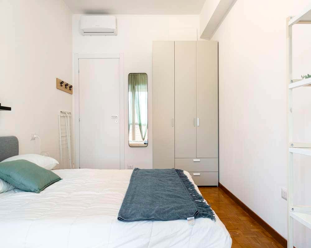 Inquilini all'interno della struttura / Tenants inside the building: 1) Female, Student, 21 3) Male, Student, 26 4) Male, Worker, 35 5) Female, Student, 22 EN Single room in a shared apartment, composed by 5 bedrooms and 2 bathrooms. Of about 17 sqm with a one and a half bed and a work station. With wifi, bike parking, concierge services, dishwasher, washing machine. Energy class: C, IPE 107.03 Kwh/Sqm year. IT Stanza singola in un appartamento condiviso, composto da 5 camere e 2 bagni. Stanza di circa 17 mq con un letto a una piazza e mezza e una scrivania. Con wifi, parcheggio bici, servizio portineria, lavastoviglie, lavatrice. Classe energetica: C, IPE 107.03 Kwh/mq anno. ES Habitación individual en un piso compartido, compuesto por 5 habitaciones y 2 baños. De unos 17 m2 con una cama y media y un puesto de trabajo. Con wi-fi, estacionamiento de bicicletas, servicios de conserjería, lavavajillas, lavadora. Clase energética: C, IPE 107.03 Kwh/m2 año. FR Chambre individuelle dans un appartement partagé, composé de 5 chambres et 2 salles de bain. D'une superficie d'environ 17 avec un lit et demi et un poste de travail.. Avec wifi, parking à vélos, services de conciergerie, lave-vaisselle, machine à laver. Classe d'énergie : C, IPE 107.03 Kwh/Sqm année. [ITA]: Non sarà possibile effettuare il check-in di Sabato, Domenica e festivi Sarà necessario un preavviso di 48 ore dalla ricezione del contratto per prenotare il check-in [ENG]: It will not be possible to check in on Saturdays, Sundays and holidays A 48-hour notice from receipt of contract will be required to book check-in [ITA]: - NON E' POSSIBILE EFFETTUARE VISITE. - La biancheria non è inclusa nella camera. - Inquilini: la casa é composta da studenti o giovani lavoratori 20-28 anni. Si tende a mantenere un'occupazione divisa equamente tra inquilini di genere maschile e femminile. - Accetta: Qualsiasi genere - La permanenza minima contrattuale corrisponderà al periodo di prenotazione su Roomless. Qualora si desiderasse uscire prima del check-out selezionato in fase di prenotazione, si potrà esercitare l'opzione di uscita anticipata versando 1,5 mensilità. Nel caso in cui si volesse fare subentrare un inquilino (sia che lo trovi il proprietario sia che lo trovi l'inquilino attuale) si potrà uscire dall'appartamento pagando una spesa di servizio pari a 200€.In questo caso il contratto si chiuderà il giorno precedente all'ingresso del sostituto. Sarà comunque dovuta anche la spesa per la chiusura del contratto pari a 225€.. In ogni caso, 3 mesi rispetto alla data di check-out, va comunicata la disdetta regolare per interrompere il contratto alla data stabilita; se non avverrà tale comunicazione, il contratto rimarrà attivo. - L'appuntamento per l'ingresso in casa dovrà essere prenotato con almeno 3 giorni lavorativi di preavviso rispetto la data d'ingresso di tuo interesse. [ENG]: - VIEWING IS NOT POSSIBLE. - Bed linen is not included in the room. - Tenants: The house is composed of students or young workers 20-28 years old. There is a tendency to maintain an equal split between male and female tenants. - Accepted: Any gender - The minimum contractual stay will correspond to the booking period on Roomless. If you wish to leave before the check-out date selected at the time of booking, you may exercise the option of early departure by paying 1.5 month's rent. In the event that you wish to have a tenant take over (whether the owner or the current tenant finds him/her), you may leave the flat by paying a service charge of €200. In this case the contract will end the day before the replacement tenant moves in. A closing charge of €225 will also be due.. In any case, 3 months before the check-out date, the regular cancellation must be communicated in order to terminate the contract on the established date; if no such communication is made, the contract will remain active. .- Check-in will be guaranteed at least 48 hours after your first contact with the property.