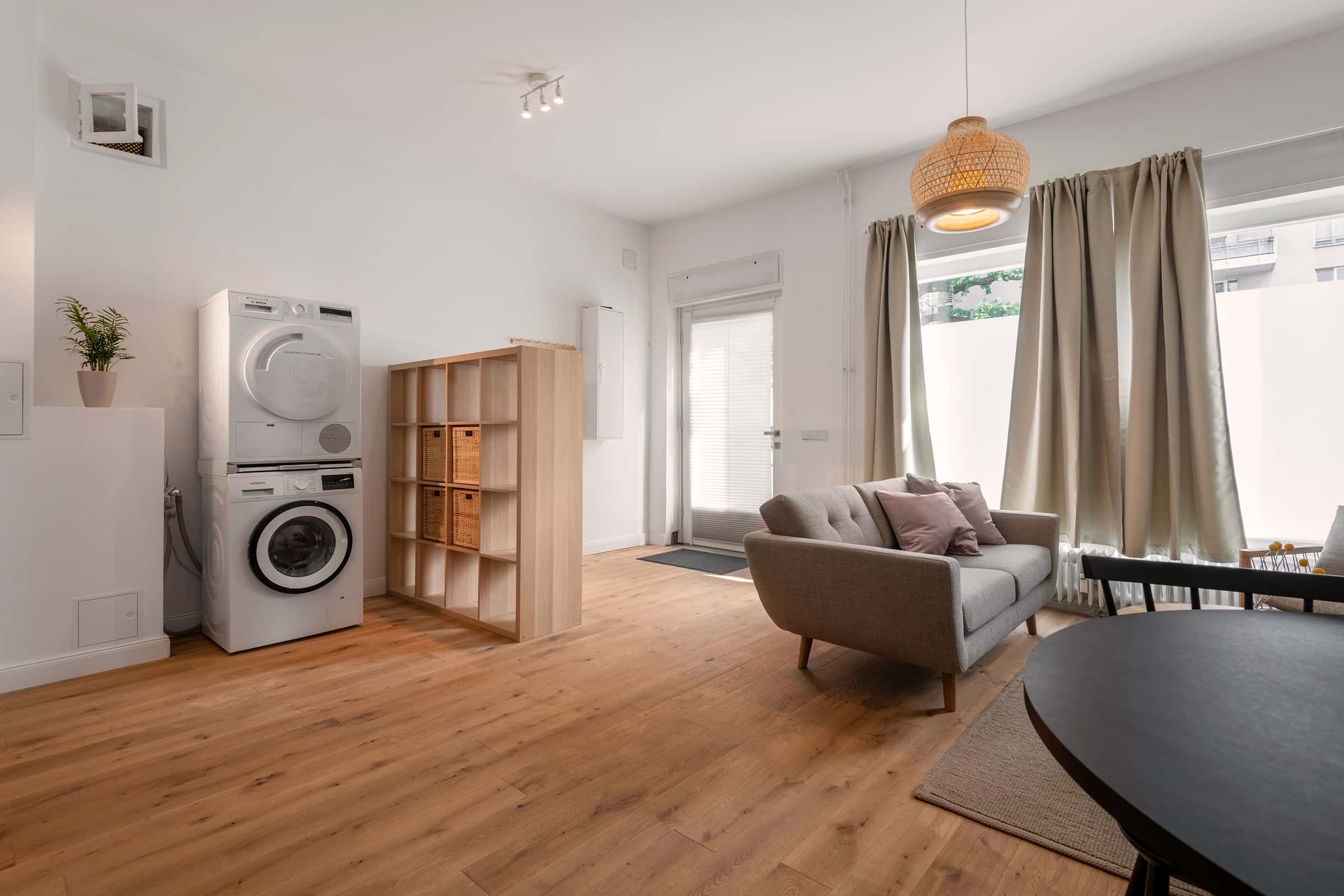 This apartment offers a fully furnished living space with elegant Nordic-inspired design, perfect for those looking for both comfort and style. The all-inclusive rent covers utilities, high-speed WiFi, housing taxes, and regular maintenance, making it a hassle-free option. Additionally, a professional cleaning service for shared areas is included, with the option to upgrade for more frequent cleanings and supplies like laundry detergent and kitchen basics. The apartment provides easy integration into a community, with access to an app that helps you connect with other tenants, join local events, and even arrange short-term room swaps. Located in a prime neighborhood, it offers convenient access to city amenities, alongside practical features like in-house laundry, bike storage, and flexible move-in dates. The digital contract process and address registration ensure a smooth transition to your new home