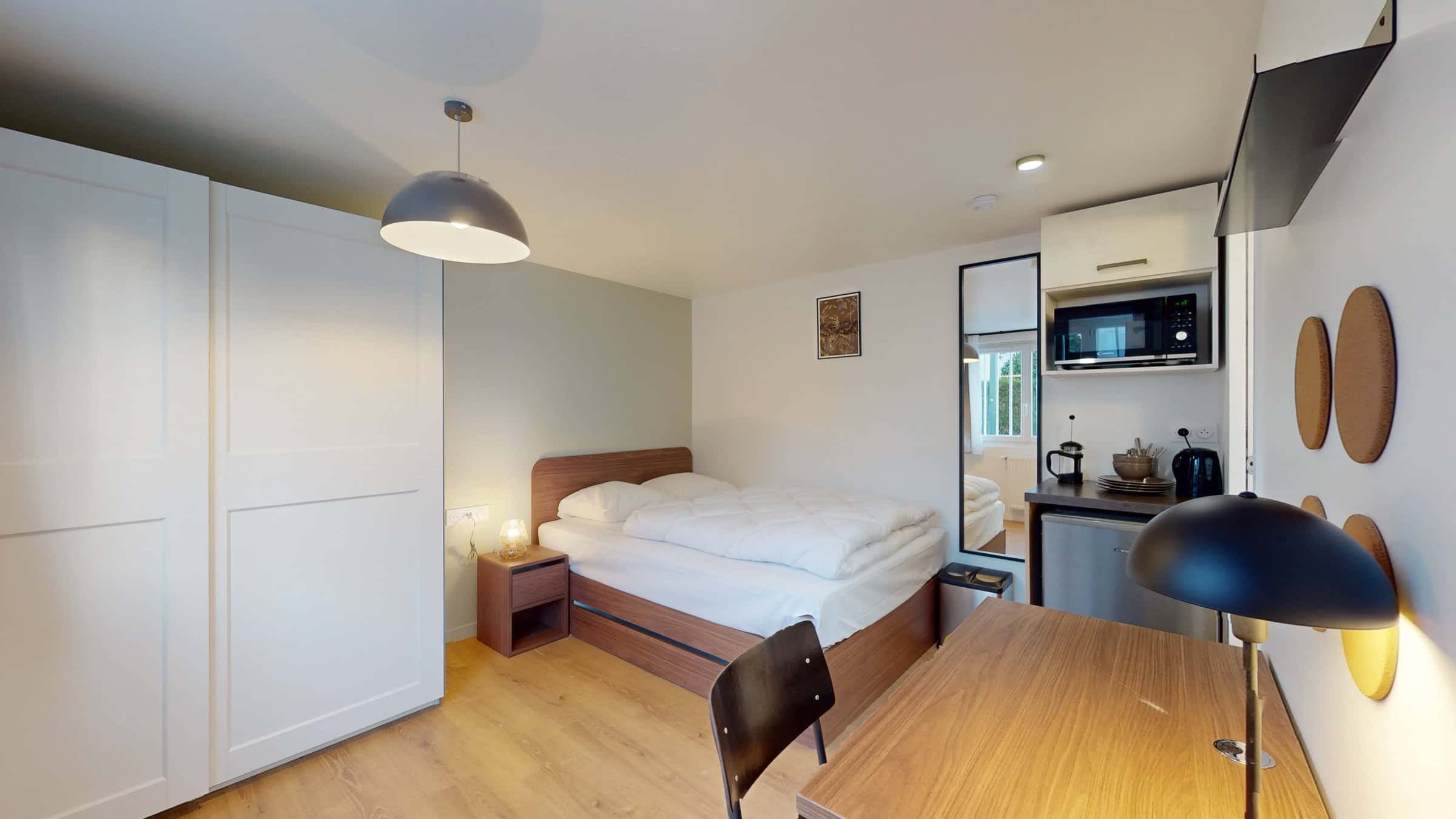 This comfy and minimalist room is perfect for one person. Enjoy quiet times to chill or work. Plus, you will have your own private bathroom : so take as much time as you want in the shower and sing all your favorite songs out loud. A new residence opens its doors near the banks of the Marne in Saint-Maur-des-Fossés. This old house has been completely renovated to accommodate 15 tenants in the main house and 2 private units in the annex house. It offers all the comfort necessary to live in community with its garden, swimming pool, gym, cinema room and two lounges overlooking the garden, one with open kitchen. Ideally located 3 minutes from a bus line that leads directly into the RER station La Varenne - Chennevières in 2 minutes that reaches Paris in 20 minutes. In terms of private space, we have prepared 17 units in total. Each room has its own private bathroom. In addition to its functionality, our Grove residence, will offer you a large garden to enjoy a dinner with roommates, a swimming pool to enjoy moments of relaxation and a bicycle garage to park them after a good walk. The city center is only 4 minutes of pedal strokes. - 🛒 Supermarkets | 10 min 🚶🏽 | 15 min 🚶🏽 - 🍱 Restaurants & bars | 5 min 🚶🏽 - 🏋🏻♀ Gym | 8 min 🚶🏽 - 🎬 Cinema | 10 min 🚶🏽 - 🌳 Promenade des bords de la marne | 1 min🚶🏽 Chales Péguy(Bus 11) | 3 min 🚶🏽 Champigny - Saint-Maur (RER A) | 15 min 🚶🏽 La Varenne - Chennevières (RER A) | 15 min 🚶🏽