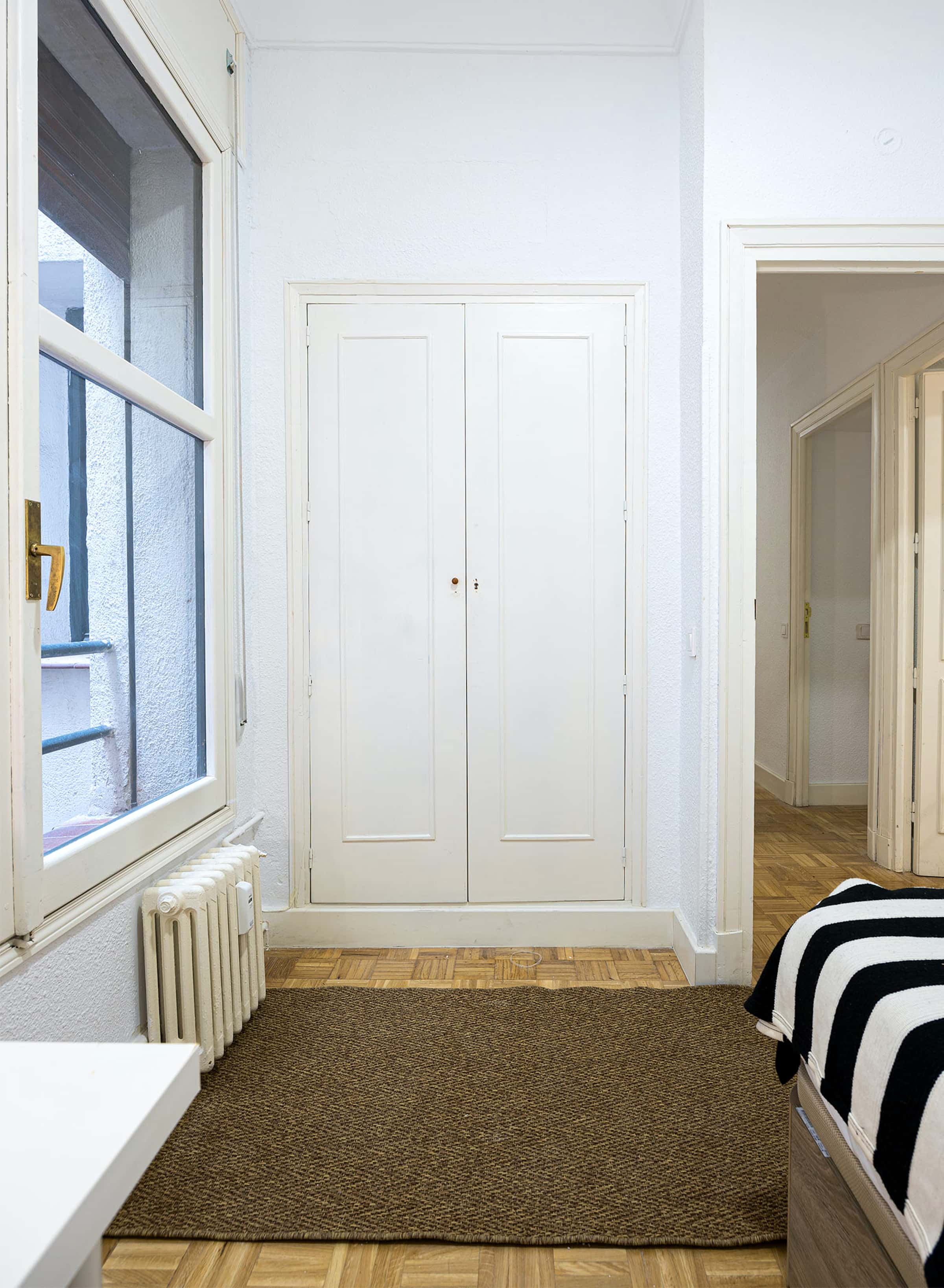 HABITACIÓN INDIVIDUAL La habitación cuenta con cama individual, zona de escritorio y armario. El apartamento cuenta con cocina completamente equipada, 1 baño compartidos entre máximo 5 personas. Nuestro coliving está enfocado a estudiantes y jóvenes profesionales, generalmente entre 18 y 40 años, y ambiente internacional. Buscamos que disfrutes de Madrid y que tu estancia sea cómoda, por lo que nuestros asesores te ayudaran ante cualquier duda. Al hacer tu reserva queremos que disfrutes con nosotros, estés cómodo y cuentes con nuestro equipo y comunidad, por ello no solo te ofrecemos un alquiler, sino que alojándote con nosotros: -Formarás parte de nuestra comunidad, teniendo acceso a eventos y actividades semanales para que descubras Madrid y te sientas como en casa siendo uno más. -Limpieza semanal de las zonas comunes. -Servicio de mantenimiento. -Posibilidad de empadronamiento -Servicio Medico 24/7 por Quirón Salud -Atención al cliente 24/7 a través de nuestro departamento de Atención al coliver -Invitación a eventos y actividades especiales Condiciones: -Un mes de Fianza -Membership Club -Tarifa plana mensual de electricidad, agua, calefacción, internet de alta velocidad -Consultar estancia mínima -De documentación únicamente solicitamos DNI o pasaporte Nuestro coliving está enfocado a estudiantes y jóvenes profesionales que quieren disfrutar de una estancia en Madrid. La ubicación es inmejorable en la zona de Arguelles. Bien comunicado, se encuentran edificios de gran importancia cultural y de ocio, y cerca de las paradas de metro San bernardo y arguelles. Además, cuenta con numerosas paradas de autobuses con excelentes conexiones por toda la ciudad rodeado de restaurantes, cafés y tiendas. Check in: Lunes - Domingo: 15:00 - 24:00 Check-out: Antes de las 11:00