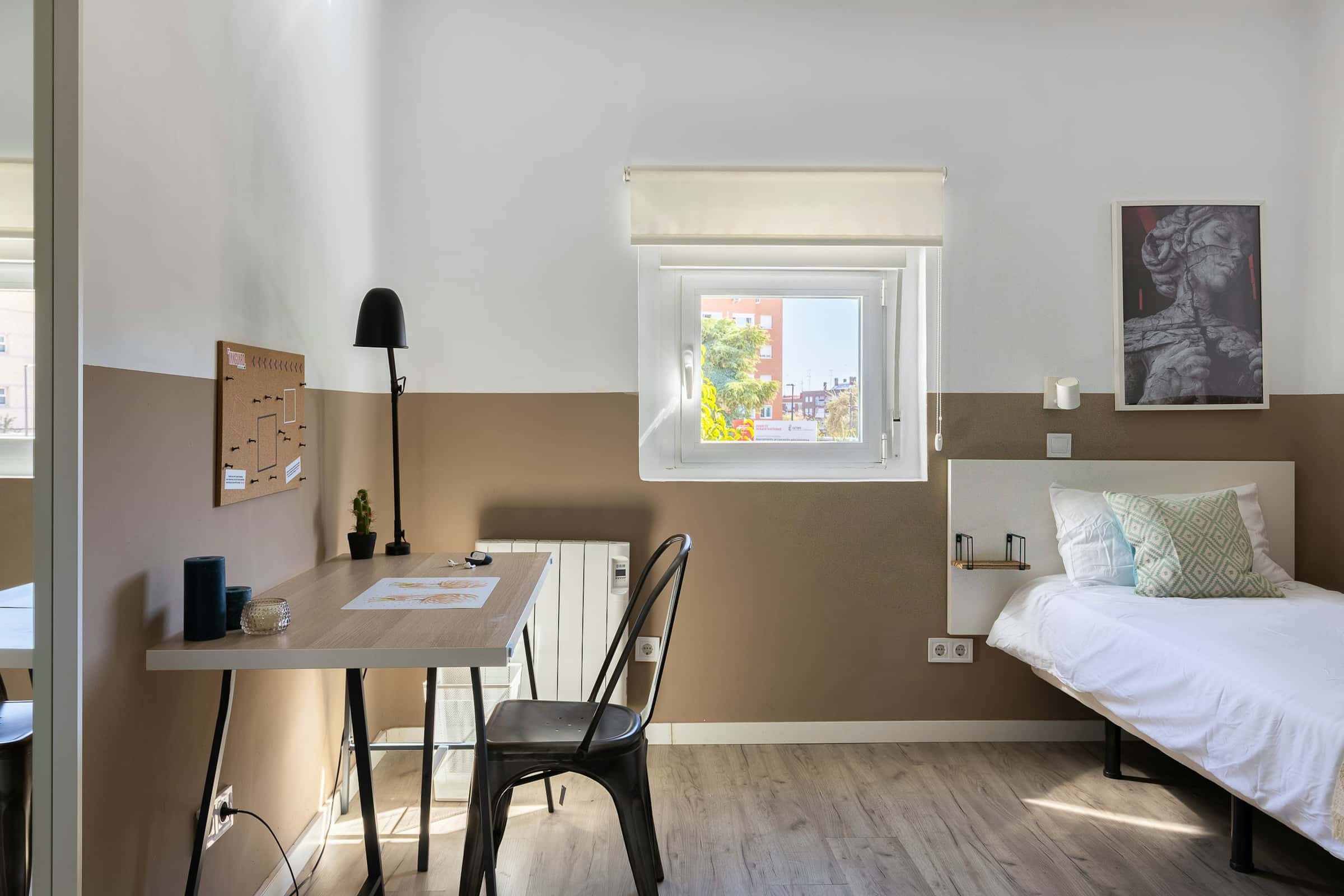 💢💢💢 🔸The usual booking period is from September to December and from January to May. For shorter stays, please contact us. 🔸The monthly rent varies depending on the length of the stay. ✔Booking 1- 2 months: 699€ ✔Booking 3- 8 months: 630€ ✔Booking + 9 months: 596€ This type has everything you need to make your experience 100% authentic. Isn't it all about feeling at home? That's right. Desk, single bed, storage space, modern decoration (the Rosalía poster is up to you) plus enough space to do your uni work. In short, if you are a modern hermit and need a place to study and sleep, this room is the perfect place for you! Monthly cleaning included. 🔸Bills included up to 50€ 💢💢💢 46.1F.H02