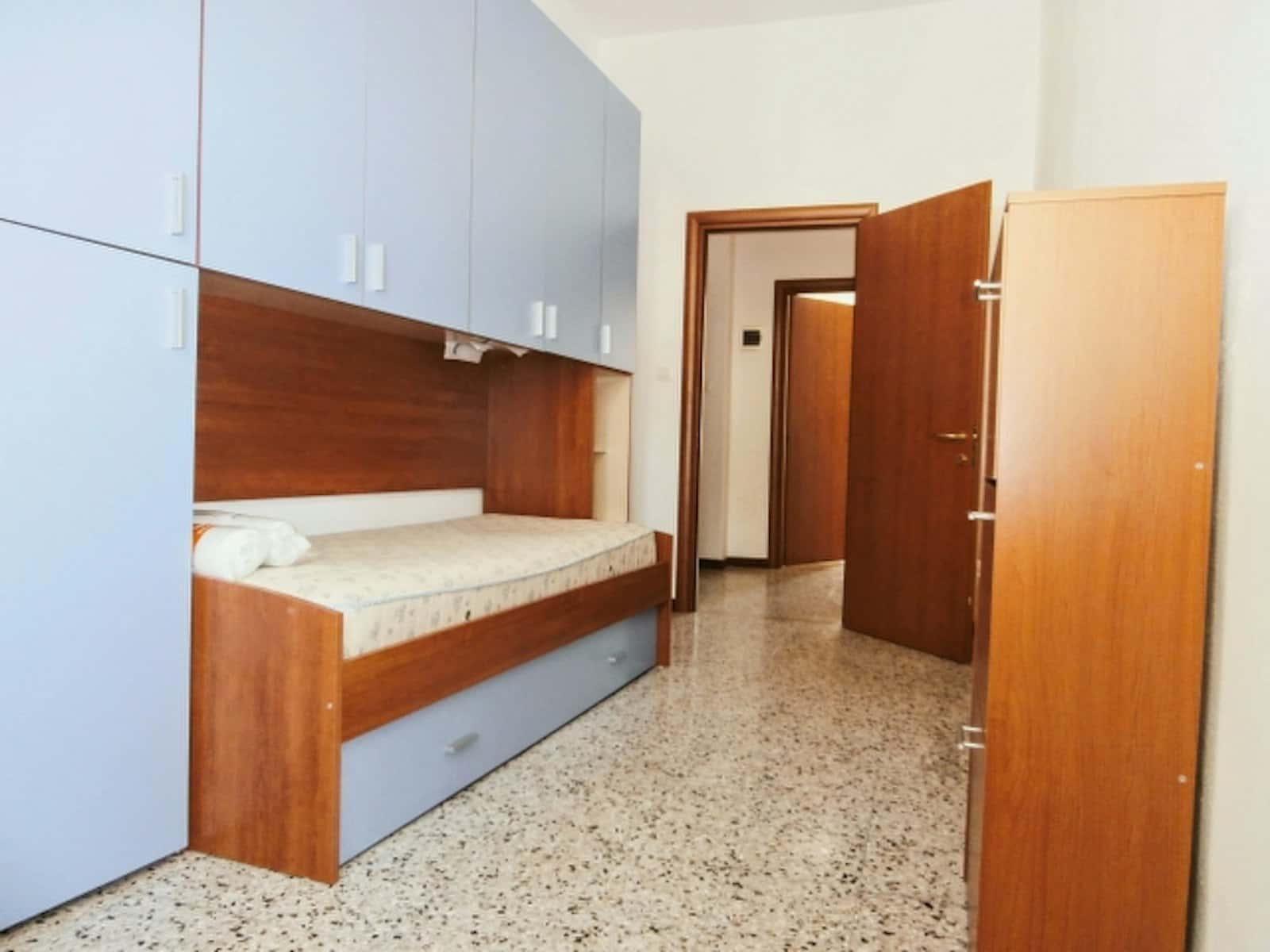 [ITA] Questa camera è la tua scelta ideale se sei alla ricerca di una camera semplice ma cucita sulle tue esigenze. La stanza è arredata con un letto singolo incorniciato da un armadio a ponte che sfrutta ogni centimetro e risulta perfetto per riporre sia il tuo guardaroba che i libri, mantenendo sempre in ordine la stanza. La postazione studio risulta perfettamente illuminata e si compone di una scrivania dalle linee semplici ed una comoda sedia. A due passi dalla vivace zona universitaria di Veronetta - ideale per studenti - questo appartamento offre una bella vista sulle colline verdi e sulle storiche Torricelle L’alloggio è composto da una spaziosa stanza doppia e due accoglienti singole, una cucina abitabile super accessoriata (ideale per le tue cene da chef in erba :)), un bagno moderno con doccia e lavatrice, e un posto bici. [ENG] This room is your ideal choice if you are looking for a simple room but tailored to your needs. The room is furnished with a single bed framed by a bridge wardrobe that uses every inch and is perfect for storing both your wardrobe and books, always keeping the room tidy. The study station is perfectly lit and consists of a desk with simple lines and a comfortable chair. Just a stone's throw from the lively university area of Veronetta , this newly renovated apartment offers breathtaking views of the green hills and the historic Torricelle – perfect for those who love studying with a view! ????The accommodation consists of a spacious double room and two welcoming single rooms, a fully equipped kitchen (ideal for your budding chef dinners ?????????), a modern bathroom with shower and washing machine , and a safe bike space for pedaling without worries ????A place that really knows how to make you feel at home!