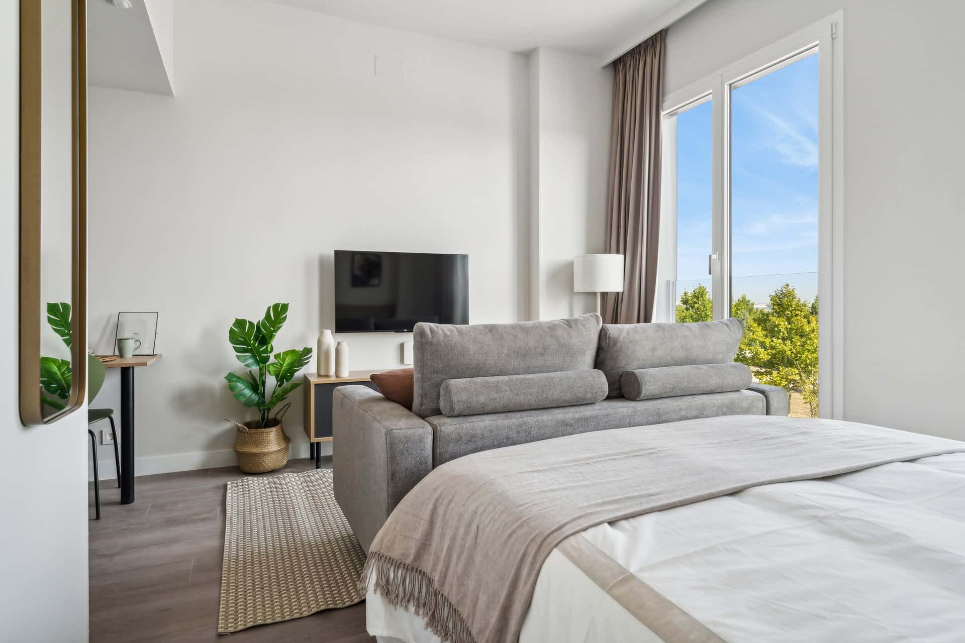 [EN] Enjoy the ultimate privacy and convenience of your very own studio. This fully equipped and furnished space includes a stylish living area to unwind and relax, a kitchenette to cook your favorite meals, and a private bathroom. With stylish studios, 1-bedroom, and 2-bedroom apartments, this modern building is your answer to unlocking flexible stays in Madrid. Located in Ensanche de Vallecas, this property offers an integrated way of living that suits different lifestyles, including fully furnished spaces and top-notch amenities. Residents can enjoy a moment of relaxation in the terrace and swimming pool, challenge their fitness game at the gym, or have a movie night in the cinema room. The building also includes co-working spaces and meeting rooms, the perfect spaces for productivity and focus, as well as common rooms and outdoor garden areas. This building includes modern co-working spaces and meeting rooms where you can concentrate to perfection. But it's not all about work! This building also has common rooms where you can chat and relax, pleasant outdoor garden areas, terraces (some of them private), swimming pool, games room, gym (no more excuses for not going), gastronomic space and - attention, attention - even a cinema! In addition, to make your stay ‘the best’, you will also have at your disposal: -24/7 Concierge: we will be there to help you at any time of the day. -Laundry room -Underground parking with surveillance: by adding this option, your vehicle will also sleep at home. -Pets are allowed. (Small pets are allowed by default, for medium size please check with the team) Important : For PETS, and use of the laundry machine, there is an additional cost.