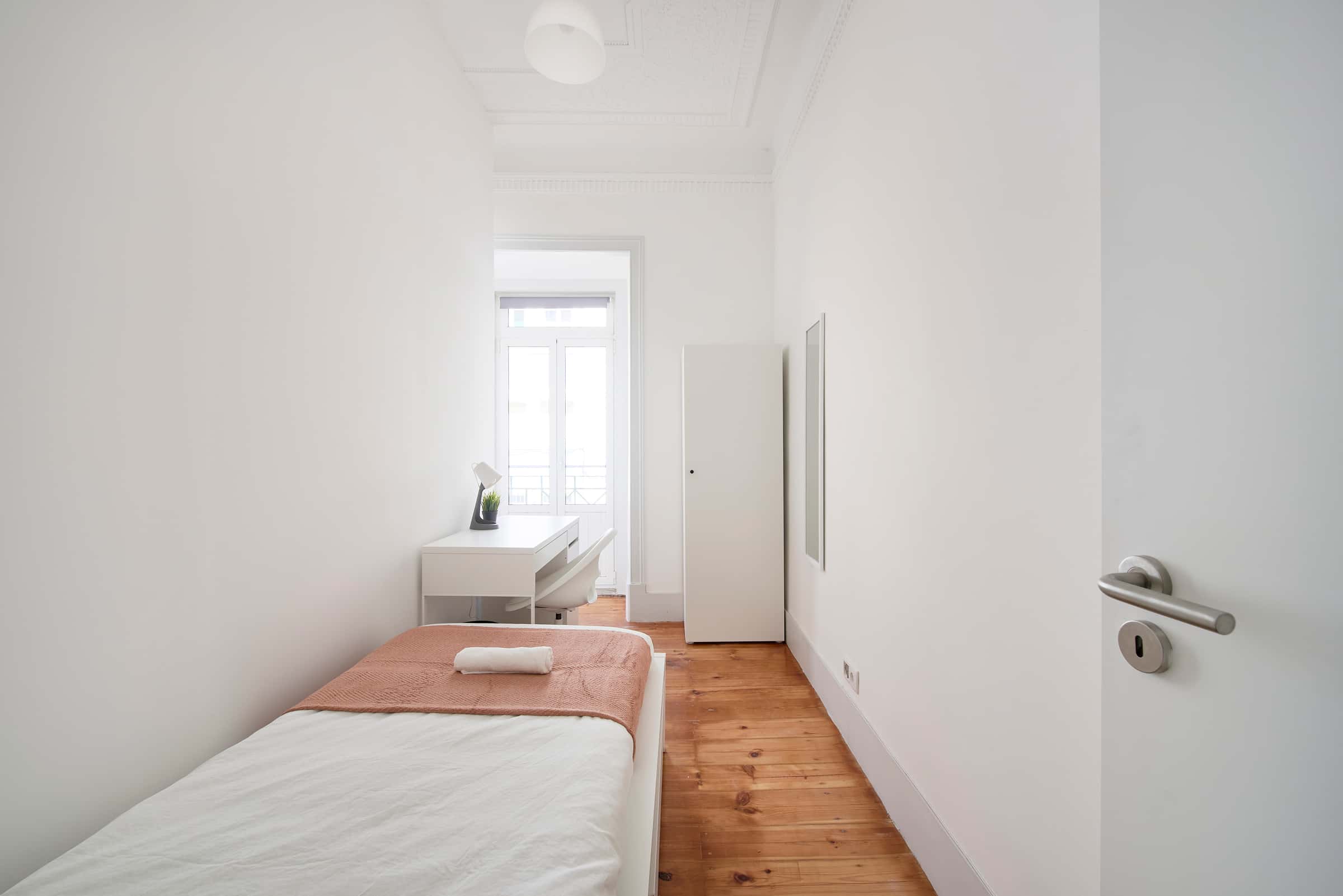 (EN) Bright and inviting room available in a large 8-bedroom apartment located on Rua Chaby Pinheiro, Lisbon. The apartment features 2 shared bathrooms and a fully equipped kitchen, making it ideal for comfortable and convenient shared living. Situated in a peaceful yet well-connected neighborhood, the apartment is close to local amenities, including shops, cafes, and public transportation options, ensuring easy access to the city center and nearby attractions. The area offers a mix of tranquility and urban convenience, perfect for students or young professionals seeking a sociable and practical living space in Lisbon. Extra per tenant: 150€/month (PT) Quarto luminoso e convidativo disponível num grande apartamento com 8 quartos, localizado na Rua Chaby Pinheiro, em Lisboa. O apartamento possui 2 casas de banho partilhadas e uma cozinha totalmente equipada, tornando-o ideal para uma vida partilhada confortável e conveniente. Situado num bairro tranquilo, mas bem conectado, o apartamento está perto de amenidades locais, incluindo lojas, cafés e opções de transporte público, garantindo fácil acesso ao centro da cidade e às atracções próximas. A área oferece uma mistura de tranquilidade e conveniência urbana, perfeita para estudantes ou jovens profissionais que procuram um espaço de vida sociável e prático em Lisboa. Preço por inquilino extra: 150€/mês