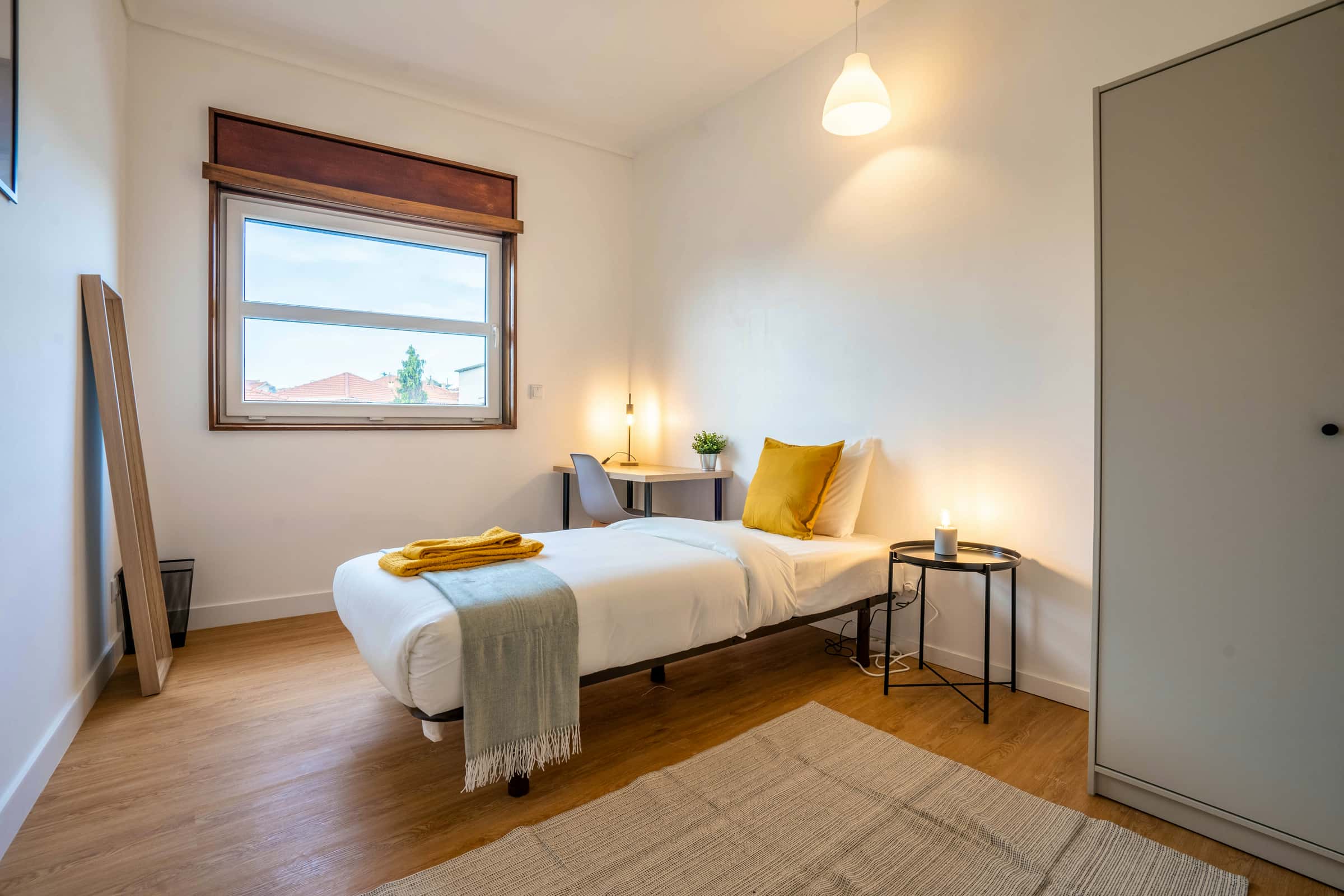 (EN) This bright and comfortable bedroom is part of a spacious 7-bedroom apartment located on R. Francisco Sanches, a well-connected and lively area in Porto. The room is fully furnished with a cozy bed, ample storage, and a desk, making it an ideal space for students or professionals seeking a practical and welcoming living environment. The apartment offers shared access to a fully equipped kitchen, modern bathrooms, and a spacious living area, perfect for relaxing or socializing with housemates. With excellent public transport links, as well as nearby shops, cafes, and restaurants, this location offers both convenience and the dynamic city atmosphere of Porto, making it the perfect spot to experience the city’s vibrant lifestyle. (PT) Este quarto luminoso e confortável faz parte de um espaçoso apartamento de 7 quartos localizado na R. Francisco Sanches, uma área bem conectada e animada no Porto. O quarto está totalmente mobilado com uma cama aconchegante, ampla arrumação e uma secretária, tornando-o um espaço ideal para estudantes ou profissionais que procuram um ambiente de vida prático e acolhedor. O apartamento oferece acesso partilhado a uma cozinha totalmente equipada, casas de banho modernas e uma espaçosa área de estar, perfeita para relaxar ou socializar com colegas de casa. Com excelentes ligações de transportes públicos, bem como lojas, cafés e restaurantes nas proximidades, esta localização oferece tanto conveniência como a atmosfera dinâmica da cidade do Porto, tornando-o o local perfeito para experimentar o estilo de vida vibrante da cidade.