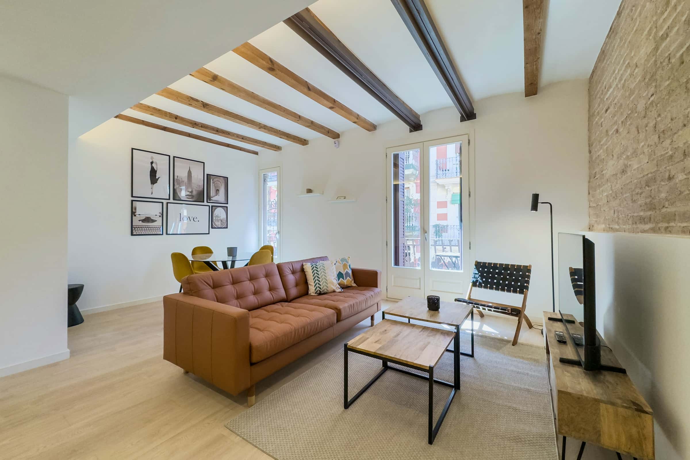 SEASONAL RENTAL - Contracts from 2 months to 1 year Discover this spectacular project on the vibrant Tapioles Street in Barcelona! This magnificent 73-square-meter apartment, located in a beautifully restored historic building in the heart of Poble Sec, offers the best in comfort and style. The building features an elevator, central internet, and security cameras for your safety. Everything is brand new, with top-quality finishes, an open-plan American-style kitchen leading into the living-dining room, two cozy fully furnished bedrooms—one single and one double with an en-suite bathroom—a common bathroom, a balcony facing north and southeast to enjoy sunlight, and a laundry area. Don’t miss the chance to live in this exclusive and comfortable space in one of the most iconic neighborhoods of Barcelona! MAIN FEATURES: Location: Tapioles Street, Poble Sec, Barcelona. Building Type: Restored historic building. Building Amenities: Elevator, central internet, security cameras. Floor: Third floor Condition: Everything is brand new with the finest finishes. DISTRIBUTION: Kitchen: American-style, open to the living-dining room, equipped with high-end appliances and top-quality finishes. Living-Dining Room: Spacious and bright, integrated with the kitchen to create a modern and functional space. Bedrooms: Two well-lit, tastefully furnished bedrooms offering comfort and style. Balcony: Facing north and southeast, providing lovely views and daylight throughout most of the day. Laundry Area: Dedicated space for the washing machine and other cleaning items, offering practicality for everyday use. Bathroom: With a shower screen and high-quality finishes, ensuring comfort and functionality. RENTAL CONDITIONS: Monthly Rent = 1750€/month. Utilities: 200€/month. Internet: Free. Agency Fees: a single payment of one month’s rent + VAT. Final Cleaning: a single payment of 190€ VAT included. Contract preparation fee: a single payment of 190€ VAT included DEPOSIT: -RENTALS FROM 1 TO 5 MONTHS: YOU HAVE TO PAY THE EQUIVALENT OF ONE AND A HALF MONTHS' RENT. -RENTALS FROM 6 TO 11 MONTHS: YOU HAVE TO PAY THE EQUIVALENT OF TWO MONTHS' RENT. After the reservation is confirmed, you will receive a separate email with the next steps to complete the booking process and organize the check in with the agency. Check ins are possible during the week from Monday to Friday from 09:30am until 17:30pm or after office hours for an extra fee of 85€ + 21% VAT.