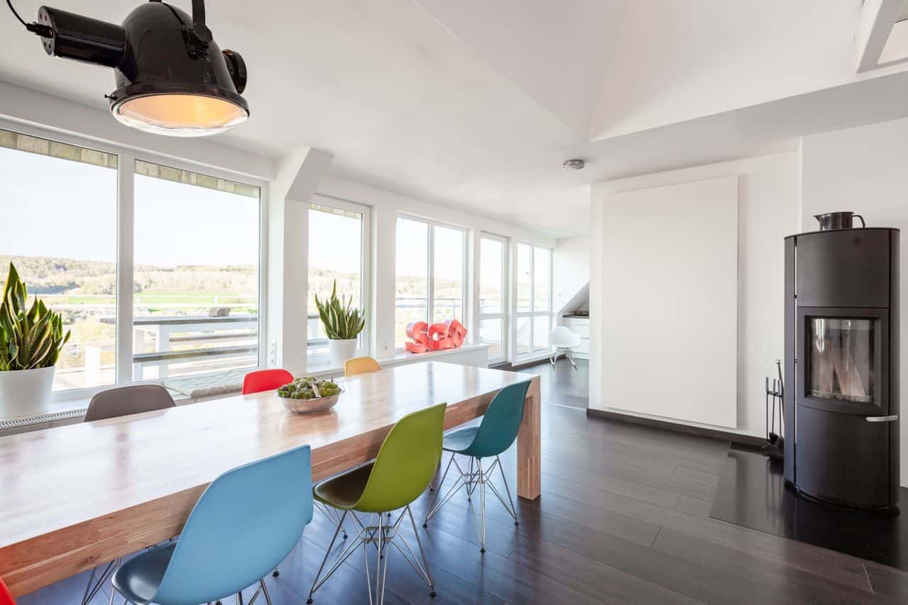 🇩🇪 Kurzbeschreibung (Deutsch) Architektenloft mit Panoramablick 131 m² Dachgeschoss-Loft auf 2 Etagen, davon 24 m² Dachterrasse mit großer Markise. Ausstattung: begehbare Glasbrücke, Designklassiker, moderner Kamin, voll ausgestattete Küche. Atemberaubende Aussicht mit perfekten Sonnenuntergängen. Großer Esstisch für bis zu 10 Personen – ideal auch für Besprechungen. WLAN inklusive. Separater Eingang, Nichtraucher (Rauchen auf der überdachten Terrasse erlaubt). Bad mit Dusche, Waschmaschine & Trockner auf Anfrage. Regelmäßige Reinigung möglich. Zentrale Lage zwischen Köln und Gummersbach – ideal für Ausflüge. Einkaufsmöglichkeiten und Restaurants in 300–500 m, Freizeitangebote (Schwimmbad, Kletterhalle) in kurzer Distanz. Kostenfreie Parkplätze (2–3). Englischsprachige Kommunikation möglich. 🇬🇧 Short Description (English) Architect loft with panoramic views 131 m² top-floor loft on two levels, including a 24 m² roof terrace with large awning. Features: walkable glass bridge, designer furniture, modern fireplace, fully equipped kitchen. Stunning views and beautiful sunsets. Large dining table for up to 10 people – also suitable for meetings. Wi-Fi included. Private entrance, non-smoking (smoking allowed on covered terrace). Bathroom with shower; washer & dryer available on request. Cleaning service available. Perfectly located between Cologne and Gummersbach for easy day trips. Shops and restaurants within 300–500 m; swimming pool and climbing hall nearby. Free on-site parking (2–3 cars). English communication welcome.
