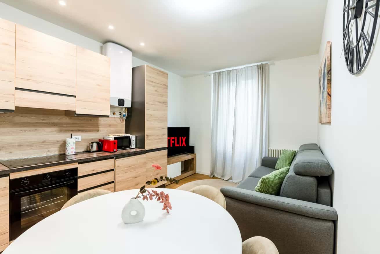 Accogliente bilocale completamente ristrutturato, situato al 3° piano di un affascinante palazzo storico nel centro di Milano. L'ascensore ti permetterà di accedere comodamente all’appartamento senza sforzo. Il soggiorno, comodo e accogliente, è arredato con un divano, poltrona e SmartTV, un angolo perfetto per il relax. La zona pranzo è adiacente alla cucina, completamente attrezzata con elettrodomestici moderni, tra cui piano cottura, forno, frigorifero, microonde e lavastoviglie, per garantire ogni comfort. La camera matrimoniale, offre un ambiente sereno per il riposo e un armadio spazioso di consentirà di sistemare facilmente i tuoi effetti personali. Il bagno, moderno e luminoso, è dotato di doccia, bidet e tutti i comfort necessari. Ogni dettaglio dell'appartamento è stato pensato per un soggiorno elegante e funzionale, con pavimenti in parquet e finiture di alta qualità. L'appartamento è dotato di Wi-Fi gratuito, aria condizionata e riscaldamento, per garantire il massimo del comfort in ogni stagione. A soli 14 minuti a piedi dalla Cattedrale del Duomo e da Via Montenapoleone. La Stazione Centrale è a 2,5 km, facilmente raggiungibile in 15 minuti in auto o con i mezzi pubblici. L'aeroporto di Malpensa dista 1 ora con l'auto o con i mezzi pubblici (Malpensa Express).