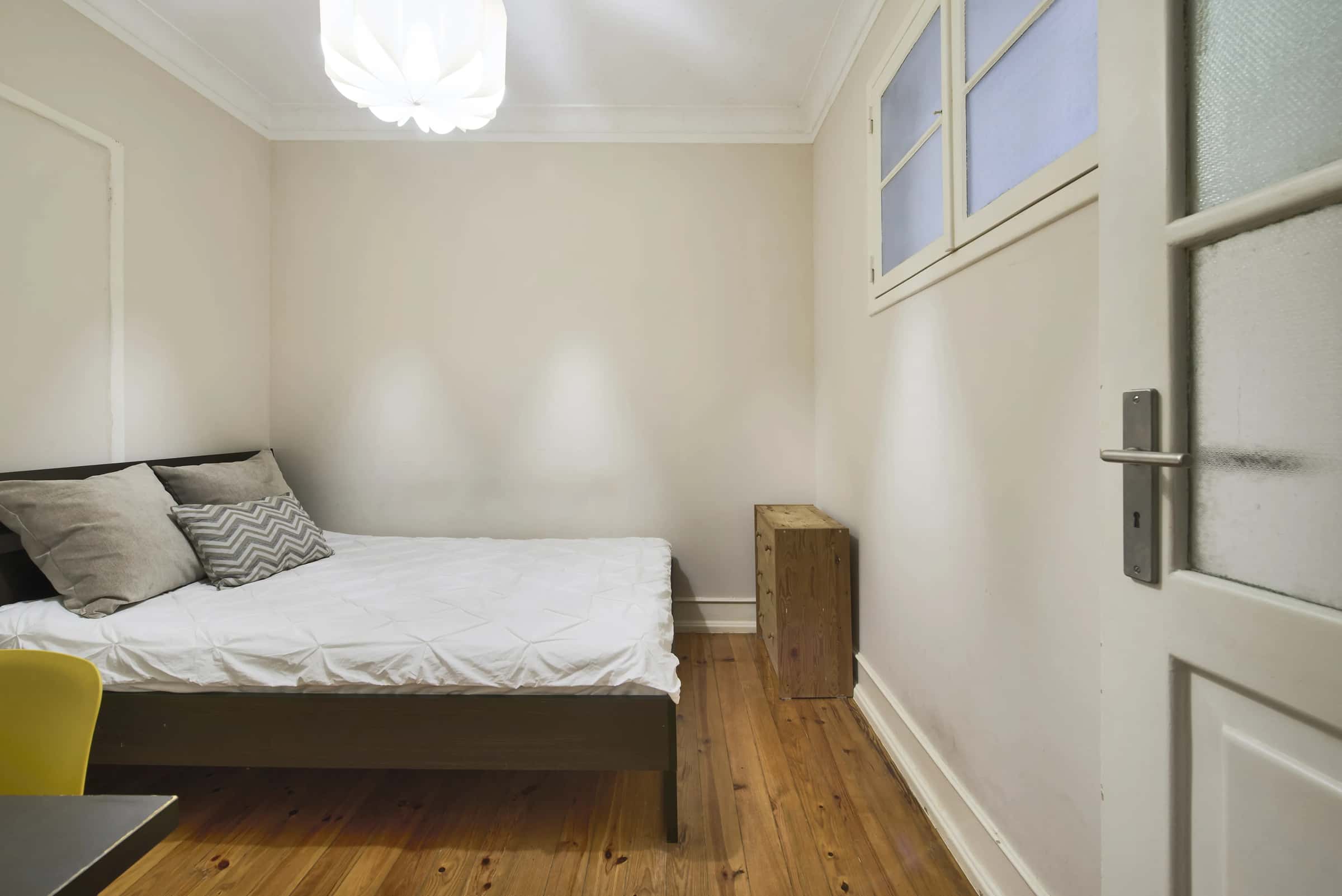 EN Situated on the second floor, this bright and cozy apartment in Alameda is the perfect place to live! Located in one of Lisbon’s most vibrant and well-connected areas, you’ll be surrounded by cafés, restaurants, supermarkets, and all essential services. The neighborhood offers excellent public transport connections, with the Alameda metro station and several bus stops just a few minutes away, giving you easy access to every part of the city.The apartment features a well-equipped kitchen, the shared areas are comfortable and welcoming, creating a pleasant environment for everyone.With 4 bedrooms and 1 bathroom, this apartment combines comfort, functionality, and an exceptional location, making it the ideal choice for students and young professionals looking to live conveniently in the heart of Lisbon. Alameda is one of Lisbon’s most vibrant and well-connected neighbourhoods, popular among students and young professionals. Centered around the beautiful Alameda Dom Afonso Henriques park, the area combines a relaxed atmosphere with urban convenience. You’ll find cafés, restaurants, supermarkets, and local shops on every corner, as well as excellent public transport links — including the Alameda metro station, which connects you quickly to the rest of the city. Metro: The Alameda metro station serves both the Green Line (Linha Verde) and the Red Line (Linha Vermelha) — giving you direct access to major points like the city center (Baixa/Chiado), the airport, and Parque das Nações.Buses: Several Carris bus lines stop around Alameda, including 708, 718, 720, 735, 742, 756, and 767, connecting you easily to areas like Cais do Sodré, Oriente, and Campo Grande.Trams: While Alameda itself doesn’t have a tram stop, you’re just a short walk from Avenida Almirante Reis, where classic Lisbon trams such as the 28E pass through — perfect for exploring the city’s historic neighborhoods.In short, whether you study, work, or just love to explore, Alameda makes it easy to get anywhere in Lisbon quickly. - Alameda Dom Afonso Henriques Park – The heart of the neighborhood, this large green space is perfect for relaxing, studying outdoors, or enjoying a picnic with friends. It features fountains, shady trees, and a lively atmosphere, especially on sunny days.- Instituto Superior Técnico (IST) – One of Portugal’s top universities, IST gives the area a vibrant student energy, with cafés, study spots, and affordable restaurants nearby.- Avenida Almirante Reis – A bustling avenue filled with local bakeries, international eateries, and vintage shops — ideal for grabbing a pastel de nata or exploring Lisbon’s diverse food scene.- Igreja de São João de Deus – A beautiful modernist church located right next to Alameda Park, known for its striking architecture.- Fonte Luminosa & Surroundings – The “Luminous Fountain” at the top of Alameda Park is a local landmark, especially stunning when illuminated at night, and often surrounded by small local markets and events.From peaceful green areas to lively cafés and great connections to Lisbon’s center, Alameda offers the perfect mix of convenience, charm, and everyday comfort. - No smoking.- No pets allowed.- No parties.- Trash must be taken out daily.- Short-term visitors are allowed (2 days). Longer period: €20 per day.- Utilities: included up to €25 per tenant.- Cleaning: offered by the landlord.- Bedding: pillows, duvet, and bed sheets are not provided.- Payment before check-in: first and last month, deposit and admin fee.- Check-ins: from Monday to Saturday from 4pm until 7:30pm. No check-ins on Sundays and bank holidays. Check-in is authorized only 24h after the payment is confirmed in our bank account and the contract is signed. The bedroom is a cozy and comfortable space, designed to offer residents a peaceful and restful environment. The room features a cozy double bed, a desk, a chair, and storage space for your belongings.