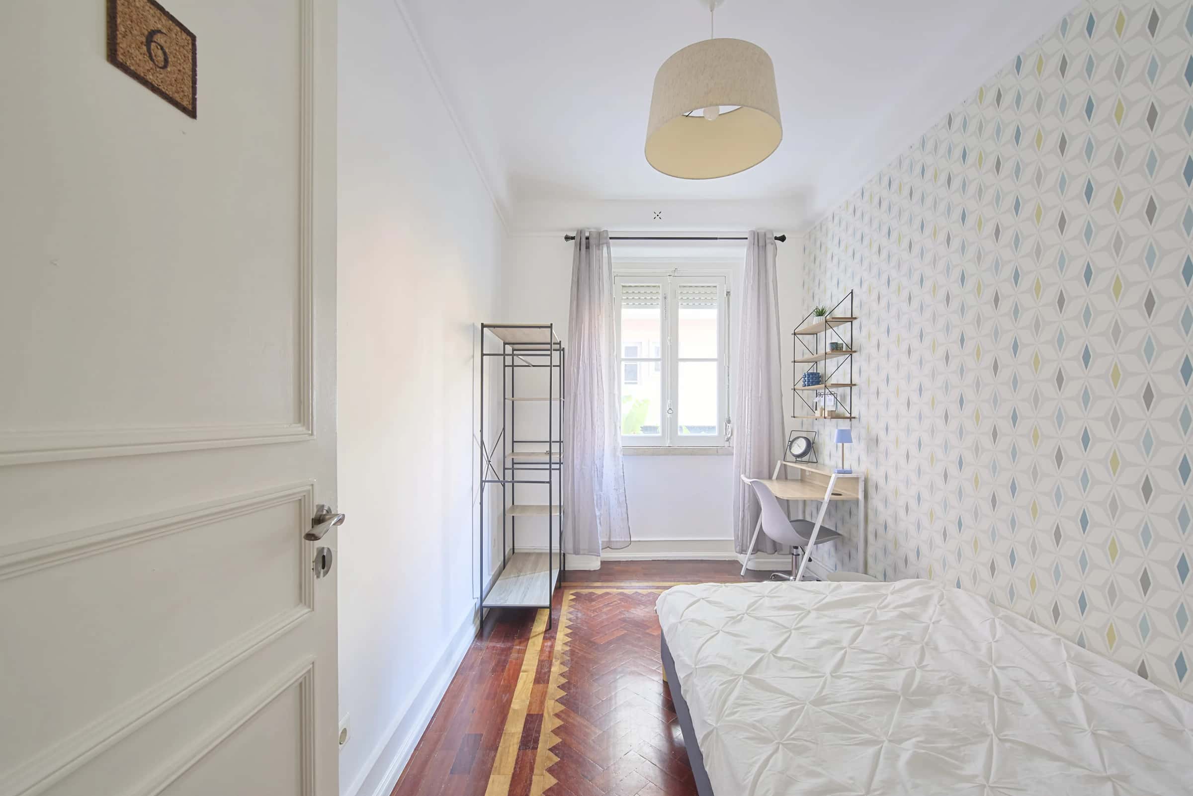 EN Situated on the second floor, this spacious apartment in Alameda is the perfect place to live in Lisbon. Located in one of the city’s most vibrant and well-connected neighborhoods, you’ll be surrounded by cafés, restaurants, supermarkets, and all essential services — most of them just 3 to 5 minutes away on foot. The area offers excellent public transport connections, with the Alameda metro station (Green and Red Lines) and several bus stops nearby, providing quick and easy access to all parts of Lisbon, including the city center and university areas. The apartment features a bright and well-equipped kitchen, along with 3 bathrooms (2 shared and 1 en-suite) that offer comfort and practicality in the shared spaces. With 7 bedrooms, this apartment combines space, functionality, and a prime location — making it the ideal choice for students and young professionals looking to live comfortably in one of Lisbon’s most dynamic neighborhoods. Alameda is one of Lisbon’s most vibrant and student-friendly neighborhoods, offering the perfect mix of convenience, energy, and accessibility. You’ll find cafés, restaurants, supermarkets, and all essential services just 3 to 5 minutes away on foot, making it an ideal area for students who want everything close by. The neighborhood is well connected by public transport, with the Alameda metro station serving both the Green and Red Lines, as well as several bus routes that provide quick access to the city center, universities, and other key areas of Lisbon. Alameda is also home to Instituto Superior Técnico (IST), one of Portugal’s top universities, attracting students from all over the world. With its lively atmosphere, tree-lined avenues, and the beautiful Alameda Dom Afonso Henriques park nearby, this area offers a perfect balance between study, leisure, and Lisbon city life. Metro: The Alameda metro station serves both the Green Line (Linha Verde) and the Red Line (Linha Vermelha), providing direct connections to important areas such as Baixa/Chiado, Saldanha, the airport, and Parque das Nações. Buses: Several Carris bus routes stop around Alameda, including lines that connect you quickly to neighborhoods like Campo Grande, Cais do Sodré, and Oriente. Trams: While Alameda itself doesn’t have a tram stop, Avenida Almirante Reis — just a short walk away — is served by Lisbon’s famous trams, such as the 28E, perfect for exploring the city’s historic quarters. Thanks to its central location and wide range of transport options, Alameda is ideal for students and young professionals who need easy access to the rest of Lisbon - Instituto Superior Técnico (IST) – One of Portugal’s most prestigious universities, located just a few minutes away, making Alameda a favorite among students. - Alameda Dom Afonso Henriques Park – The heart of the neighborhood, this large green park is perfect for studying outdoors, relaxing with friends, or enjoying sunny afternoons. - Fonte Luminosa (Luminous Fountain) – A local landmark at the top of Alameda Park, especially beautiful at night when illuminated. - Avenida Almirante Reis – A lively avenue filled with local cafés, bakeries, and restaurants offering both traditional Portuguese and international cuisine. - Igreja de São João de Deus – A striking modernist church located near Alameda Park, known for its impressive architecture. - With its mix of green spaces, cafés, cultural landmarks, and excellent transport links, Alameda offers a vibrant and convenient environment — ideal for students and young professionals living in Lisbon. -No smoking.- No pets allowed.- No parties.- Trash must be taken out daily.- Short-term visitors are allowed (2 days). Longer period: €20 per day.- Utilities: included up to €25 per tenant.- Cleaning: offered by the landlord.- Bedding: pillows, duvet, and bed sheets are not provided.- Payment before check-in: first and last month, deposit and admin fee.- Check-ins: from Monday to Saturday from 4pm until 7:30pm. No check-ins on Sundays and bank holidays. - Check-in is authorized only 24h after the payment is confirmed in our bank account and the contract is signed. The bedroom is a cozy and comfortable space, designed to offer residents a peaceful and restful environment. The room features a cozy double bed, a desk, a chair, and storage space for your belongings.