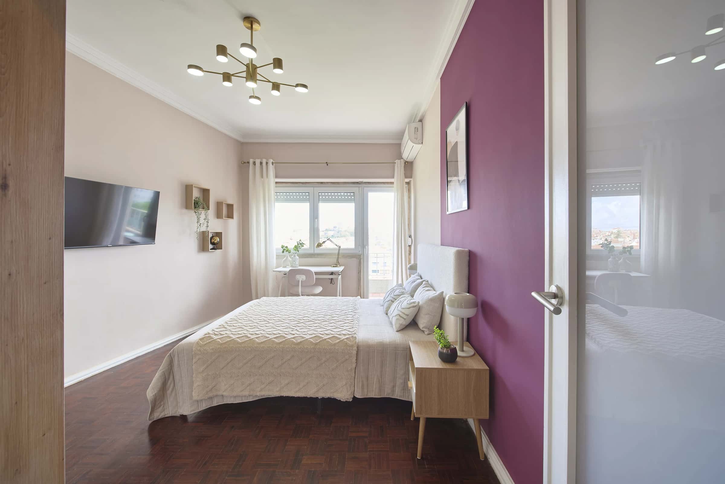 EN This cozy 4-bedroom apartment in Alameda offers a comfortable and practical living space in one of Lisbon’s most central and well-connected neighborhoods. Located on the eighth floor, it features a fully equipped kitchen, 2 bathrooms (1 full and 1 half bathroom) ensuring convenience and functionality for everyday life.Bright and inviting, the apartment stands out for its pleasant atmosphere and excellent natural light. Its well-distributed layout makes it a perfect choice for those who appreciate both comfort and accessibility. Surrounded by cafés, restaurants, supermarkets, and essential services, everything you need is just a short walk away.The nearest supermarket is about 3 minutes away on foot, and the closest bus stop is approximately 2 minutes away, making it easy to get around and explore the city. Alameda is one of Lisbon’s most central and vibrant neighborhoods, known for its wide avenues, green parks, and dynamic local life. The area offers a great mix of residential comfort and urban convenience, with plenty of cafés, restaurants, supermarkets, and shops nearby.It’s a pleasant neighborhood with a balanced atmosphere — lively during the day and peaceful in the evenings. Metro: Alameda station (Green and Red Lines) provides direct connections to key areas like Baixa-Chiado, Saldanha, and Lisbon Airport.Buses: Multiple Carris lines pass through Alameda, connecting easily to Areeiro, Marquês de Pombal, and Campo Grande.Trains: Roma-Areeiro station is nearby, offering suburban and regional links.With excellent public transport options, living in Alameda means being close to everything Lisbon has to offer. - Jardim da Alameda Dom Afonso Henriques – A beautiful park perfect for walks, picnics, or relaxing outdoors.- Instituto Superior Técnico – One of Portugal’s top universities, just steps away.- Avenida Almirante Reis – A lively avenue full of cafés, restaurants, and shops.- Saldanha – A nearby business and commercial district with modern conveniences.- Areeiro – A traditional area offering local markets and pleasant green spaces.Alameda combines comfort, accessibility, and a great lifestyle, making this bright and cozy apartment an excellent choice for living in Lisbon’s city center. - No smoking.- No pets allowed.- No parties.- Trash must be taken out daily.- Short-term visitors are allowed (2 days). Longer period: €20 per day.- Utilities: included up to €25 per tenant.- Cleaning: offered by the landlord.- Bedding: pillows, duvet, and bed sheets are not provided.- Payment before check-in: first and last month, deposit and admin fee.- Check-ins: from Monday to Saturday from 4pm until 7:30pm. No check-ins on Sundays and bank holidays. Check-in is authorized only 24h after the payment is confirmed in our bank account and the contract is signed. The bedroom is a cozy and comfortable space, designed to offer residents a peaceful and restful environment. The room features a cozy double bed, a desk, a chair, and storage space for your belongings.