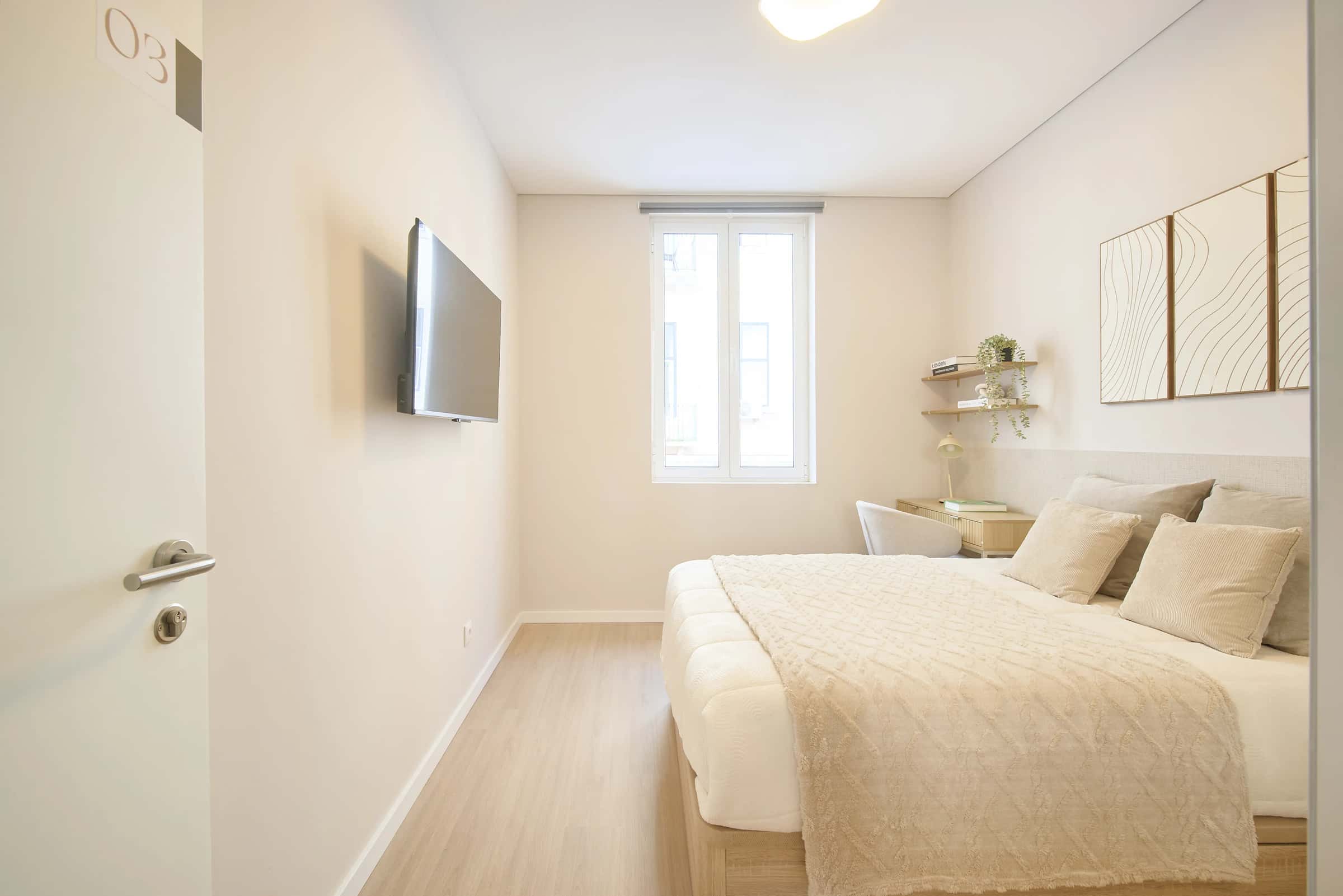 EN This cozy ground-floor apartment in Santos offers space, comfort, and practicality in one of Lisbon’s most charming and vibrant neighborhoods. Featuring 10 bedrooms and 4 bathrooms, it provides a large and welcoming living environment, ideal for both relaxation and everyday living. The apartment also includes a fully equipped kitchen, designed for convenience and modern use.With its spacious layout and warm atmosphere, this apartment is perfect for those who value both comfort and location. Shops, cafés, restaurants, and essential services are all within easy reach, making it a great place to enjoy life in Lisbon. The nearest supermarket is about a 2-minute walk, and the closest bus stop is approximately 3 minutes away, ensuring quick and convenient access to transport and nearby amenities. Santos is a lively and historic neighborhood in Lisbon, known for its riverside charm, cultural scene, and relaxed atmosphere. The area is full of local cafés, restaurants, shops, and services, offering a mix of tradition and modern city living. Train: Santos station provides direct access to the Cascais Line, connecting easily to central Lisbon and coastal areas.Buses: Several main bus lines serve the Santos area, including the 714, 727, 736, and 758, offering easy and frequent connections to other parts of the city.Thanks to its central and well-connected location, living in Santos means excellent access to Lisbon’s main attractions and nearby districts. - Miradouro de Santo Amaro – A scenic viewpoint with stunning views of Lisbon and the Tagus River.- Museu da Carris – A cultural museum dedicated to the history of Lisbon’s transport.- Riverside cafés and restaurants – Perfect for relaxing and enjoying the city’s vibrant atmosphere.- Local shops and markets – Convenient for daily needs and exploring the area’s charm.- Cultural landmarks – Offering authenticity and historical depth to everyday Lisbon life.Santos combines history, culture, and riverside charm, making this cozy and well-equipped apartment a perfect choice for comfortable and authentic living in Lisbon. - No smoking.- No pets allowed.- No parties.- Trash must be taken out daily.- Short-term visitors are allowed (2 days). Longer period: €20 per day.- Utilities: included up to €25 per tenant.- Cleaning: offered by the landlord.- Bedding: pillows, duvet, and bed sheets are not provided.- Payment before check-in: first and last month, deposit and admin fee.- Check-ins: from Monday to Saturday from 4pm until 7:30pm. No check-ins on Sundays and bank holidays. Check-in is authorized only 24h after the payment is confirmed in our bank account and the contract is signed. The bedroom is a cozy and comfortable space, designed to offer residents a peaceful and restful environment. The room features a cozy double bed, a desk, a chair, and storage space for your belongings.