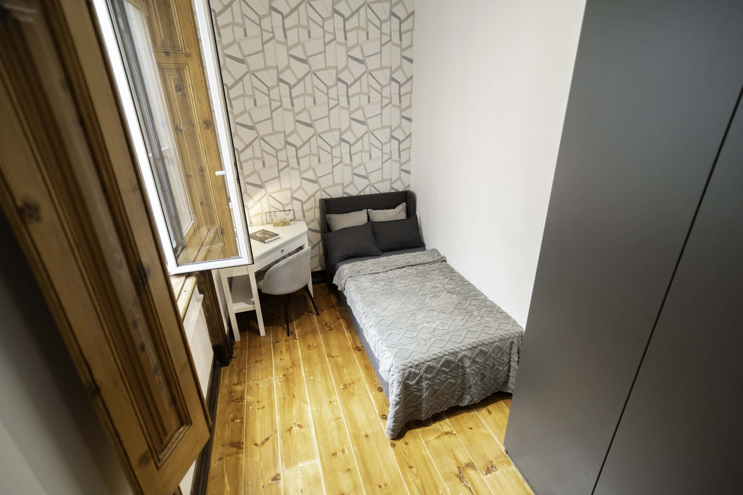 EN This cozy fifth-floor apartment in Avenida offers comfort and functionality in one of Lisbon’s most prestigious and central neighborhoods. Featuring 9 bedrooms and 4 bathrooms (3 shared and 1 en-suite), it provides a spacious and welcoming living environment, ideal for both relaxation and everyday life. The apartment also includes a fully equipped kitchen, perfect for modern living and daily convenience.With its generous layout and warm atmosphere, this apartment is perfect for those who value both comfort and location. Shops, cafés, restaurants, and essential services are all within easy reach. The nearest supermarket is about a 3-minute walk, and the closest bus stop is approximately 2 minutes away, ensuring quick and convenient access to transport and nearby amenities. Avenida is one of Lisbon’s most iconic areas, known for its luxury shops, elegant architecture, and vibrant city life. The neighborhood offers a mix of high-end boutiques, renowned cafés, restaurants, and cultural landmarks, making it ideal for residents seeking both convenience and sophistication. Metro: The nearby metro stations provide access to both the Blue and Green Lines, connecting easily to key areas such as Baixa-Chiado, Saldanha, and Marquês de Pombal.Buses: Several main bus lines operate along Avenida, including 701, 728, 744, and 783, offering convenient links to other parts of Lisbon.Thanks to its central location, living in Avenida means excellent public transport options and quick access to Lisbon’s main attractions. - Avenida da Liberdade – Lisbon’s most famous boulevard, lined with shops, cafés, and theaters.- Marquis of Pombal Square – A central landmark connecting key city avenues.- Eduardo VII Park – A large green space ideal for relaxation and outdoor activities.- Lisbon’s theaters and cultural centers – Offering concerts, plays, and exhibitions.- Luxury boutiques and restaurants – Providing shopping and dining experiences at your doorstep.Avenida combines culture, convenience, and elegance, making this cozy and well-equipped apartment a perfect choice for comfortable and sophisticated living in Lisbon. - No smoking.- No pets allowed.- No parties.- Trash must be taken out daily.- Short-term visitors are allowed (2 days). Longer period: €20 per day.- Utilities: included up to €25 per tenant.- Cleaning: €25 per tenant.- Bedding: pillows, duvet, and bed sheets are not provided.- Payment before check-in: first and last month, deposit and admin fee.- Check-ins: from Monday to Saturday from 4pm until 7:30pm. No check-ins on Sundays and bank holidays. Check-in is authorized only 24h after the payment is confirmed in our bank account and the contract is signed. The bedroom is a cozy and comfortable space, designed to offer residents a peaceful and restful environment. The room features a cozy single bed, a desk, and storage space for your belongings.