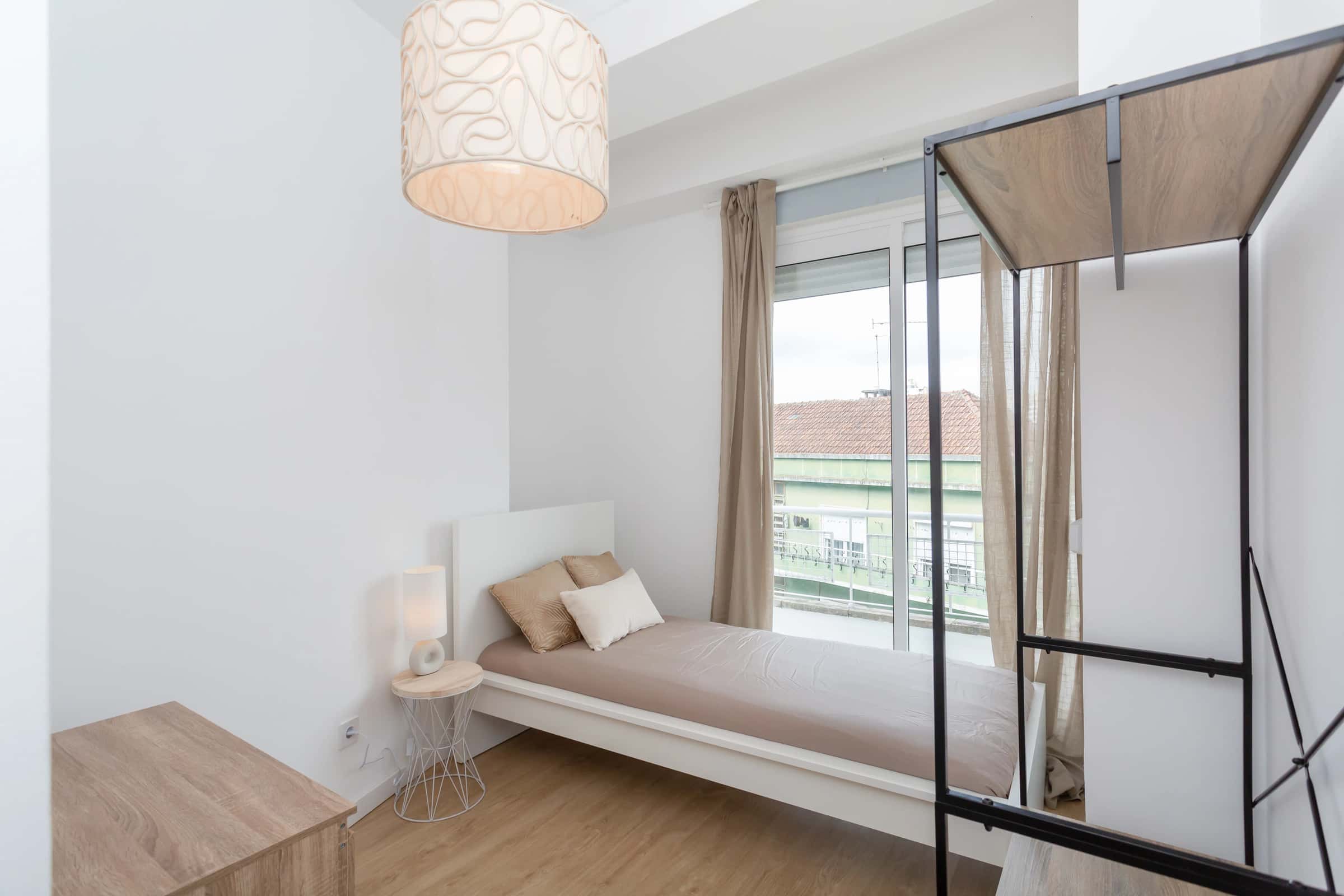 EN This cozy second-floor apartment in Queluz offers comfort and practicality in a charming and well-connected neighborhood. Featuring 5 bedrooms and 2 bathrooms (1 shared and 1 en-suite), it provides a welcoming living environment ideal for both relaxation and everyday life. The apartment also includes a fully equipped and bright kitchen, perfect for modern and convenient living.With its warm and inviting atmosphere, this apartment is ideal for those who value both comfort and location. Shops, cafés, restaurants, and essential services are all within easy reach. The nearest supermarket is about a 2-minute walk, and the closest bus stop is approximately 3 minutes away, ensuring convenient access to transport and local amenities. Queluz is a peaceful and residential area, known for its calm streets and proximity to Lisbon. The neighborhood offers a mix of local shops, cafés, restaurants, and essential services, providing a comfortable and convenient urban living experience. Train: Nearby stations provide easy access to central Lisbon and surrounding areas.Buses: Several bus lines operate in the area, ensuring convenient connections to other parts of Queluz and Lisbon.Thanks to its well-connected location, living in Queluz means easy access to public transport and nearby attractions. - Palácio Nacional de Queluz – A historic palace and gardens offering cultural and scenic experiences.- Local parks and green spaces – Perfect for relaxation and outdoor activities.- Shops, cafés, and restaurants – Convenient for daily needs and enjoying the neighborhood.- Community and cultural landmarks – Adding charm and authenticity to everyday life.- Nearby train stations – Facilitating easy travel to Lisbon and surrounding areas.Queluz combines calm residential living, accessibility, and local charm, making this cozy and well-equipped apartment a perfect choice for comfortable and authentic living. - No smoking.- No pets allowed.- No parties.- Trash must be taken out daily.- Short-term visitors are allowed (2 days). Longer period: €20 per day.- Utilities: included up to €25 per tenant.- Cleaning: offered by the landlord.- Bedding: pillows, duvet, and bed sheets are not provided.- Payment before check-in: first and last month, deposit and admin fee.- Check-ins: from Monday to Saturday from 4pm until 7:30pm. No check-ins on Sundays and bank holidays. Check-in is authorized only 24h after the payment is confirmed in our bank account and the contract is signed. The bedroom is a cozy and comfortable space, designed to offer residents a peaceful and restful environment. The room features a cozy single bed, a desk, and storage space for your belongings.