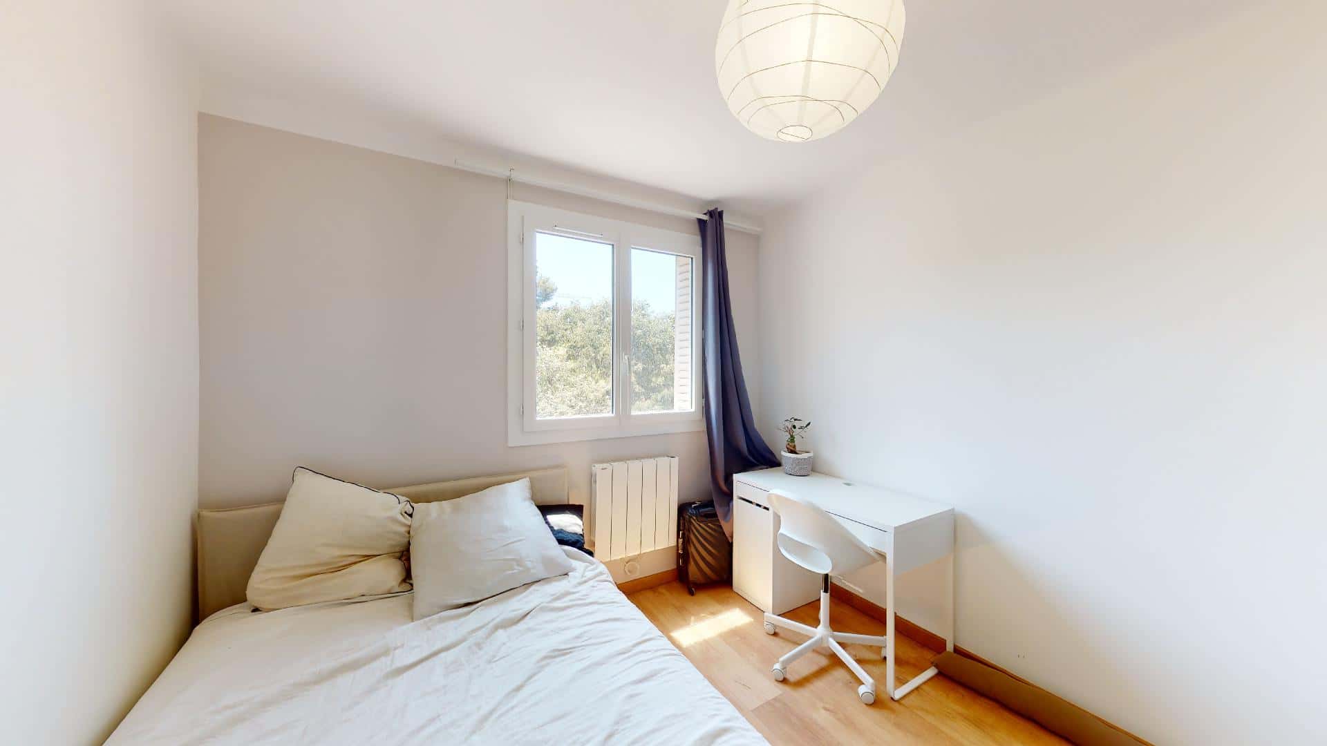 APPARTEMENT 4 PIÈCES AVEC JARDINDécouvrez cette colocation de 3 chambres de 75 m² localisée au 17 Allée De La Sauvagère à Marseille (13010).🛌 LA CHAMBRELa chambre 2 se compose d'un lit double, d'un bureau accompagné de sa chaise, et d'un meuble dressing.🏠 LES ESPACES COMMUNSLe logement a été entièrement rénové et se compose d’un hall d’entrée, d’une cuisine très bien équipée (four, micro-ondes, plaques de cuisson, frigidaire, rangements, etc.) et donne accès à une loggia, d’une salle de bain et de trois chambres. Le salon est agréablement décoré grâce à ses meubles étagères accompagnés de plantes et se munit d’un canapé, d’un tapis de sol, d’une table basse, d’un meuble TV et sa TV, d’une table à manger avec chaises et enfin d’un agréable balcon avec une vue dégagée et arborée. La salle de bain du logement est commune et dispose d’un double meuble vasque et d’une douche. Un WC indépendant se trouve accolé à la salle de bain. Les chambres sont similaires et disposent toutes d’un lit double, d’un bureau et de plusieurs rangements. 🌳 LES EXTÉRIEURSL'appartement comporte un balcon et un jardin, idéal pour profiter des belles journées ou avoir un peu d'air frais. Tout est prévu pour votre véhicule : parmi les emplacements disponibles dans l'immeuble, une place de parking est réservée pour cet appartement. Le bâtiment a un gardien.🏙️ LE QUARTIERLocalisé dans le 10ᵉ arrondissement de Marseille, l’appartement se trouve dans une résidence sécurisée et à proximité de nombreuses commodités. Votre logement se situe :À 4 minutes à pied de l’arrêt de bus La Sauvagère, desservi par les lignes de bus 15, 15s, 17 et 518.À 5 minutes à pied du Carrefour Market Romain Rolland, d’un magasin Picard, de la boulangerie et pharmacie de la Sauvagère.À 20 minutes à pied de l’arrêt de métro Sainte-Marguerite Dromel, qui vous emmènera au centre-ville en moins de 5 minutes. À 20 minutes en transport du centre commercial Prado et de ses grands magasins. ⚡️ Inclus dans les charges :GardienInternet FibreChauffageEau chaudeElectricitéTaxe Ordures MénagèresEntretien de l'immeubleEau couranteEntretien du jardin——————————————————————Bail individuel à la chambre. Pas de caution solidaire. Chacun est libre de partir quand il veut sans se soucier des autres colocs, dès le moment où il respecte un mois de préavis. Eligible aux APL.Les informations sur les risques auxquels ce bien est exposé sont disponibles sur le site Géorisques : www.georisques.gouv.frMontant estimé des dépenses annuelles d'énergie pour un usage standard : 994 € par an.Prix moyens des énergies indexés sur l'année 2021 (abonnements compris)