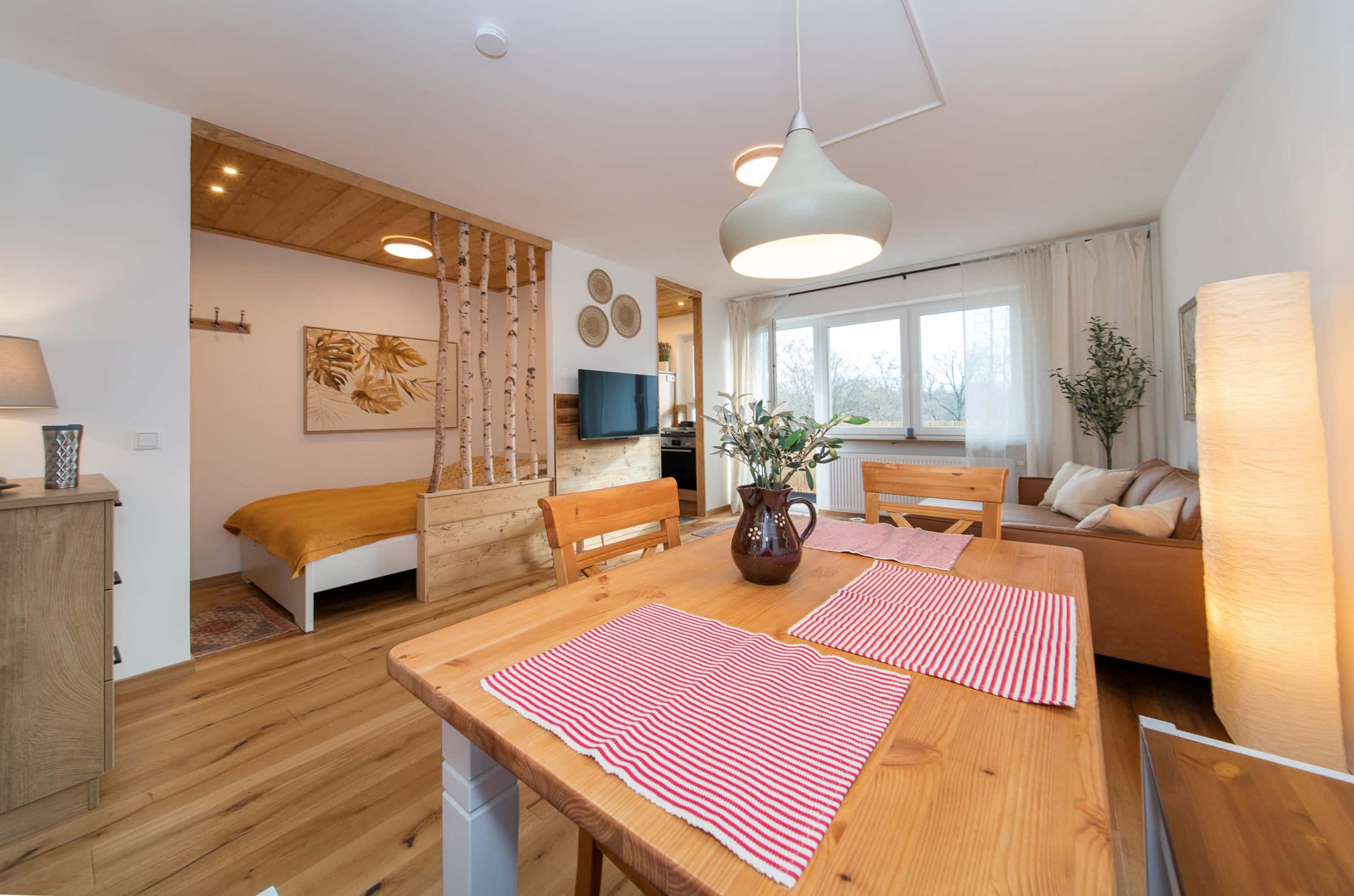 Studio Wiesental – quiet and comfortable in the green north-west (near A73 and center) ✓ Modern kitchen with dishwasher and bathroom with washing machine ✓ With a lot of comfort: comfortable real leather sofa and cosy bed with 140cm width ✓ For nature lovers: Pegnitzufer and outdoor pool in the neighborhood ✓ relax! At the end of the day on the balcony at sunset… Chalet Wiesental – ruhig und komfortabel im grünen Nordwesten (Nähe A73 und Zentrum) ✓ Moderne Küche mit Geschirrspüler und Bad mit Waschmaschine ✓ Mit viel Komfort: bequemes Ledersofa und gemütliches Bett mit 140cm Breite ✓ Für Naturliebhaber: Pegnitzufer und Freibad in der Nachbarschaft ✓ Entspannen Sie sich! Am Ende des Tages auf dem Balkon bei Sonnenuntergang...