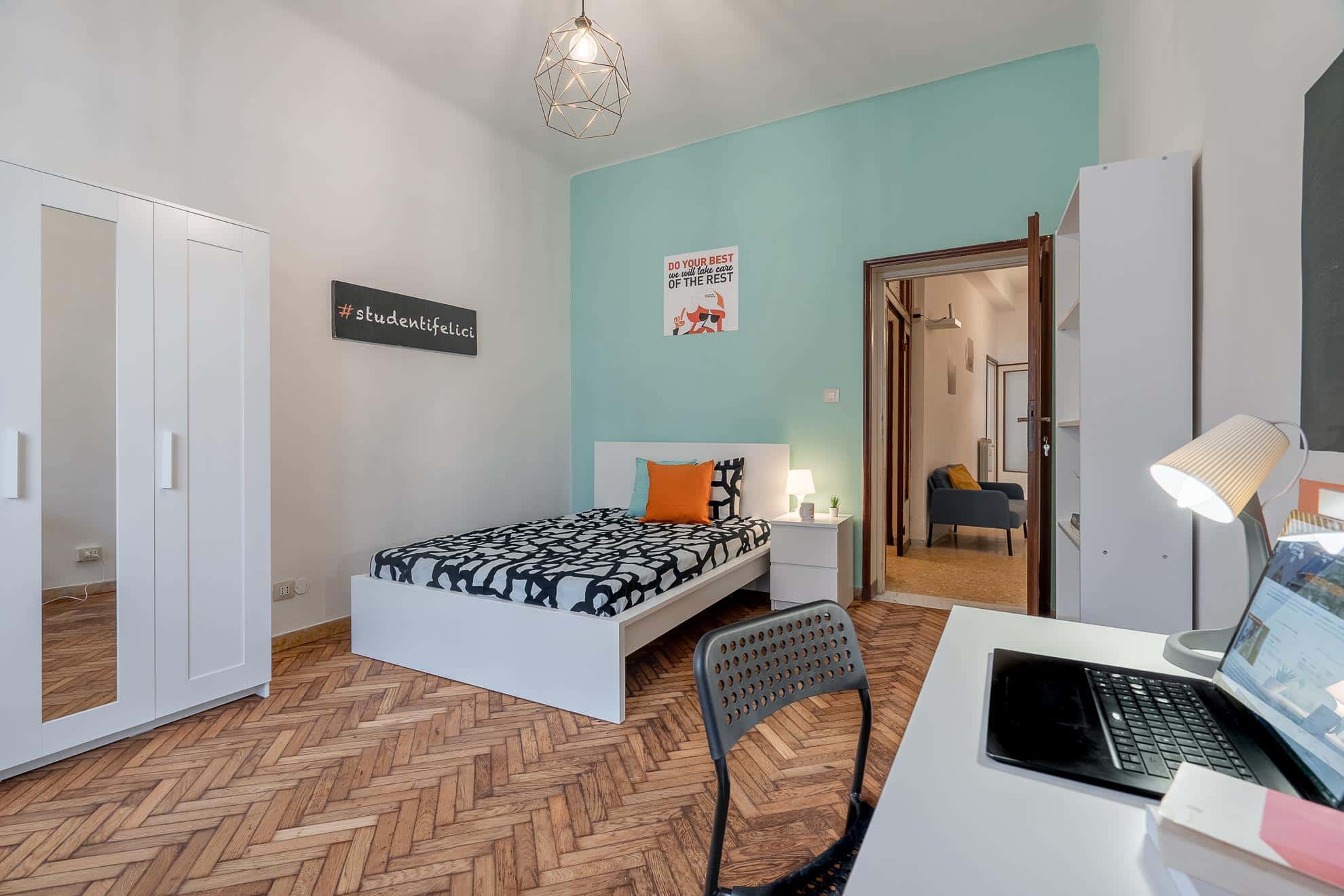 [ITA] Zona Aereoporto (vicina al centro), posizione strategica e ambita, si affitta una bellissima, luminosa (con doppie finestre) spaziosissima stanza "Stanza Semplice" ristrutturata appositamente per offrire comfort e comodità ai nostri studenti. La stanza è dotata di, letto piazza e mezza, armadio 3 ante, scrivania con portaoggetti, comodino, tendaggi, specchio, libreria e scarpiera; anche un terrazzo privato. I colori delle pareti favoriscono il buon umore e aiutano nello studio. *Siccome in questo momento stiamo terminando di ristrutturare l'appartamento, le immagini dell'annuncio sono rappresentativa di una stanza di simili dimensioni e disposizione degli arredi (le ns stanze come colori e arredi sono ttutte uguali!) Situato al primo piano, circa 90 mq di superficie. È composto da cucina non abitabile più una saletta da pranzo, 1 Bagno e 4 stanze singole. L'appartamento è ottimamente ristrutturato in funzione di tutto ciò che occorre ai nostri studenti. Dotato di WI-FI, lavatrice, cucina equipaggiata. [ENG] In the Airport area (close to the city center), a strategic and sought-after location, we're renting a beautiful, bright (with double windows), very spacious "Stanza Semplice" room, specifically renovated to offer our students comfort and convenience. The room is equipped with a queen-size bed, a three-door wardrobe, a desk with storage, a bedside table, curtains, a mirror, a bookcase, and a shoe rack; it also includes a private terrace. The wall colors promote a good mood and aid study. *Since we are currently finishing renovating the apartment, the listing images are representative of a room of similar size and furniture layout (our rooms are all the same in terms of color and furnishings!) Located on the first floor, approximately 90 square meters. It consists of a separate kitchen, a small dining room, one bathroom, and four single bedrooms. The apartment has been beautifully renovated to provide everything our students need. It features Wi-Fi, a washing machine, and a fully equipped kitchen.