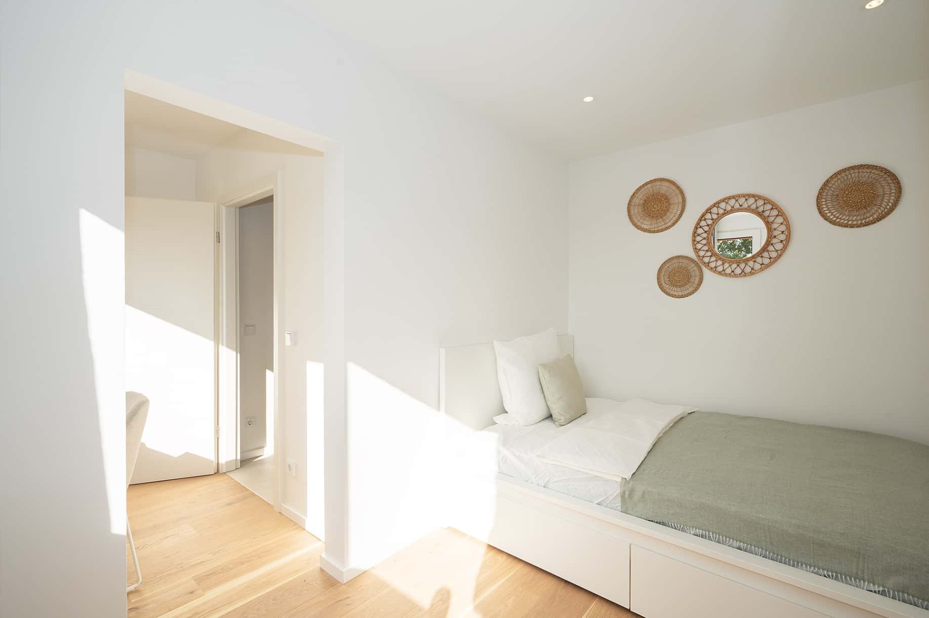We offer you the opportunity to move into a stylish, high-quality furnished apartment designed by our interior team. The bright and attractive apartment is located in a well-maintained multi-family house in a central and convenient area. Public transport is just a 5-minute walk away, providing excellent access to all parts of Munich. Numerous shopping and retail options are within walking distance. Upon entering the apartment, you are welcomed by bright and friendly rooms furnished with great attention to comfort, quality, and design. Each room is equipped with a bed, wardrobe, desk, and chair, allowing you to move in with just a suitcase. The modern bathroom features sand-colored tiles, a walk-in shower, and a rain shower. The fully equipped kitchen includes a dishwasher and a washing machine with drying function. Balconies or loggias are furnished with a table and two chairs. Some of our apartments are currently undergoing renovation. Should this be the case, all apartments are guaranteed to be ready for occupancy by the agreed move-in date. After completion, they meet our high standards of quality and furnishing. As all our apartments follow the same design concept, you can expect an equally attractive and comfortable living environment. The images shown may be sample images and serve to illustrate the furnishing style and standard. A lockable cellar compartment is also included. Electricity and heating costs are included in the warm rent. Only internet and broadcasting fees are shared with your housemates.