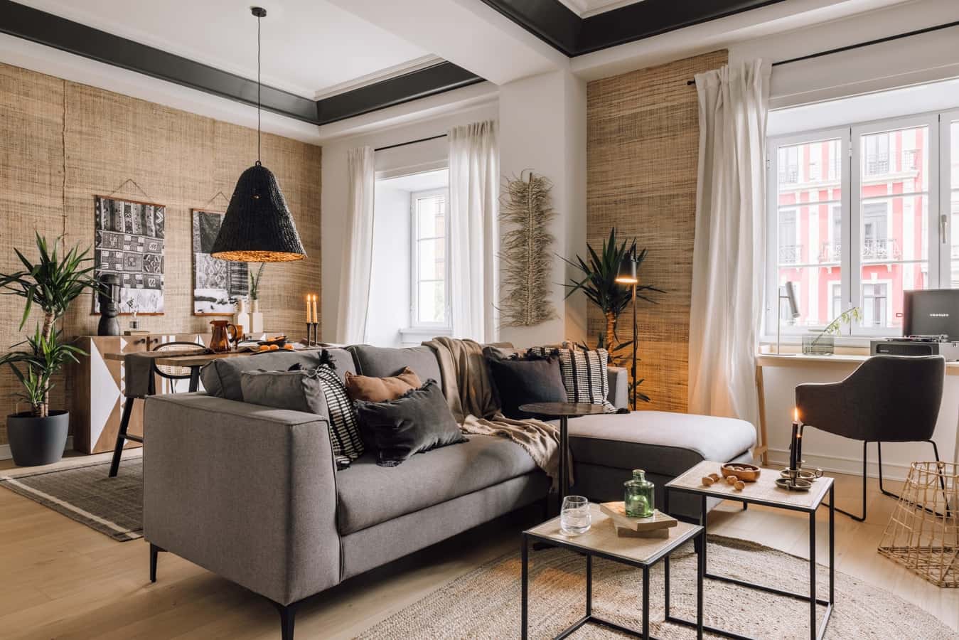 EN Our mission is to empower individuals to immerse themselves in new places by having a home wherever they go. We do this by providing artfully designed fully furnished and serviced apartments for stays of one month or more. We are currently present in some of the most important cities in Europe. Luminous and modern, this 82 square meter offers pure bliss to all who enter. Oujda is situated in the Avenida Novas neighborhood where guests are invited to soak in the picturesque promenades or dine at one of the many delectable restaurants. Once inside this two-bedroom, two-bathroom apartment Saharan-inspired awe takes over. Upon entrance, guests will find an open-concept living and dining area. The living room consists of designer furnishings and traditional Arabian arches that double as shelving for the entertainment system. Nearest the window sits a dedicated workstation. Natural fiber accent walls surround the four-person dining set on the other side of the room. The left wall is lined with a sleek kitchen space. Marble backsplash blends with the all-white cabinetry and appliances. All the necessary kitchenware is included. Continue down the hallway to find storage lining the left-hand wall and the first bedroom to the right. Geometric shapes provide dimension to the accent wall behind the queen-sized bed. The room concludes with a reading bench nearest the window. The next door to the right leads to the detached bathroom. The space is enveloped in white marble that continues into the walk-in shower. At the end of the hall is Oujda’s ensuite bedroom. Another all-marble bathroom sits straight on, this time with a shower-tub combination for a full spa-like experience. Back in the bedroom, the queen-sized bed takes the attention with the built-in designer framing that embodies the desert-like design. The room is complete with built-in storage on the back wall. This apartment comes equipped with ducted air system for absolute comfort. All bedding and linens are provided. *We welcome pets, fees are subject to apply. Guests will be informed of any additional charges in the final contract. *We cannot be held liable for any noises (construction, or street noise) done outside the apartment. We also cannot be liable for any rooms without air conditioning (all the rooms with air conditioner will be explicitly explained in our description). We will not accept any reservation cancellations or refund request related to these two issues. *Our in-house design team expertly selects all apartment furniture and decor to ensure the highest level of quality and comfort. As part of consistent home upkeep, design improvements, and photo staging, there may be minor differences in furnishings seen in the photos and what you find in the apartment. Inquire with a sales agent for any questions or doubts.
