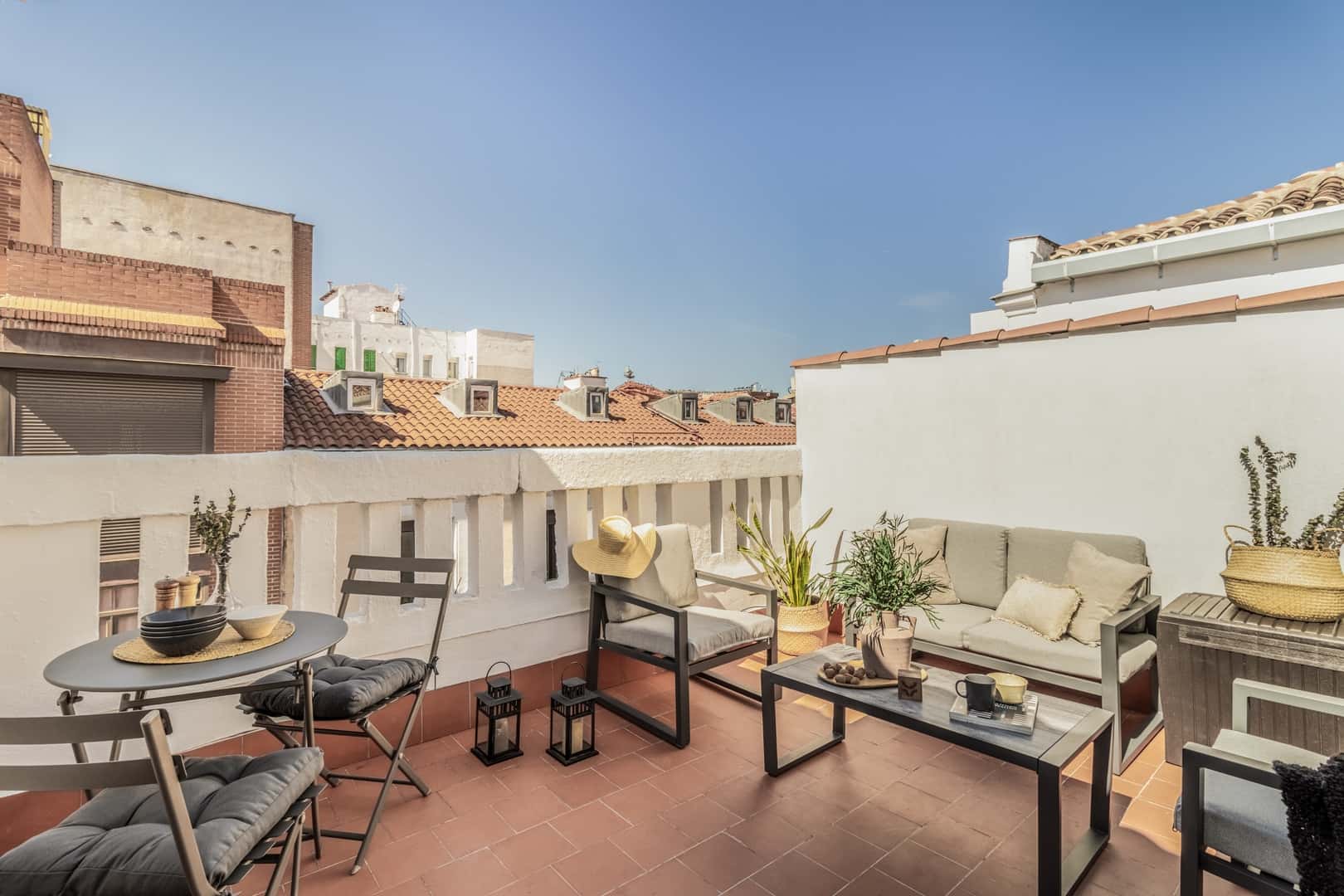 EN Our mission is to empower individuals to immerse themselves in new places by having a home wherever they go. We do this by providing artfully designed fully furnished and serviced apartments for stays of one month or more. We are currently present in some of the most important cities in Europe. This 64 square meter property blends traditional with modern, typical Madrilenian tiles and outdoor space meet unique design and chic decor. Alcazar boasts beauty both inside and out. Residing in the heart of the Almagro neighborhood, revel in the sights of royal mansions or historical monuments. After a stroll through the streets of Madrid, there's nothing better than relaxing at home. This 1 bedroom, 1 bathroom unique property is given a modern spin with design inspired by international travels and supplies from local artisans. The bedroom features a queen size bed with a rustic wooden headboard and an exposed brick wall framing the space. The beautifully tiled bathroom has a walk in shower and plenty of space for getting ready in the morning. The living room has a full entertainment system and an exposed brick accent wall with dried flower hangings to keep the grassland theme alive. A dedicated workstation sits behind the couch for remote working needs. The door leads out to the large terrace. Guests are encouraged to soak up the Mediterranean sun and enjoy a meal on the terrace, or in the colder months, at the indoor dining table. The tiled kitchen is furnished with all cooking appliances and utensils. Fully furnished, this home comes with everything you need, including bedding and linens. *We welcome pets, fees are subject to apply. Guests will be informed of any additional charges in the final contract. *We cannot be held liable for any noises (construction, or street noise) done outside the apartment. We also cannot be liable for any rooms without air conditioning (all the rooms with air conditioner will be explicitly explained in our description). We will not accept any reservation cancellations or refund requests related to these two issues. *Our in-house design team expertly selects all apartment furniture and decor to ensure the highest level of quality and comfort. As part of consistent home upkeep, design improvements, and photo staging, there may be minor differences in furnishings seen in the photos and what you find in the apartment. Inquire with a sales agent for any questions or doubts. NRA ESHFNT00E92810900001229000300000000000000000000000007