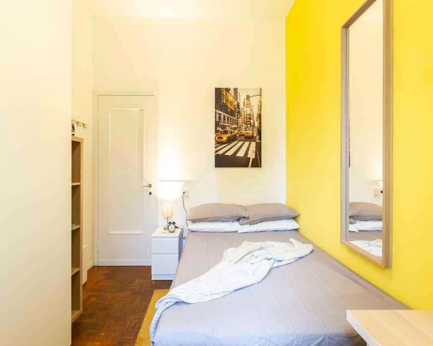 Inquilini all'interno della struttura / Tenants inside the building: 1) Male, Student, 25 2) Male, Student, 23 4) Male, Student, 18 5) Male, Student, 18 EN Single room in a shared apartment, composed by 5 bedrooms and 2 bathrooms. Of about 12 sqm with a one and a half bed and a work station. With wifi, concierge services, dishwasher, washing machine. Energy class: G, IPE 214.70 Kwh/Sqm year. IT Stanza singola in un appartamento condiviso, composto da 5 camere e 2 bagni. Stanza di circa 12 mq con un letto a una piazza e mezza e una scrivania. Con wifi, servizio portineria, lavastoviglie, lavatrice. Classe energetica: G, IPE 214.70 Kwh/mq anno. ES Habitación individual en un piso compartido, compuesto por 5 habitaciones y 2 baños. De unos 12 m2 con una cama y media y un puesto de trabajo. Con wi-fi, servicios de conserjería, lavavajillas, lavadora. Clase energética: G, IPE 214.70 Kwh/m2 año. FR Chambre individuelle dans un appartement partagé, composé de 5 chambres et 2 salles de bain. D'une superficie d'environ 12 avec un lit et demi et un poste de travail.. Avec wifi, services de conciergerie, lave-vaisselle, machine à laver. Classe d'énergie : G, IPE 214.70 Kwh/Sqm année. [ITA]: Non sarà possibile effettuare il check-in di Sabato, Domenica e festivi Sarà necessario un preavviso di 48 ore dalla ricezione del contratto per prenotare il check-in [ENG]: It will not be possible to check in on Saturdays, Sundays and holidays A 48-hour notice from receipt of contract will be required to book check-in [ITA]: - NON E' POSSIBILE EFFETTUARE VISITE. - La biancheria non è inclusa nella camera. - Inquilini: la casa é composta da studenti o giovani lavoratori 20-28 anni. Si tende a mantenere un'occupazione divisa equamente tra inquilini di genere maschile e femminile. - Accetta: Qualsiasi genere - La permanenza minima contrattuale corrisponderà al periodo di prenotazione su Roomless. Qualora si desiderasse uscire prima del check-out selezionato in fase di prenotazione, si potrà esercitare l'opzione di uscita anticipata versando 1,5 mensilità. Nel caso in cui si volesse fare subentrare un inquilino (sia che lo trovi il proprietario sia che lo trovi l'inquilino attuale) si potrà uscire dall'appartamento pagando una spesa di servizio pari a 200€.In questo caso il contratto si chiuderà il giorno precedente all'ingresso del sostituto. Sarà comunque dovuta anche la spesa per la chiusura del contratto pari a 225€.. In ogni caso, 3 mesi rispetto alla data di check-out, va comunicata la disdetta regolare per interrompere il contratto alla data stabilita; se non avverrà tale comunicazione, il contratto rimarrà attivo. - L'appuntamento per l'ingresso in casa dovrà essere prenotato con almeno 3 giorni lavorativi di preavviso rispetto la data d'ingresso di tuo interesse. [ENG]: - VIEWING IS NOT POSSIBLE. - Bed linen is not included in the room. - Tenants: The house is composed of students or young workers 20-28 years old. There is a tendency to maintain an equal split between male and female tenants. - Accepted: Any gender - The minimum contractual stay will correspond to the booking period on Roomless. If you wish to leave before the check-out date selected at the time of booking, you may exercise the option of early departure by paying 1.5 month's rent. In the event that you wish to have a tenant take over (whether the owner or the current tenant finds him/her), you may leave the flat by paying a service charge of €200. In this case the contract will end the day before the replacement tenant moves in. A closing charge of €225 will also be due.. In any case, 3 months before the check-out date, the regular cancellation must be communicated in order to terminate the contract on the established date; if no such communication is made, the contract will remain active. .- Check-in will be guaranteed at least 48 hours after your first contact with the property.