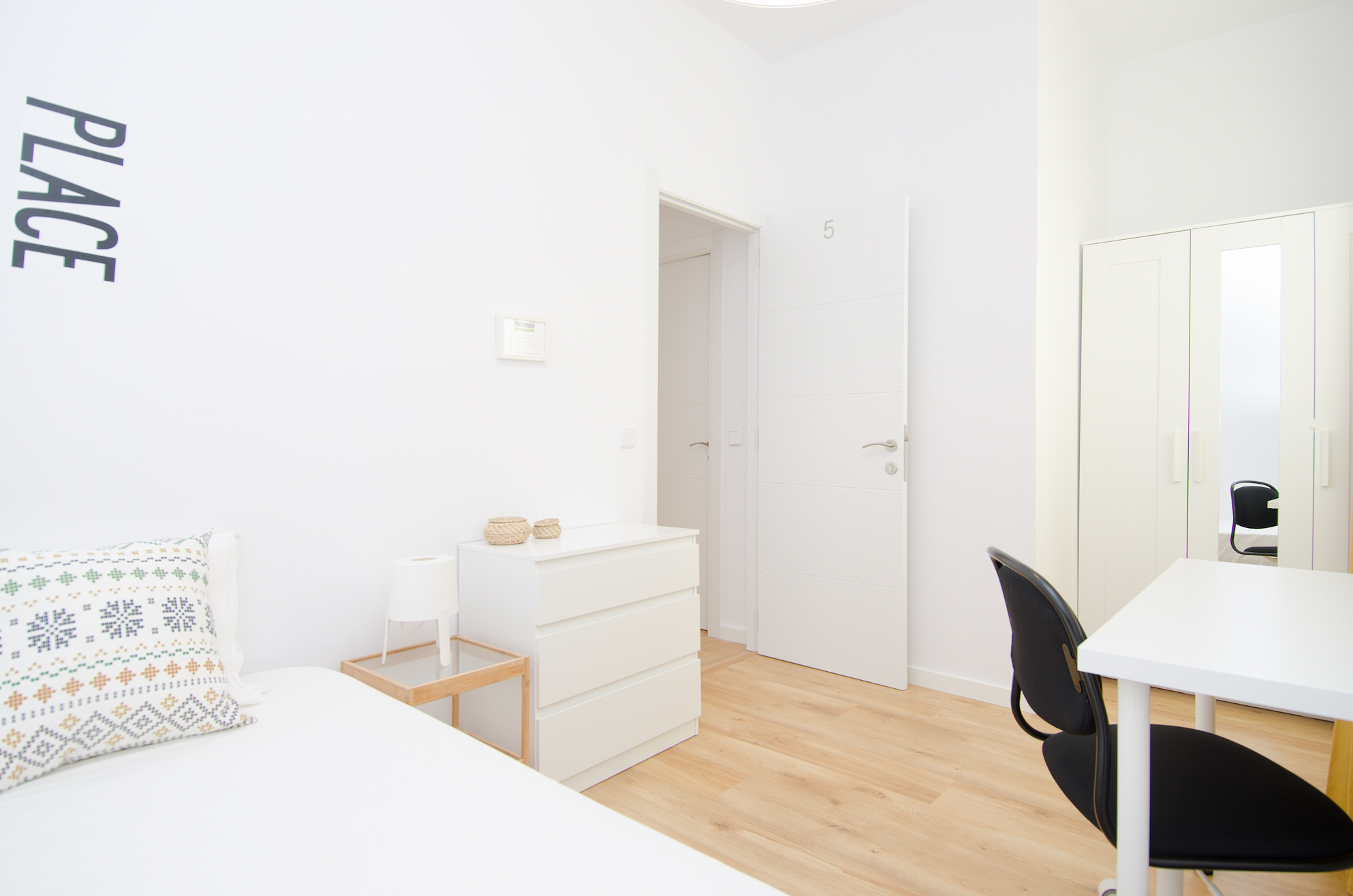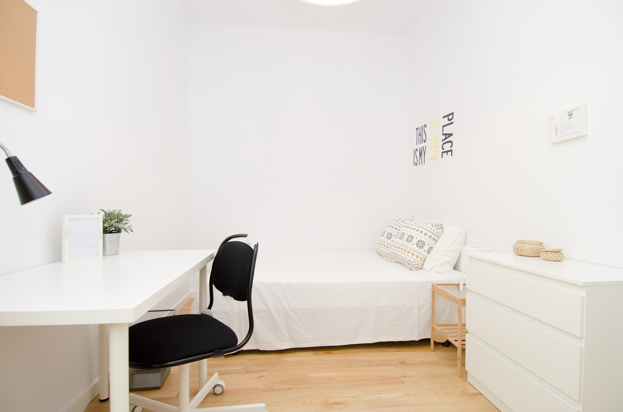 [ES] Habitación individual en el Centro de Madrid, ideal para estudiantes y jóvenes profesionales. Situada en un barrio céntrico y tranquilo, con excelente conexión mediante transporte público y rodeada de todos los servicios necesarios para el día a día. La habitación es acogedora y está completamente amueblada. Dispone de una cama grande, mesilla de noche, armario, cómoda, escritorio con lámpara, corcho para notas, espejo y calefacción. También cuenta con una ventana interior que aporta luz natural y privacidad. Un espacio funcional y confortable, ideal tanto para estudiar como para descansar. La vivienda se encuentra en una tercera planta y cuenta con un total de nueve habitaciones. Las zonas comunes incluyen un recibidor, un pequeño cuarto de almacenamiento junto a la entrada, y una cocina amplia y totalmente equipada con horno, tres neveras, microondas y cafetera, además de una mesa para comer y un pequeño balcón. También dispone de una zona común espaciosa para compartir momentos y un salón acogedor con acceso a otro balcón. El piso cuenta con tres baños compartidos y se incluyen utensilios básicos de limpieza, como fregona, escoba, recogedor y plancha. El alquiler incluye conexión a internet y limpieza semanal de las zonas comunes. Una opción práctica, bien equipada y perfectamente ubicada para disfrutar de la vida en Madrid sin complicaciones. Conectividad y transporte público Metro: Las estaciones más cercanas son Tirso de Molina (línea 1) y La Latina (línea 5), ambas a menos de 5 minutos a pie. Autobuses: Las líneas 17, 18, 26, 31, 50, 65, M1, M3 y N26 tienen paradas cercanas en la zona. Cercanías: La estación de Sol se encuentra a unos 10 minutos a pie. Educación y universidades cercanas (tiempo en transporte público) Universidad Complutense de Madrid: Aproximadamente a unos 40 minutos en transporte público. Universidad Politécnica de Madrid (Ciudad Universitaria): Aproximadamente a unos 30 minutos en transporte público. Universidad Pontificia Comillas (ICADE-ICAI): Aproximadamente a unos 20 minutos en transporte público. Servicios y supermercados cercanos Supermercados: Día, Lidl, Carrefour Market. Centros de salud: Centro de Salud Segovia. Centro de Salud Embajadores. Zonas verdes y espacios de ocio Plaza Mayor: A 5 minutos a pie, es una de las plazas más emblemáticas de Madrid. Teatro Nuevo Apolo: Referente cultural de la zona, con una variada programación de teatro, música, etc. Sala Equis: Ofrece cine alternativo y programación cultural en un espacio singular. Puerta del Sol: Centro neurálgico de Madrid, rodeado de comercios, terrazas y ambiente urbano. Bares y restaurantes Café del Art: Cafetería moderna en el barrio de La Latina. Cava Baja y Cava Alta: Estas calles son famosas por sus tabernas y bares de tapas, ideales para disfrutar del tradicional “tapeo” madrileño. Divorare Toledo: Bocatería con opciones creativas y ambiente informal. [ENG] Room in Madrid, for students and young professional between 18 and 33 years old, completely furnished and with internet Coliving located in the centre of Madrid, 2 minutes from Tirso de Molina metro station and 7 minutes from Sol metro station, close to La Latina neighborhood with all services close to the flat (supermarkets, pharmacies, gyms, restaurants...). El Corte Inglés is just a few minutes away, as well as Puerta del Sol and Plaza Mayor. The building in which it is located has a lift and the property has been completely refurbished. It is adapted for use as a flat for young professionals with a coworking area where you can work from home. The flat has a common area, equipped kitchen and three bathrooms.