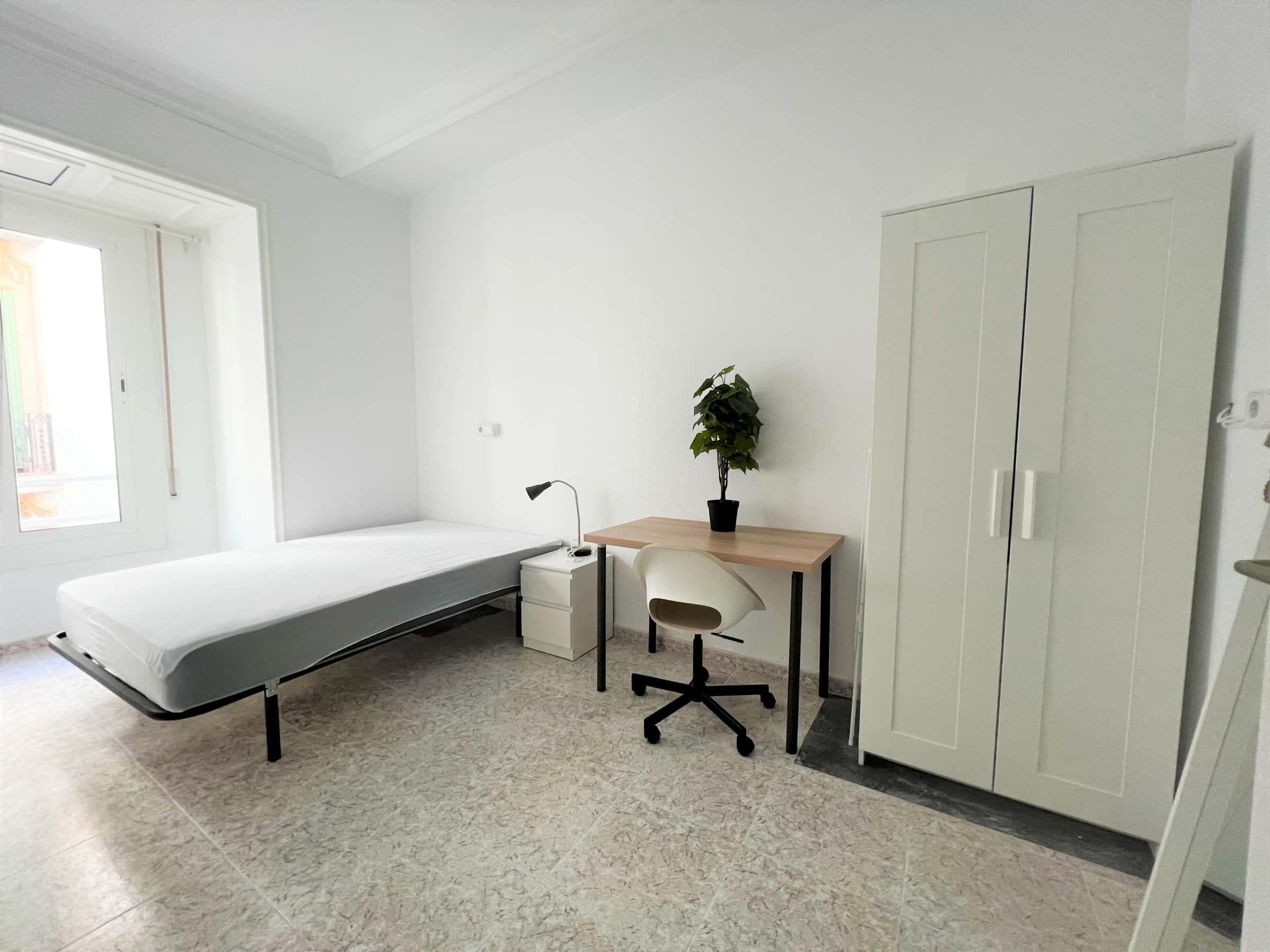 Come join us in our beautiful apartment in the heart of Barcelona! This is a big modern apartment shared by young students and professionals. You will have your own spacious room with desk, wardrove and bed. You will share two bathrooms and the kitchen. Our apartments also features a great sunny common area so you can study or socialize with the rest of your housemates. Come join us!