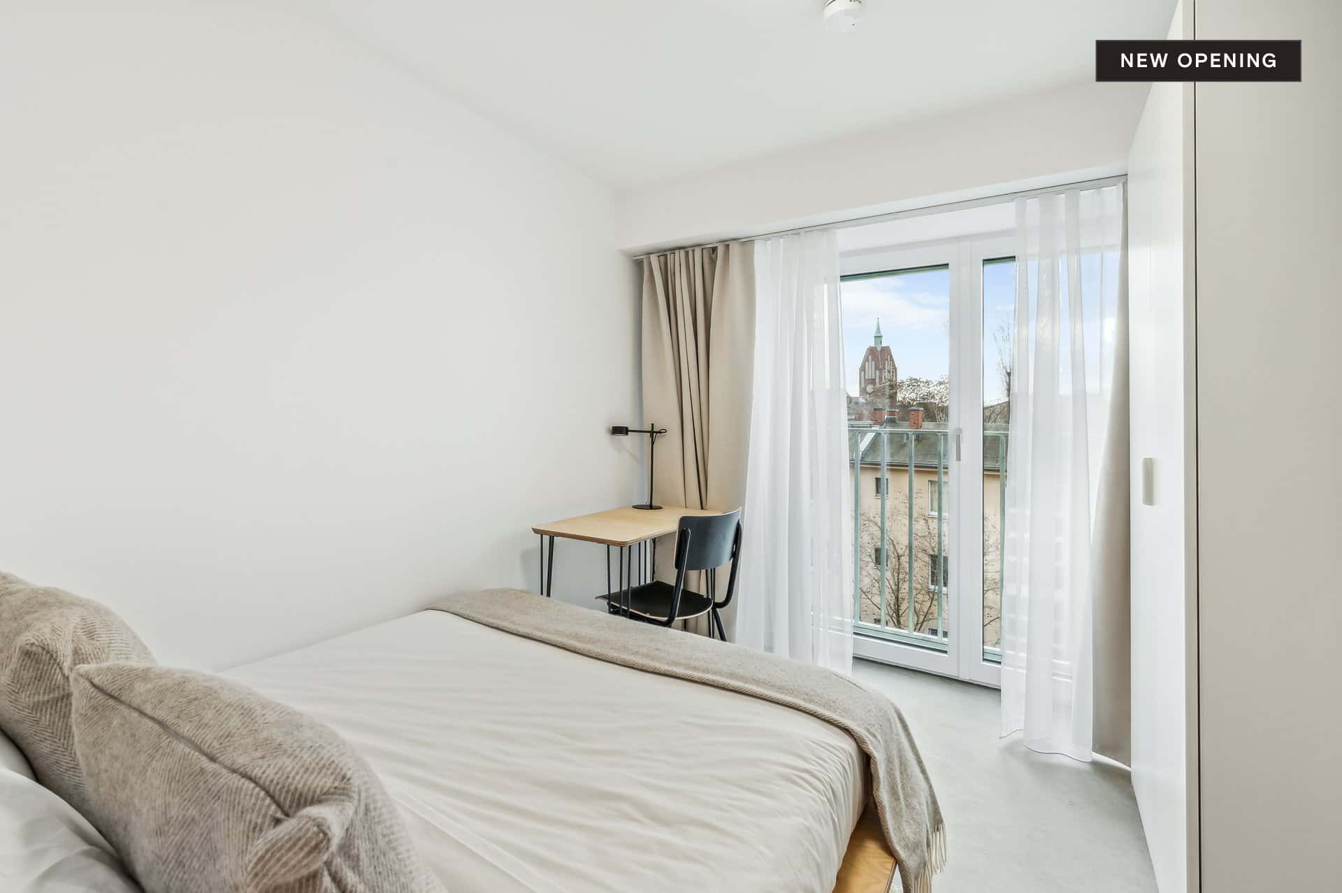 [EN] Our rooms come fully furnished with everything you need for a comfortable daily life. In the bedroom area, you will find a bed with a nightstand and lamp, as well as a large wardrobe. A premium mattress with a set of bedsheets, pillows, and duvets is also always included. To comfortably work or study from home, there is a table with a lamp and chair. You wont need anything additional to settle in, and can arrive just your luggage at hand. You will be the first to move into our newly constructed and renovated apartments. Each flat has a fully equipped modern kitchen with everything from pans to a coffee machine, dishwasher, and oven. All apartments have spacious bathrooms that you will be sharing with your flatmates. The property is purposefully built to be an ideal location for you to enjoy the co-living lifestyle, and be part of the Habyt community. The building is split into three parts with a front house, and a cozy garden house as well as a back house. You can be cooking meals with your flatmates in the fully equipped kitchens or spending time in the comfortable common area. This apartment provides everything you need for comfortable daily living. Your room comes fully furnished, complete with a bed and workspace, and the entire apartment is equally well-equipped. The kitchen includes appliances, cookware, a fridge, and a stove. Additionally, you’ll have access to a washing machine and Wi-Fi. We’re sure you’re curious about your future flatmates! Typically, they are international students or young professionals aged 20 to 35 who enjoy the experience of shared living. While we can’t share further details due to privacy regulations, we’re confident you’ll find a great community here. Please note that each room is for single occupancy, with guests allowed for a maximum of five days per month. To book the apartment, we require a few documents: a copy of your ID and proof of income (we accept flexible options such as an employment or internship contract, blocked account, savings, recent payslips, or similar documents from a guarantor). When booking, you’ll pay the first month’s rent in advance, but rest assured, you’ll only be charged for rent starting from your move-in date.