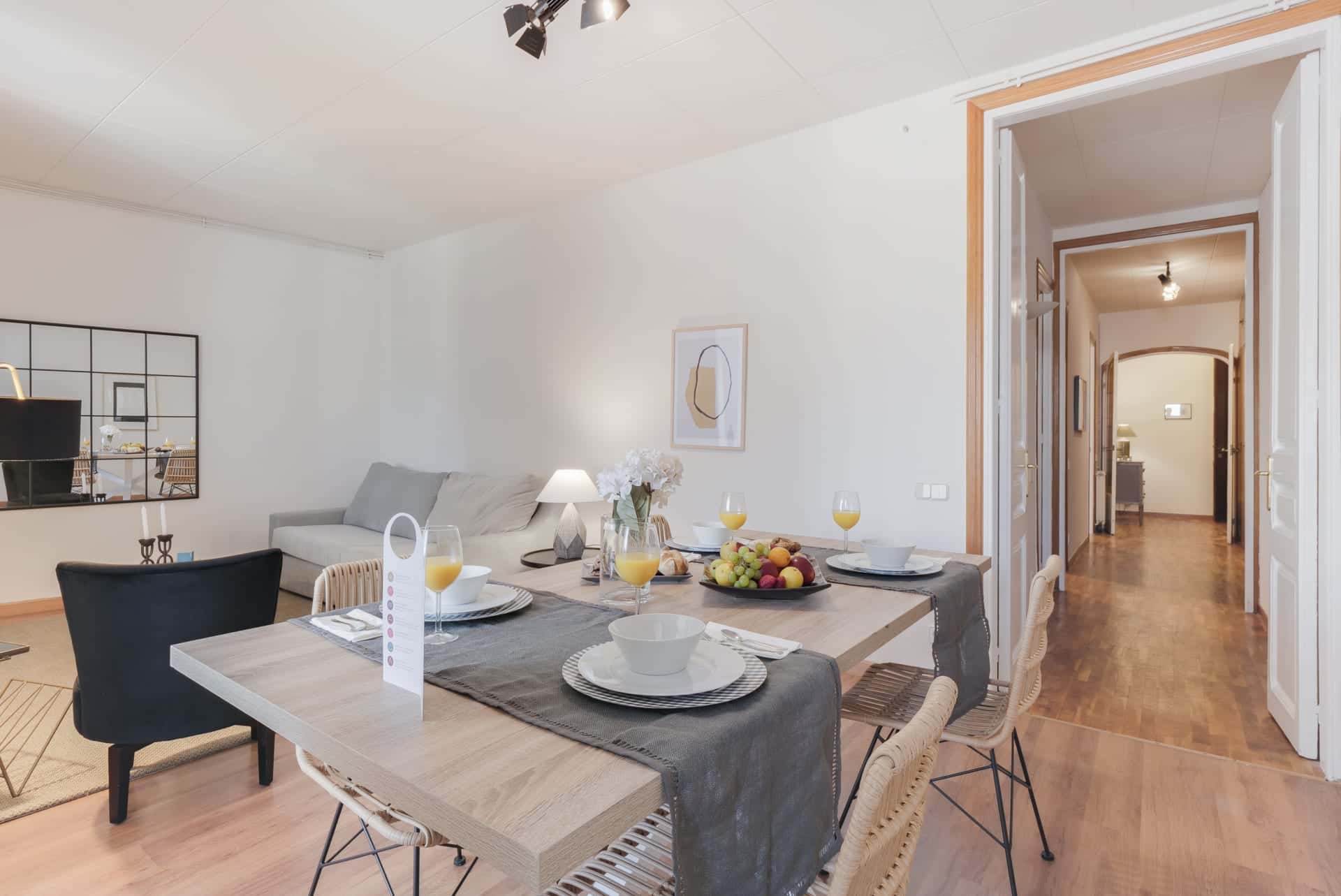 [EN] This lovely three-bedroom apartment is full of natural light. The comfortable furniture and the beautiful mixture of colours offer the place a welcoming and relaxing spirit. You will love cooking a Spanish meal in your kitchen or just trying one of the many restaurants in the neighbourhood. Located in the heart of the city, you will find many of the most beautiful landmarks only a few minutes from the apartment. Within walking distance are Las Arenas and Joan Miro Park. You will love the La Villarroel Theatre and the Eixample Theatre, both in the area. The Rocafort Metro Station is available to zip you all around the city. [ES] Ubicado en el vibrante distrito del Eixample, el apartamento de 3 habitaciones Rocafort Sweett es el lugar perfecto para experimentar la cultura local de Barcelona. A corta distancia a pie del Parc Joan Miro, el Eixample es una zona llena de artesanos locales, restaurantes de moda, pintorescas cafeterías y pubs. El metro te lleva por toda la ciudad, incluida la Sagrada Familia (15 minutos), donde encontrarás muchos de los museos, catedrales y galerías de arte más famosos de Barcelona. Es un agradable paseo hasta el Museo Marítimo (30 min), el Palacio Güell (30 min) y el acuario (30 min). La parada de metro de Rocafort está a 2 minutos a pie, y las paradas de autobús están a la vuelta de la esquina. Con grandes ventanales que ofrecen mucha luz natural y muebles de lujo cuidadosamente seleccionados por nuestros diseñadores de interiores locales, a los visitantes les encantará la gran mezcla de estilo y confort. Encontrará todo lo que necesita para preparar una excelente comida con ingredientes locales frescos en la cocina totalmente equipada y disfrutar de una excelente noche de descanso en camas de la más alta calidad. Las comodidades premium incluyen wifi gratis, televisión por cable, artículos de tocador de alta gama, camas de hotel y ropa de cama. Un apartamento de vacaciones de lujo ideal para familias o un gran grupo de amigos, este encantador espacio te hará sentir como en casa. [FR] Situé dans le quartier animé d'Eixample, l'appartement Rocafort 404 est le lieu idéal pour découvrir la culture locale de Barcelone. À deux pas du parc Joan Miro, Eixample est un quartier rempli de commerces locaux, de restaurants branchés, de cafés pittoresques et de pubs. Le métro vous mènera dans toute la ville, y compris à la Sagrada Familia (15 minutes), où vous trouverez de nombreux musées, cathédrales et galeries d'art parmi les plus célèbres de Barcelone. Vous pourrez effectuer une belle promenade au musée maritime (30 min), au palais Guell (30 min) et à l’aquarium (30 min). La station de métro Rocafort est à 2 minutes à pied et les arrêts de bus sont juste au coin de la rue. Avec de grandes fenêtres laissant entrer la lumière naturelle et un mobilier haut de gamme choisi avec soin par nos architectes d'intérieur, les visiteurs apprécieront le mélange de style et de confort. Vous trouverez tout ce dont vous avez besoin pour préparer un bon repas avec des ingrédients locaux frais dans la cuisine entièrement équipée et passer une bonne nuit de sommeil sur des lits de la plus haute qualité. Les équipements Premium incluent une connexion Wi-Fi gratuite, la télévision par câble, des articles de toilette haut de gamme, des lits et du linge de maison. Cet appartement de vacances haut de gamme, idéal pour les familles ou groupes d'amis, vous fera vous sentir comme chez vous.