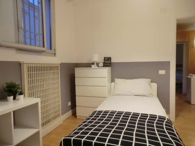 [ITA] Situato al pian terreno, luminoso e molto spazioso, ristrutturato ad ottobre 2020, 110 mq di superficie. È composto da cucina, zona pranzo, 4 bagni e 4 stanze singole. L'appartamento è ottimamente ristrutturato in funzione di tutto ciò che occorre ai nostri studenti. Dotato di WI-FI, lavatrice, cucina equipaggiata, 2 frigoriferi e forno a microonde. - Inquilini: la casa é composta da studenti o giovani lavoratori 20-28 anni. Si tende a mantenere un'occupazione divisa equamente tra inquilini di genere maschile e femminile. Zona Centro, posizione strategica e ambita, si affitta una bellissima stanza singola Stanza Semplice ristrutturata appositamente per offrire comfort e comodità ai nostri studenti. La stanza è dotata di bagno privato (doccia in camera più bagno privato esterno alla camera), letto singolo, armadio 3 ante, scrivania, cassettiera, tendaggi, specchio, scarpiera, libreria, mobiletto a giorno. I colori delle pareti favoriscono il buon umore e aiutano nello studio. Arredi: Letto singolo, Armadio a 3 ante, Libreria, Scrivania, Specchio, Sedia, Lampada da tavolo, Scarpiera, Cassettiera, [ENG] - Tenants: The house is composed of students or young workers 20-28 years old. There is a tendency to maintain an equal split between male and female tenants. Furniture: Single bed, Wardrobe with 3 doors, Bookcase, Writing desk, Mirror, Chair, Table lamp, Shoe rack, Drawers, [ITA] POLICY DI RECESSO: Nessun costo di disdetta fino a 45 giorni dalla data di check in, 170€ di costi per disdette richieste successivamente. - Residenza: É possibile prendere la residenza in questo appartamento. [ENG] CANCELLATION POLICY: No cancellation fee up to 45 days from the date of check in, 170€ costs for cancellations requested after that. -Residence: It is possible to take up residence in this apartment.