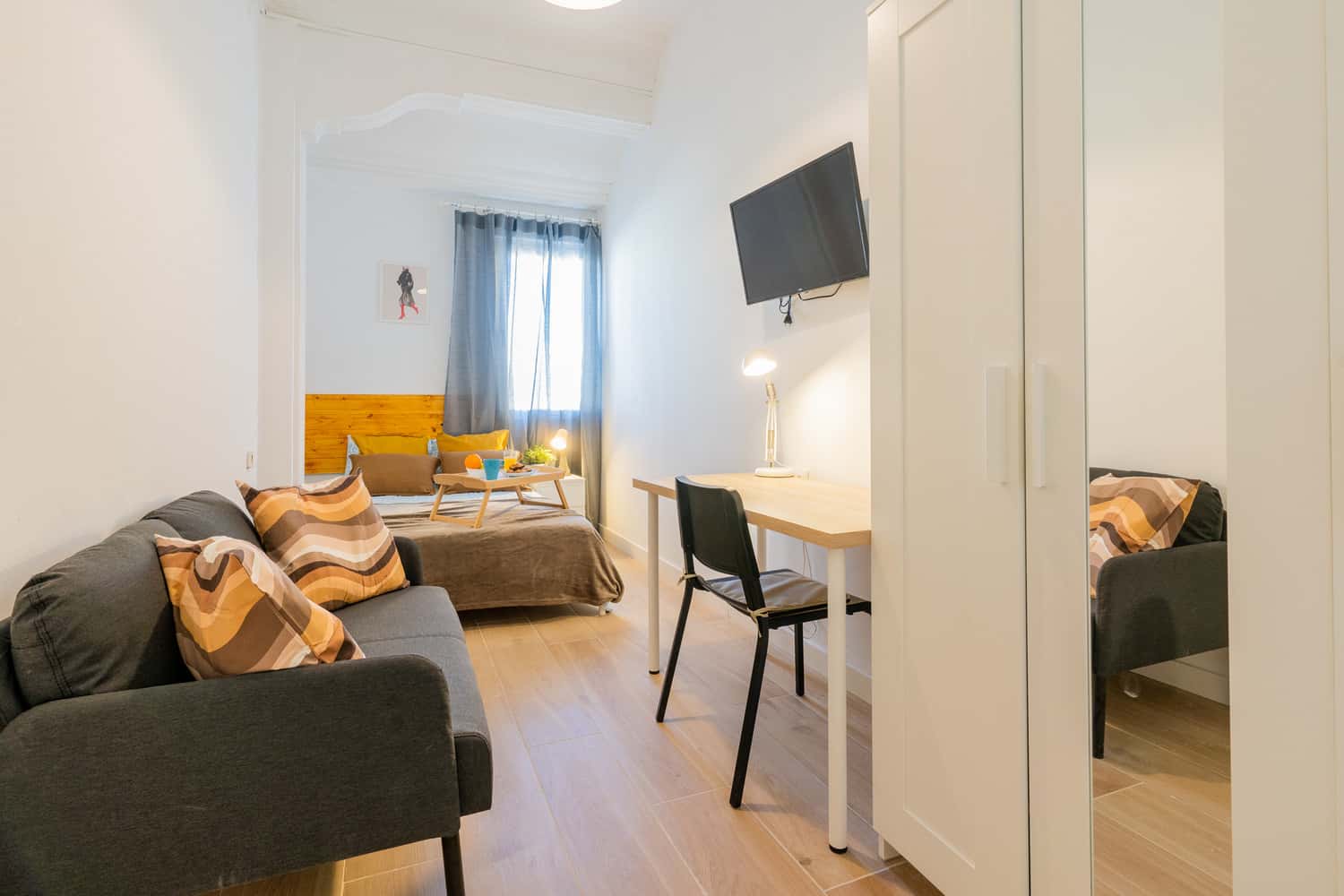 Room features: - Private room: The room has its own key - Bed: It is equipped with a double bed and 1 set of bed linen, pillow and duvet - Workspace: Study table and a comfortable chair ideal for long hours of work or study. - Living space: It has a sofa and a separate table for eating-dinner. - Storage: Wardrobe - Others: TV - Window: Interior to open space. Requisitos para alquilar: - Ocupación: Estar trabajando (con contrato de trabajo indefinido) o estudiando (con avalista). Documentación necesaria: Si tienes contrato laboral: - Documento de identidad - Contrato de trabajo indefinido en PDF con firma del trabajador - Últimas 3 nóminas - Vida laboral actualizada Si eres autónomo: - Última declaración de la renta - Último pago de autónomo - Vida laboral actualizada - Últimos 3 meses de estados de cuenta bancarios *Duración del alquiler: Mínimo 4 meses, máximo 11 meses (se puede hacer uno nuevo después). - Gastos: 60€ / mes extra por gastos comunes POR PERSONA. - Depósito: Un mes de fianza. - Tasa de salida: 50€ - Gastos administrativos: 50% de una mensualidad (pago único al entrar). EXTRAORDINARY PROPERTY IN CENTER VALENCIA Location: Just 3 minutes from Metro station Ángel Guimera and 5 minutes from Plaza de España. Excellent connection with public transport: metro and buses within walking distance. Central neighborhood with all services: Supermarkets, Mercadona and Consum less than 300m away, restaurants, cafes, banks, gyms, public swimming pool less than 3 minutes walk, Next to the historic "finca Roja" and Plaza Doctor Segrelles. Highlighted features of the apartment: - Cleaning: Cleaning of common areas included twice a month. - Maintenance: We take care of the apartment maintenance. - Connectivity: High-speed internet. - Fully equipped: The apartment is fully furnished and equipped, including a kitchen with all necessary appliances and utensils. - Neighborhood: Located in a quiet and safe neighborhood in the city center, surrounded by services such as supermarkets, banks, shops and restaurants. - Common areas: The apartment has spacious common areas, perfect for relaxing and socializing. - Elevator: There is an elevator in the building *CHECK IN TIMES: Monday to Friday , 9:00h till 21h (weekends checkings are not possible)* RENTAL REQUIEREMENTS: - Occupancy: Be working (with an indefinite employment contract/self-employed) or studying (with a guarantor). - Necessary documentation: * If you have an employment contract: - Identity document - Indefinite employment contract in PDF with the worker's signature - Last 3 payslips - Updated employment record *If you are self-employed: - Last income tax return - Last self-employed payment - Updated employment record - Last 3 months of bank statements - Rental duration: Minimum 4 months, maximum 11 months (a new one can be made afterwards). - Expenses: €60/month extra for common expenses per person. - Deposit: One month's rent. - Administrative expenses: 40% of one month's rent (single payment upon entry)."