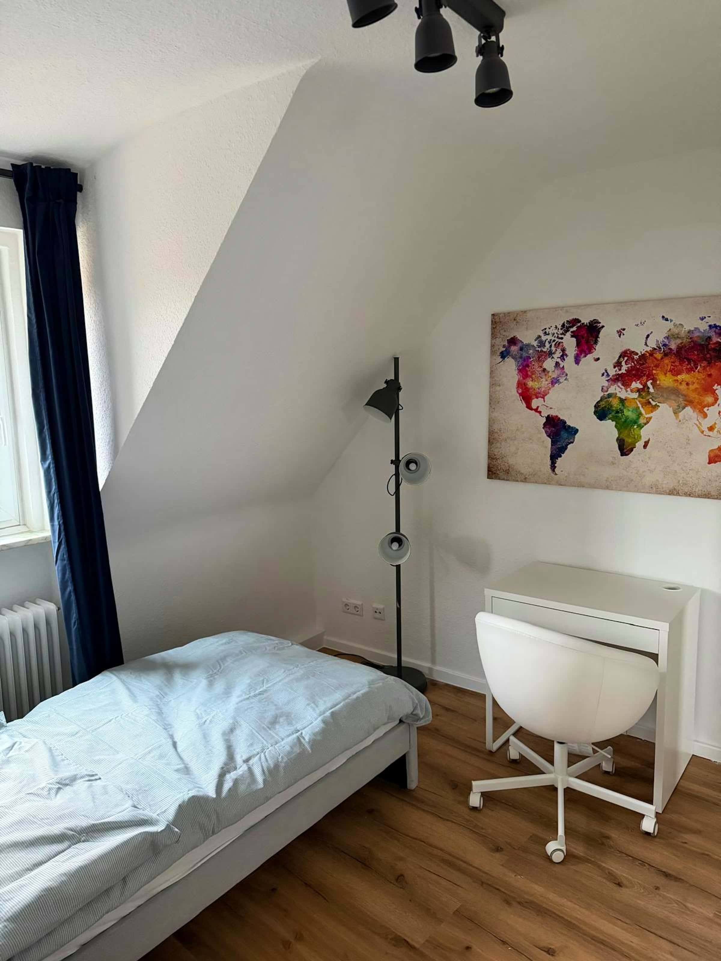 Quarto individual mobiliado em apartamento compartilhado, disponível a partir do dia 2026-01-01. O quarto tem uma área de 15 metros quadrados. Os seguintes serviços estão incluídos no quarto: Escritório, Armário, Casa de banho partilhada. O apartamento tem uma área total de 100 metros quadrados. Há 4 quarto(s). Pode acomodar até 4 inquilinos. Os seguintes serviços estão disponíveis em casa: WiFi, Maquina de lavar roupas, Cozinha, Aquecimento central. Os serviços e o condomínio são incluídos no valor do aluguel. É necessário um período mínimo de permanência de 1 mês/meses. É possível reservar diretamente online.