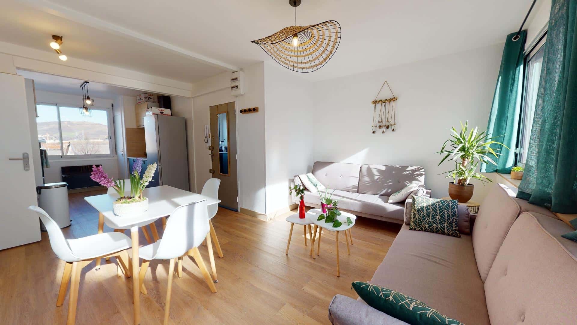 Oqoro vous présente cette colocation de 81 m² au 43 Rue Guynemer à Clermont-Ferrand.🏠LE LOGEMENT Belle colocation meublée à Clermont-Ferrand. D’une superficie de 81 m² pour 4 chambres, le T5 est situé au 2e étage de l'immeuble au 43 rue Guynemer, dans le quartier de La Pradelle.🛏️LA CHAMBRELa chambre 2, située au fond à gauche, propose un ameublement complet avec lit double, grand placard, espace bureau et même un lavabo. Elle est lumineuse et bien agencée (on aime notamment la petite corniche qui court le long du mur, au-dessus du bureau).🛋️ESPACES COMMUNSCuisine totalement équipéePièce principale possédant deux canapés, tables basses et grande table à manger2 salles de bain moderne avec douche2 WC (dont un indépendant)🏙️CADRE DE VIEIdéalement situé dans le quartier de La Pradelle, cet appartement se trouve à proximité de la Gare de Clermont-Ferrand ainsi que de plusieurs commerces.TRANSPORT🚊Tram B (arrêts Deux patriotes ou Gare SNCF) 🚌 Nombreuses lignes de bus à 5 min à pieds💡SERVICES ET ÉQUIPEMENTS INCLUSChauffageEau chaudeEau couranteÉlectricitéEntretien de l’immeubleInternet (ADSL)Taxe Ordures Ménagères————————————————————————Bail individuel à la chambre. Pas de caution solidaire. Chacun est libre de partir quand il veut sans se soucier des autres colocs, dès le moment où il respecte un mois de préavis. Eligible aux APL.Les informations sur les risques auxquels ce bien est exposé sont disponibles sur le site Géorisques : www.georisques.gouv.frMontant estimé des dépenses annuelles d'énergie pour un usage standard : 1331 € par an.Prix moyens des énergies indexés sur l'année 2021,2022,2023 (abonnements compris)