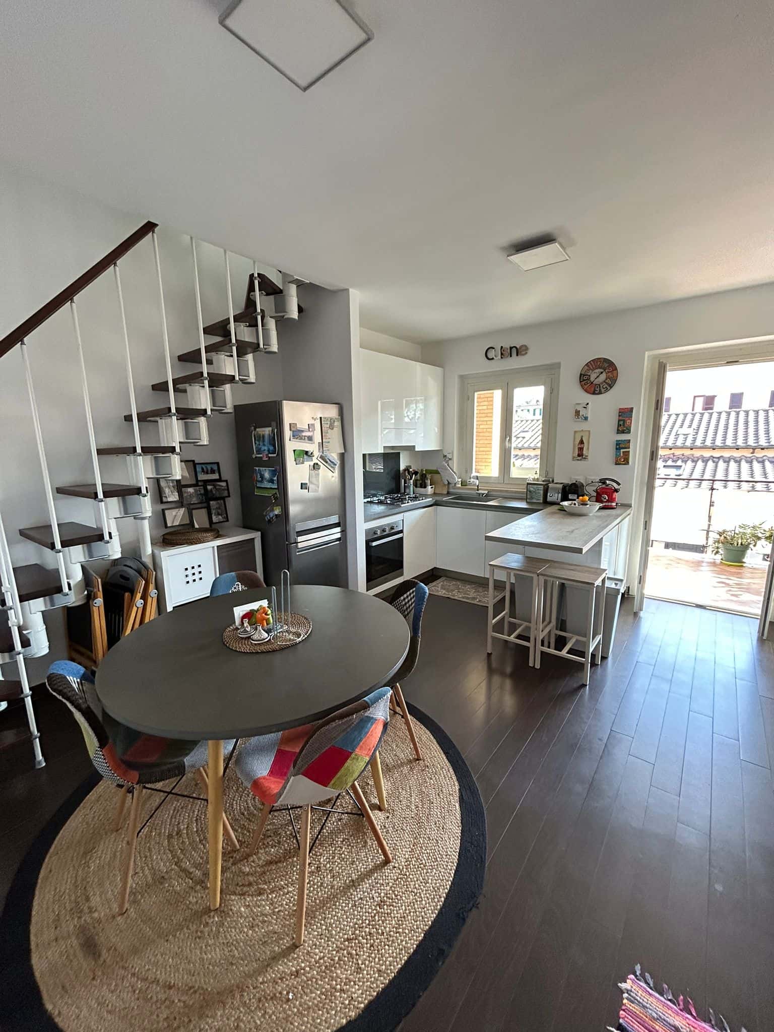 ITA In contesto tranquillo e ben collegato, si propone in affitto un luminoso trilocale di circa 80mq, disposto su due livelli, completo di posto auto interno, situato in Via Cariati, nella zona Piazza Mileto/Statuario a Roma. Al primo livello troviamo: ⁃ Ampio salone luminoso, elegantemente arredato e dotato di aria condizionata; ⁃ Angolo cottura completamente attrezzato, dotato di piano cottura, forno, frigorifero, congelatore, lavastoviglie ed utensili da cucina completi; ⁃ Bagno di servizio, all’interno del quale è collocata la lavatrice; ⁃ Terrazzo abitabile, completo di un tavolo e delle sedie, ideale per momenti di relax; ⁃ Ballatoio di ingresso con due grandi armadi/ripostiglio. Al piano superiore mansardato troviamo: ⁃ Due camere da letto, entrambe fornite di aria condizionata ed ampio spazio per riporre i vestiti. Una delle due camere da letto presenta anche una scrivania, utile per studiare o lavorare da casa; ⁃ Secondo bagno completo di doccia. L’appartamento è inoltre fornito di un posto auto privato, posizionato all’interno del condominio, riservato all’affittuario. L’appartamento gode di un’ottima posizione: ⁃ 400 metri dalla fermata bus linea 887; ⁃ 20 minuti a piedi dalla stazione FS Roma-Capannelle, da cui si raggiunge Roma Termini in circa 15 minuti; ⁃ Aeroporto di Ciampino a soli 10 minuti di macchina. Soluzione ideale per professionisti e studenti, con una locazione minima di 3 mesi e di massimo 18 mesi. ENG In a quiet and well-connected area, a bright three-room apartment of approximately 80 sqm is available for rent. The property is arranged over two levels and includes a private parking space within the condominium. It is located in Via Cariati, in the Piazza Mileto / Statuario area of Rome. On the first level: - Spacious and bright living room, elegantly furnished and equipped with air conditioning; - Fully equipped kitchenette with iinduction cooktop, oven, refrigerator, freezer, dishwasher, and complete kitchen utensils; - Guest bathroom with washing machine; - Furnished, livable terrace with table and chairs, ideal for relaxing moments; - Outdoor covered entrance space with two large wardrobes/storage units. On the upper attic floor: - Two bedrooms, both equipped with air conditioning and ample storage space. One of the bedrooms also features a desk, ideal for studying or working from home; - Second bathroom with shower. The apartment also includes a private parking space, located inside the condominium and reserved for the tenant. The property benefits from an excellent location: - 400 meters from bus stop (line 887); - 20 minutes on foot from Roma-Capannelle railway station, from which Roma Termini can be reached in approximately 15 minutes; - Ciampino Airport is only a 10-minute drive away. An ideal solution for professionals and students, with a minimum rental period of 3 months and a maximum of 18 months.