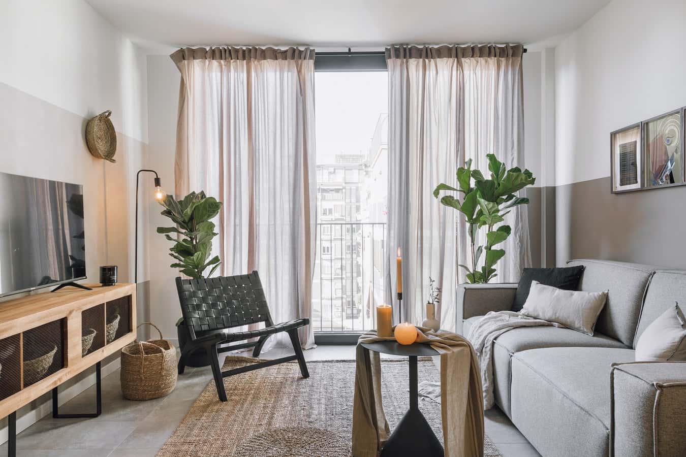 Atalaya combines rustic materials with modern finishing to create a stupendous grassland design in this 2 bedroom 58 square meters unique property. Resting in the heart of Esquerra de Eixample, Atalaya encapsulates Barcelona. Stroll down the many promenades speckling the neighborhood or try some of the local flavors. Drawing on traditional charm while staying captivatingly contemporary, Atalaya is the place to come home to. This 2 bedroom, 1 bathroom unique property blends traditional with modern, typical Catalan decor. The first bedroom has a queen size bed and plenty of light from the door that opens to a small French balcony. The second bedroom has a single bed and abstract wall art to tie the space together. The bathroom is chic and functional in design. For all remote working needs, there is a dedicated workstation in an office, providing both beauty and utility. The open plan living room and kitchen keep the grassland theme alive through its plants, wooden furniture pieces, and woven grass designs. There is a full entertainment system in the living room and red tiles scatter across the wall. The dining table for three provides the perfect place for enjoying a home cooked meal. The kitchen is fully kitted out and decorated stylishly. In the warmer months, Atalaya has air conditioning throughout the apartment for maximum comfort. Fully furnished, this home comes with everything you need, including bedding and linens. This apartment comes equipped with ducted air system for absolute comfort. *We welcome pets, fees are subject to apply. Guests will be informed of any additional charges in the final contract. *We cannot be held liable for any noises (construction, or street noise) done outside the apartment. We also cannot be liable for any rooms without air conditioning (all the rooms with air conditioner will be explicitly explained in our description). We will not accept any reservation cancellations or refund requests related to these two issues. *Our in-house design team expertly selects all apartment furniture and decor to ensure the highest level of quality and comfort. As part of consistent home upkeep, design improvements, and photo staging, there may be minor differences in furnishings seen in the photos and what you find in the apartment. Inquire with a sales agent for any questions or doubts. *This accommodation may only be used for stays longer than 31 nights for personal purposes such as holiday, recreational, or leisure. The information provided may be submitted to the relevant registry and/or administrative authority in accordance with Catalan regulations.