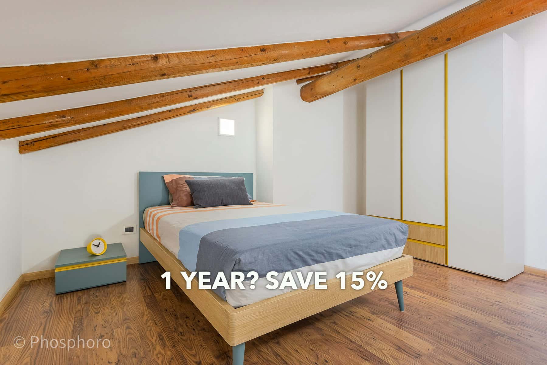 [ITA] Nella nostra azienda amiamo i soggiorni a lungo termine! Usufruite di sconti significativi se soggiornate con noi per 12 mesi. Se dovete soggiornare per meno di 12 mesi ma trovate qualcuno che vi sostituisca per il periodo rimanente, entrambi beneficerete dei nostri sconti sostanziali. Richiedete un preventivo oggi stesso e iniziate a risparmiare! Accogliente camera dai colori vivaci con caratteristico soffitto con travi a vista. La stanza si trova in un'unità di soli 3 inquilini e unisce la tranquillità di un appartamento per 3 alla vivacità di vivere a pochi minuti dal centro città. Allestita pensando alle esigenze di chi deve trascorre parecchie ore a studiare ha una spaziosa scrivania con una bella lampada, una sedia per leggere comodi, uno scaffale libreria e un capiente armadio a tre ante con cassettiera. Il letto ad una piazza e mezza con materasso ortopedico inoltre ti garantisce il massimo riposo. Questo appartamento, situato in una storica palazzina nel cuore del quartiere San Martino, offre tre ampie camere singole, due bagni e una luminosa cucina-soggiorno perfetta per la condivisione tra tre studenti. Affacciato su una tranquilla corte interna, l'appartamento si sviluppa su due piani, garantendo un ambiente accogliente e funzionale, ideale per una convivenza confortevole e serena. [ENG] At our company, we love long-term stays! Enjoy significant discounts when you stay with us for 12 months. If you need to stay for less than 12 months but find someone to take over for the remaining period, both of you will benefit from our substantial discounts. Ask for a quote today and start saving! Cozy brightly colored room with characteristic beamed ceiling. The room is located in a unit with only 3 tenants and combines the tranquility of an apartment for 3 with the liveliness of living just a few minutes from the city centre. Set up with the needs of those who have to spend many hours studying in mind, it has a spacious desk with a beautiful lamp, a chair for comfortable reading, a bookcase and a large three-door wardrobe with chest of drawers. The queen-size bed with orthopedic mattress also guarantees you maximum rest. This apartment, located in a historic building in the heart of the San Martino neighborhood, offers three large single bedrooms, two bathrooms and a bright kitchen-living room perfect for sharing between three students. Overlooking a quiet internal courtyard, the apartment is spread over two floors, ensuring a welcoming and functional environment, ideal for comfortable and peaceful coexistence.