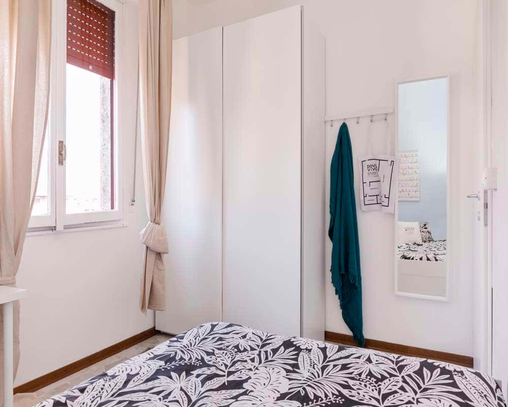 Inquilini all'interno della struttura / Tenants inside the building: 1) Female, Student, 25 2) Female, Student, 20 4) Male, Worker, 30 EN Single room in a shared apartment, composed by 4 bedrooms and 1 bathroom. Of about 11 sqm with a one and a half bed and a work station. With wifi, concierge services, dishwasher, washing machine. Energy class: G, IPE 215.76 Kwh/Sqm year. IT Stanza singola in un appartamento condiviso, composto da 4 camere e 1 bagno. Stanza di circa 11 mq con un letto a una piazza e mezza e una scrivania. Con wifi, servizio portineria, lavastoviglie, lavatrice. Classe energetica: G, IPE 215.76 Kwh/mq anno. ES Habitación individual en un piso compartido, compuesto por 4 habitaciones y 1 baño. De unos 11 m2 con una cama y media y un puesto de trabajo. Con wi-fi, servicios de conserjería, lavavajillas, lavadora. Clase energética: G, IPE 215.76 Kwh/m2 año. FR Chambre individuelle dans un appartement partagé, composé de 4 chambres et 1 salle de bain. D'une superficie d'environ 11 avec un lit et demi et un poste de travail.. Avec wifi, services de conciergerie, lave-vaisselle, machine à laver. Classe d'énergie : G, IPE 215.76 Kwh/Sqm année. [ITA]: Non sarà possibile effettuare il check-in di Sabato, Domenica e festivi Sarà necessario un preavviso di 48 ore dalla ricezione del contratto per prenotare il check-in [ENG]: It will not be possible to check in on Saturdays, Sundays and holidays A 48-hour notice from receipt of contract will be required to book check-in [ITA]: - NON E' POSSIBILE EFFETTUARE VISITE. - La biancheria non è inclusa nella camera. - Inquilini: la casa é composta da studenti o giovani lavoratori 20-28 anni. Si tende a mantenere un'occupazione divisa equamente tra inquilini di genere maschile e femminile. - Accetta: Qualsiasi genere - La permanenza minima contrattuale corrisponderà al periodo di prenotazione su Roomless. Qualora si desiderasse uscire prima del check-out selezionato in fase di prenotazione, si potrà esercitare l'opzione di uscita anticipata versando 1,5 mensilità. Nel caso in cui si volesse fare subentrare un inquilino (sia che lo trovi il proprietario sia che lo trovi l'inquilino attuale) si potrà uscire dall'appartamento pagando una spesa di servizio pari a 200€.In questo caso il contratto si chiuderà il giorno precedente all'ingresso del sostituto. Sarà comunque dovuta anche la spesa per la chiusura del contratto pari a 225€.. In ogni caso, 3 mesi rispetto alla data di check-out, va comunicata la disdetta regolare per interrompere il contratto alla data stabilita; se non avverrà tale comunicazione, il contratto rimarrà attivo. - L'appuntamento per l'ingresso in casa dovrà essere prenotato con almeno 3 giorni lavorativi di preavviso rispetto la data d'ingresso di tuo interesse. [ENG]: - VIEWING IS NOT POSSIBLE. - Bed linen is not included in the room. - Tenants: The house is composed of students or young workers 20-28 years old. There is a tendency to maintain an equal split between male and female tenants. - Accepted: Any gender - The minimum contractual stay will correspond to the booking period on Roomless. If you wish to leave before the check-out date selected at the time of booking, you may exercise the option of early departure by paying 1.5 month's rent. In the event that you wish to have a tenant take over (whether the owner or the current tenant finds him/her), you may leave the flat by paying a service charge of €200. In this case the contract will end the day before the replacement tenant moves in. A closing charge of €225 will also be due.. In any case, 3 months before the check-out date, the regular cancellation must be communicated in order to terminate the contract on the established date; if no such communication is made, the contract will remain active. .- Check-in will be guaranteed at least 48 hours after your first contact with the property.