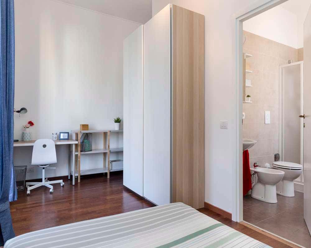 Inquilini all'interno della struttura / Tenants inside the building: 1) Female, Student, 19 2) Male, Student, 20 3) Male, Student, 21 4) Female, Worker, 26 5) Male, Student, 33 6) Female, Student, 21 8) Male, Student, 23 EN Single room in a shared apartment, composed by 8 bedrooms and 3 bathrooms. Of about 18 sqm with a one and a half bed and a work station, A private bathroom complete the opportunity. With wifi, dishwasher, washing machine. Energy class: E, IPE 125.21 Kwh/Sqm year. IT Stanza singola in un appartamento condiviso, composto da 8 camere e 3 bagni. Stanza di circa 18 mq con un letto a una piazza e mezza e una scrivania, un bagno privato completa l'opportunità. Con wifi, lavastoviglie, lavatrice. Classe energetica: E, IPE 125.21 Kwh/mq anno. ES Habitación individual en un piso compartido, compuesto por 8 habitaciones y 3 baños. De unos 18 m2 con una cama y media y un puesto de trabajo, Un baño privado completa la oportunidad. Con wi-fi, lavavajillas, lavadora. Clase energética: E, IPE 125.21 Kwh/m2 año. FR Chambre individuelle dans un appartement partagé, composé de 8 chambres et 3 salles de bain. D'une superficie d'environ 18 avec un lit et demi et un poste de travail., Une salle de bain privée compléter l'opportunité. Avec wifi, lave-vaisselle, machine à laver. Classe d'énergie : E, IPE 125.21 Kwh/Sqm année. [ITA]: Non sarà possibile effettuare il check-in di Sabato, Domenica e festivi Sarà necessario un preavviso di 48 ore dalla ricezione del contratto per prenotare il check-in [ENG]: It will not be possible to check in on Saturdays, Sundays and holidays A 48-hour notice from receipt of contract will be required to book check-in [ITA]: - NON E' POSSIBILE EFFETTUARE VISITE. - La biancheria non è inclusa nella camera. - Inquilini: la casa é composta da studenti o giovani lavoratori 20-28 anni. Si tende a mantenere un'occupazione divisa equamente tra inquilini di genere maschile e femminile. - Accetta: Qualsiasi genere - La permanenza minima contrattuale corrisponderà al periodo di prenotazione su Roomless. Qualora si desiderasse uscire prima del check-out selezionato in fase di prenotazione, si potrà esercitare l'opzione di uscita anticipata versando 1,5 mensilità. Nel caso in cui si volesse fare subentrare un inquilino (sia che lo trovi il proprietario sia che lo trovi l'inquilino attuale) si potrà uscire dall'appartamento pagando una spesa di servizio pari a 200€.In questo caso il contratto si chiuderà il giorno precedente all'ingresso del sostituto. Sarà comunque dovuta anche la spesa per la chiusura del contratto pari a 225€.. In ogni caso, 3 mesi rispetto alla data di check-out, va comunicata la disdetta regolare per interrompere il contratto alla data stabilita; se non avverrà tale comunicazione, il contratto rimarrà attivo. - L'appuntamento per l'ingresso in casa dovrà essere prenotato con almeno 3 giorni lavorativi di preavviso rispetto la data d'ingresso di tuo interesse. [ENG]: - VIEWING IS NOT POSSIBLE. - Bed linen is not included in the room. - Tenants: The house is composed of students or young workers 20-28 years old. There is a tendency to maintain an equal split between male and female tenants. - Accepted: Any gender - The minimum contractual stay will correspond to the booking period on Roomless. If you wish to leave before the check-out date selected at the time of booking, you may exercise the option of early departure by paying 1.5 month's rent. In the event that you wish to have a tenant take over (whether the owner or the current tenant finds him/her), you may leave the flat by paying a service charge of €200. In this case the contract will end the day before the replacement tenant moves in. A closing charge of €225 will also be due.. In any case, 3 months before the check-out date, the regular cancellation must be communicated in order to terminate the contract on the established date; if no such communication is made, the contract will remain active. .- Check-in will be guaranteed at least 48 hours after your first contact with the property.