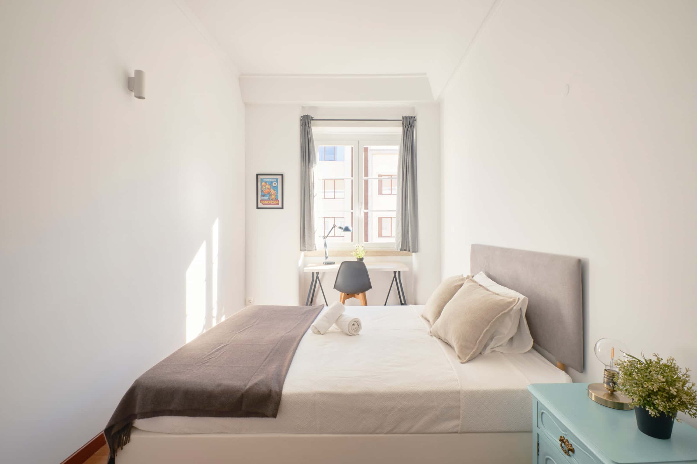 Recently renovated 8-bedroom apartment with 2 full bathrooms, including a suite. The apartment is located at Rua Filipe Folque, near the Picoas and Parque metro stations (one of the most premium neighborhoods in Lisbon). The kitchen is fully equipped (dishwasher, washing machine, stove, kettle, microwave and oven). IMPORTANT NOTES: 1. RESPONSIBILITY: In shared apartments, certain rules naturally apply to all tenants, regardless of whether they have a private bathroom. These rules are intended to ensure the proper functioning, maintenance and hygiene of the common areas and they apply to everyone without exception, especially when it is not possible to assign responsibility for damages/misuse to a specific tenant. Such measures are standard in shared living environments, helping to ensure that all tenants can enjoy a clean, safe and well-maintained apartment. 2. BILLS: Not included. They are €45 per person per month (€35 for water, electricity, gas, internet and €10 for the cleaning of shared spaces). You do not have to pay anything more if €45 per person is enough to cover all the bills, which is usually sufficient. 3. DEPOSIT: Equal to the value of one month’s rent. 4. AMOUNTS NECESSARY FOR RESERVATION: First month’s rent. 5. AMOUNTS NECESSARY UNTIL THE STARTING DATE: Deposit + last month’s rent (with bills) + missing bills from the first month’s rent. 6. OTHER RENTS: Must be paid by the last day of the previous month to which each one refers. 7. ADJUSTMENTS: Although the contract is fortnightly, whenever the first or last rent is for half of the month, it must be paid in full. The appropriate adjustments will be made to the rent for the following month and the rent for the previous month, respectively. 8. BED LINEN AND TOWELS: We only provide a mattress cover, a pillow, a pillow cover and a duvet (only one pillow per person). 9. FINAL CLEANING FEE: A fee of €50 for single rooms without WC or €60 for shared rooms or rooms with WC will be deducted from the Deposit at the end of the stay for the complete cleaning of the room and the provided linen. 10. GUESTS: Each tenant can receive in the room only 1 guest for a maximum period of 3 nights during the entire stay. 11. PHOTOS: Bedspreads, computers, decorative pillows, tote bags, clothing items, etc., are purely for illustrative/decorative purposes during photo sessions and will not be provided to any tenant. 12. CHECK-IN: Available between 3:00 PM and 10:00 PM (a €25 fee applies for check-ins after 10:00 PM). 13. CHECK-OUT: Must be completed by 11:00 AM. At departure, please leave the keys on the desk in your room. 14. KEYS: Only one set of keys will be provided. Tenants are responsible for the safe use of the keys during their stay. Avoid leaving keys in the lock or mailbox. In case of lost keys, damage to keys/locks or the need for technical assistance to access the property, tenants will be responsible for any related costs. 15. SMOKING: Strictly prohibited in all areas of the apartment, including bedrooms, shared spaces and any balconies. 16. TENANT'S PROFILE: Usually students and young professionals (or occasionally other profiles) aged between 20 and 30 years old. By confirming your reservation, you agree to these terms. For any questions, please don’t hesitate to contact us or the platform.