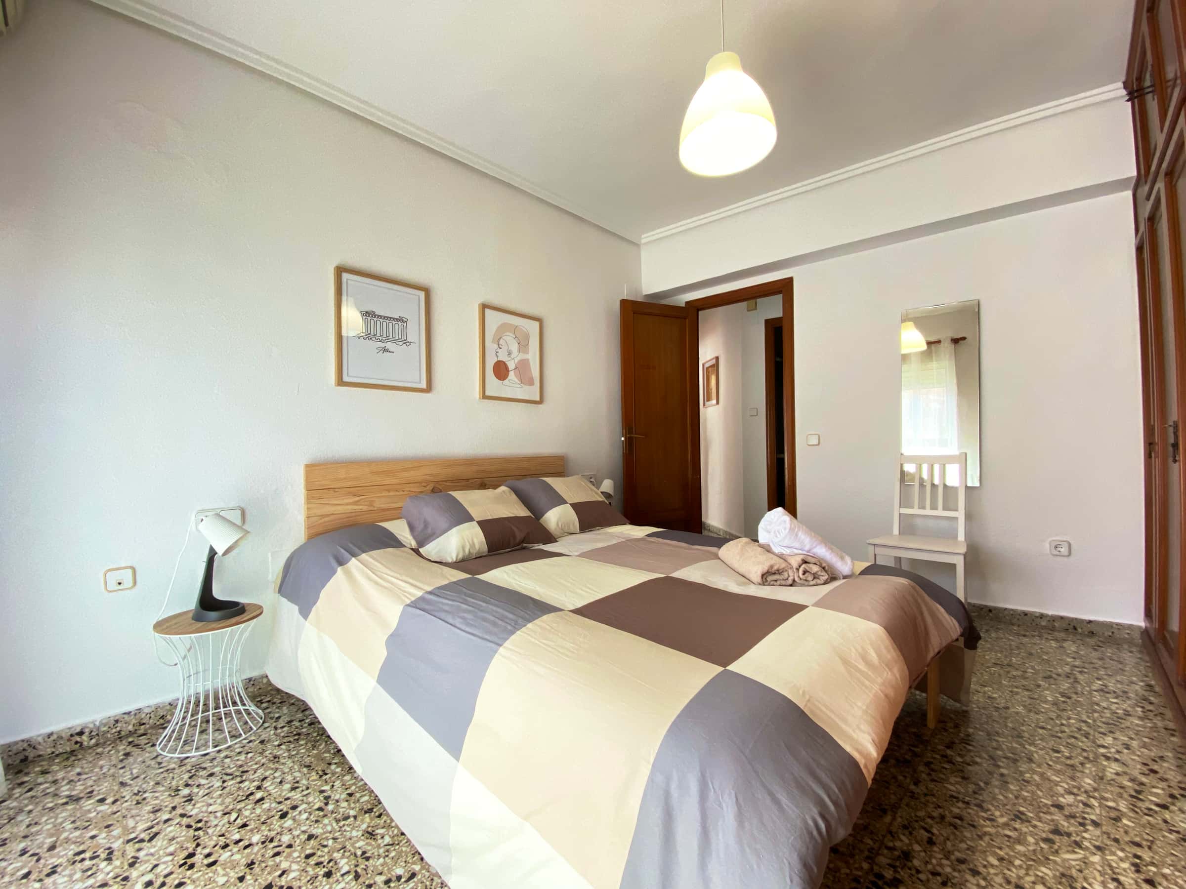 Apartamento con capacidad para 4 personas, en el barrio de La Roqueta, junto a Plaza España. A 5 minutos de la estación del Norte (estación de trenes) y 10 minutos de la plaza del Ayuntamiento. Cuenta con 3 habitaciones, Salón, Cocina equipada, baño completo, un aseo y balcón. Wifi de alta velocidad apto para teletrabajar, mesa de trabajo y aire acondicionado. Salón Comedor equipado con un sofá 3 plazas, mesa de comedor, Smart TV, Wifi apto teletrabajar, aire acondicionado centralizado caliente/frio y radiadores eléctricos individuales. Tiene una habitación con cama de matrimonio 135 cm y amplio armario, las otras dos habitaciones son individuales con armario y espacio de trabajo. Cuarto de baño completo (ducha, lavabo, WC y bidet) y un aseo. Cocina equipada con microondas, horno, vitrocerámica, nevera, lavadora/secadora, utensilios de cocina, tostadora y cafetera. Todas las habitaciones y el comedor disponen de aire acondicionado. Sexto piso con ascensor. Zona familiar, con supermercados, restaurantes y cafeterías cercanas. Contrato de alquiler, que incluye: no de días de la estancia, no de reserva, identificación de los huéspedes (Real Decreto 933/2021), suministros incluidos hasta un límite de 150 euros/mensuales (luz, agua e internet) normas básicas de la vivienda e inventario de enseres que estarán a disposición de los huéspedes.
