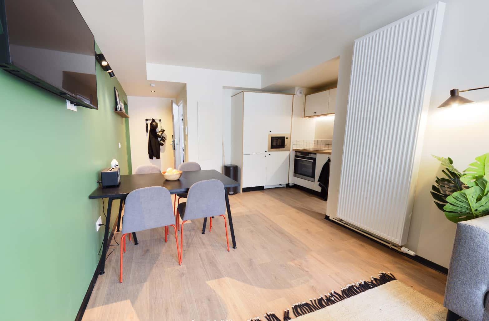 [FR] Logement éligible aux APL Literie incluse: couette Possibilité de prolonger le séjour Possibilité d'élire residence ou domicile Parking payant AUTRES SERVICES INCLUS: Salle de sport, espace co-working, rooftop TERMES ET CONDITIONS PRE CHECK-IN Contrat de 1 à 6 mois 1. Annulation effectuée 16 jours ou plus avant la date d'arrivée: remboursement à 100% du premier mois. 2. Annulation effectuée entre le 15e et le 8e jour avant la date d'arrivée:' remboursement de 50% du premier mois. 3. Annulation effectuée entre le 7e jour ou moins avant la date d'arrivée: aucun remboursement est prévu. Contrat 6 mois+ 1. Annulation effectuée 31 jours ou plus avant la date d'arrivée: remboursement à 100% du premier mois. 2. Annulation effectuée entre le 30e et le 16e jour avant la date d'arrivée:' remboursement de 50% du premier mois. 3. Annulation effectuée entre le 15e jour ou moins avant la date d'arrivée: aucun remboursement est prévu. Les frais de réservation ne sont en aucun cas remboursés. APRÈS LE CHECK-IN Le séjour minimum contractuel correspondra à la période de réservation sur Roomless. Délai de restitution du dépôt: 2 mois maximum (en cas de dégradation) [EN] Accommodation eligible for APL Bedding included: duvet and pillow Possibility to extend the stay Possibility to elect residence or domicile No pets allowed Paid parking OTHER SERVICES INCLUDED: gym, co-working space, rooftop TERMS AND CONDITIONS PRE CHECK-IN 1 to 6 months contract 1. Cancellation 16 days or more before arrival date: 100% refund of the first month. 2. Cancellation made between the 15th and the 8th day before the arrival date:' 50% refund of the first month. 3. Cancellation made between the 7th day or less before the date of arrival: no refund is provided. 6 months+ contract 1. Cancellation made 31 days or more before arrival date: 100% refund of the first month. 2. Cancellation between the 30th and 16th day before the arrival date: 50% refund of the first month. 3. Cancellation made between the 15th day or less before the arrival date: no refund is provided. The reservation fee is not refunded under any circumstances. AFTER CHECK-IN The minimum contractual stay will correspond to the reservation period on Roomless. Time limit for the return of the deposit: 2 months maximum (in case of damage)