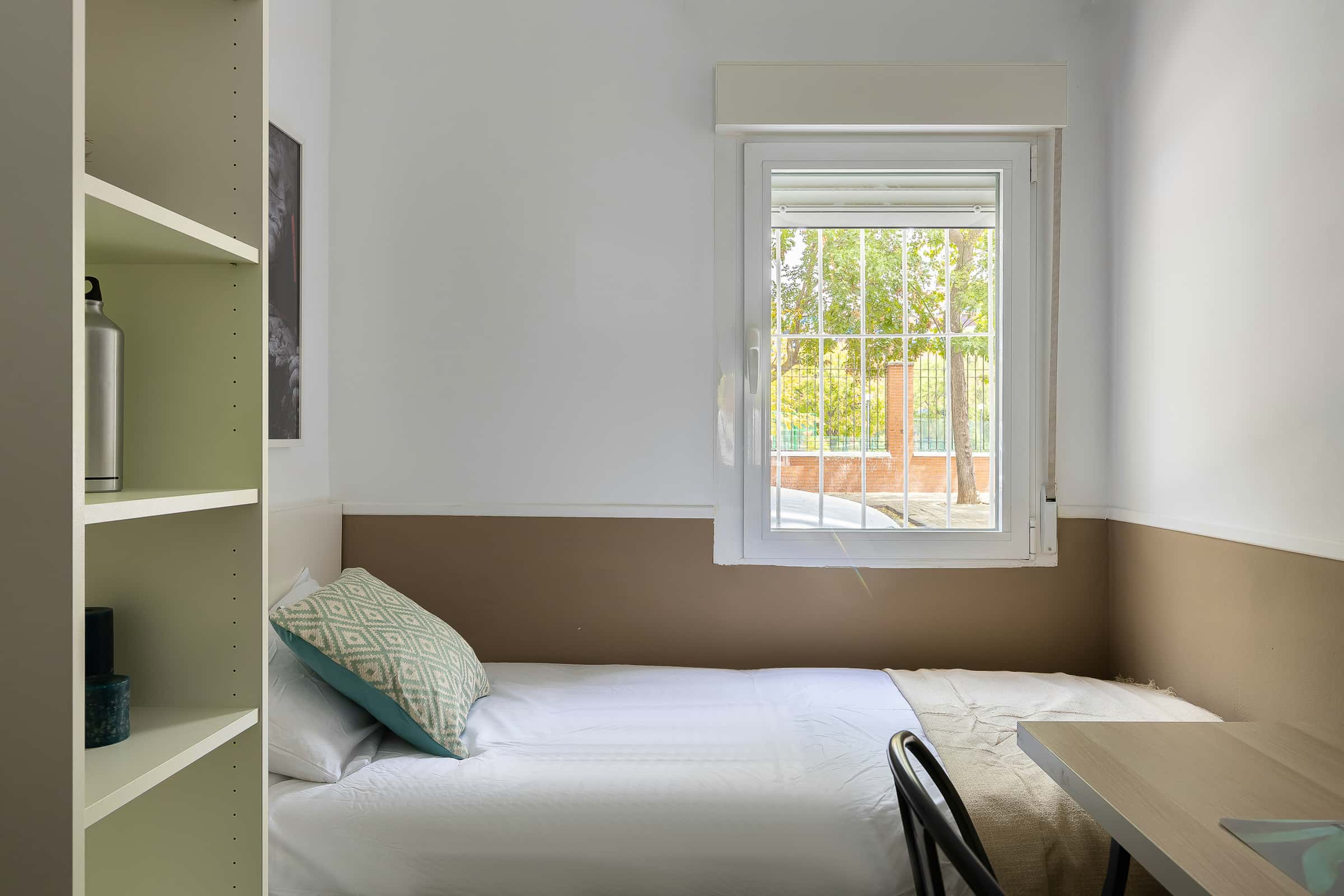 💢💢💢 🔸The usual booking period is from September to December and from January to May. For shorter stays, please contact us. 🔸The monthly rent varies depending on the length of the stay. This type has everything you need to make your experience 100% authentic. Isn't it all about feeling at home? That's right. Desk, single bed, storage space, modern decoration (the Rosalía poster is up to you) plus enough space to do your uni work. In short, if you are a modern hermit and need a place to study and sleep, this room is the perfect place for you! Monthly cleaning included. 🔸Bills included up to 50€ 💢💢💢 BD.H02