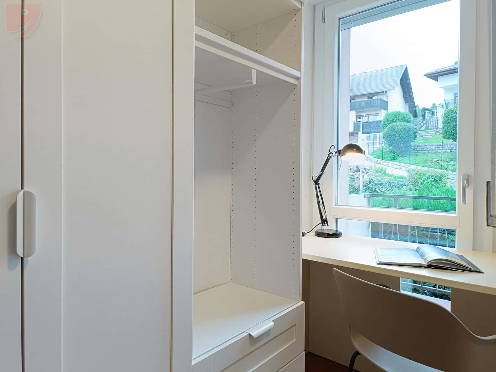 [ITA] Graziosa stanza singola con balcone arredata con una scrivania ideale per studiare comodi, un letto con materasso ortopedico per garantirti un sonno ristoratore, luci calde per non affaticare la vista ed arredi dal design minimal che creano un dialogo equilibrato tra stile e comfort abitativo A San Vito di Cognola, tranquillo e verdeggiante sobborgo di Trento a pochi passi dalla facoltà di Ingegneria di Povo affittiamo un appartamento di 90 mq composto da 4 stanze singole con balcone, una cucina multiaccessoriata con forno, fuochi, frigo, freezer, lavastoviglie, balcone e tavolo con 4 sedie ed un bagno finestrato con vasca e lavasciuga. L‘alloggio tranquillo, offre ampia disponibilità di parcheggio. [ENG] Nice single room with balcony furnished with a desk ideal for comfortable study, a bed with orthopedic mattress to guarantee you a restful sleep, warm lights so as not to tire your eyes and minimal design furnishings that create a balanced dialogue between style and living comfort In San Vito di Cognola, a quiet and green suburb of Trento a few steps from the Faculty of Engineering of Povo we rent a 90 sqm apartment consisting of 4 single rooms with balcony, a fully equipped kitchen with oven, stove, fridge, freezer, dishwasher, balcony and table with 4 chairs and a bathroom with window with shower and washing machine. The accommodation, quiet and newly furnished, offers ample parking.