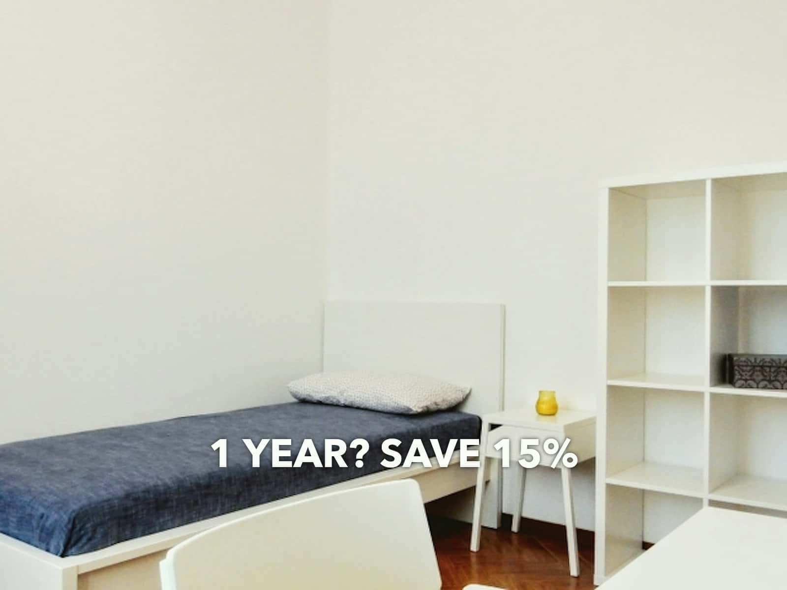 [ITA] Singola caratterizzata da un'estetica semplice, le note chiare dei mobili e dei tendaggi favoriscono la diffusione della luce naturale, il letto è singolo, la scrivania si presenta con una linea molto basic ma che si adatta a diversi stili. Una comoda libreria ed un armadio a 2 ante permettono di mantenere in ordine gli spazi. A breve distanza dall‘Università, offriamo stanze in trilocale appena ristrutturato così composto cucina abitabile, tre stanze singole, un bagno finestrato con vasca, un locale lavanderia con ulteriore lavabo e doccia ed un grande terrazzo vivibile, ottimo per studiare o prendere il sole! Al primo piano di una villetta situata in via Domaschi, con ingresso indipendente, riscaldamento autonomo e aria condizionata. La stima delle spese è stata calcolata su un profilo di consumo virtuoso. [ENG] Single characterized by a simple aesthetic, the clear notes of the furniture and curtains favor the diffusion of natural light, the bed is single, the desk has a very basic line but which adapts to different styles. A comfortable bookcase and a 2-door wardrobe allow you to keep the spaces tidy. A short distance from the University, we offer roomsin a newly renovated three-room apartmentas follows eat-in kitchen, three single rooms, abathroom with window and tub, a laundry roomwith additional sink and shower and a large livable terrace, excellent for studying or sunbathing!On the first floor of a villa located in via Domaschi, with independent entrance, independent heating and air conditioning. The estimate of expenses was calculated on a virtuous consumption profile.