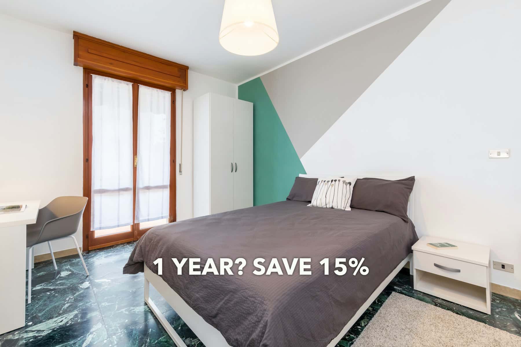 [ITA] Nella nostra azienda amiamo i soggiorni a lungo termine! Usufruite di sconti significativi se soggiornate con noi per 12 mesi. Se dovete soggiornare per meno di 12 mesi ma trovate qualcuno che vi sostituisca per il periodo rimanente, entrambi beneficerete dei nostri sconti sostanziali. Richiedete un preventivo oggi stesso e iniziate a risparmiare! Questa affascinante stanza singola, dotata di balcone, unisce stile e funzionalità nel suo arredamento minimalista. La spaziosa scrivania è ben illuminata, creando l'ambiente ideale per studiare comodamente. Il letto è equipaggiato con un materasso ergonomico, progettato per garantire un sonno ristoratore. Inoltre, le luci calde sono pensate per preservare la vista, rendendo l'ambiente ancora più accogliente e ideale per il relax e lo studio. Perfetta per studenti o giovani professionisti, questa camera è un vero e proprio rifugio urbano che combina comfort e praticità! Appartamento ampio e luminoso situato nel quartiere di Valdonega, zona di residenziale a pochi passi dal bellissimo Ponte Pietra e dallo storico Teatro Romano. Ideale per studenti di Lettere, Lingue, Economia e Psicologia. L‘appartamento, situato al secondo piano di una palazzina con ascensore, è dotato di una cucina abitabile, corredata, con piano snack e sgabelli all‘americana, 4 stanze di cui tre con balcone, 2 bagni, uno con vasca (privato della stanza D1) e l‘altro con doccia e lavatrice, uno spazioso ripostiglio ed una cantina dove poter mettere le bici. Le spese stimate sono riferite ad un profilo di consumo virtuoso. [ENG] At our company, we love long-term stays! Enjoy significant discounts when you stay with us for 12 months. If you need to stay for less than 12 months but find someone to take over for the remaining period, both of you will benefit from our substantial discounts. Ask for a quote today and start saving! This charming single room, with a balcony, combines style and functionality in its minimalist decor. The spacious desk is well-lit, creating the ideal environment for comfortable studying. The bed is equipped with an ergonomic mattress, designed to ensure a restful sleep. In addition, the warm lights are designed to preserve the eyesight, making the environment even more welcoming and ideal for relaxation and study. Perfect for students or young professionals, this room is a true urban retreat that combines comfort and practicality! Large and bright apartment located in the Valdonega district, a residential area a few steps from the beautiful Ponte Pietra and the historic Roman Theater. Ideal for students of Literature, Languages, Economics and Psychology. The apartment, located on the second floor of a building with a lift, has a fully equipped kitchen with a snack bar and American-style stools, 4 rooms, three of which have a balcony, 2 bathrooms, one with a bathtub (private to room D1) and the other with a shower and washing machine, one spacious closet and a cellar where you can store your bikes. The estimated expenses refer to a virtuous consumption profile.
